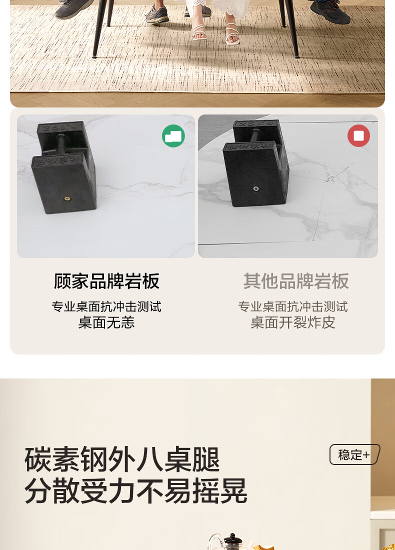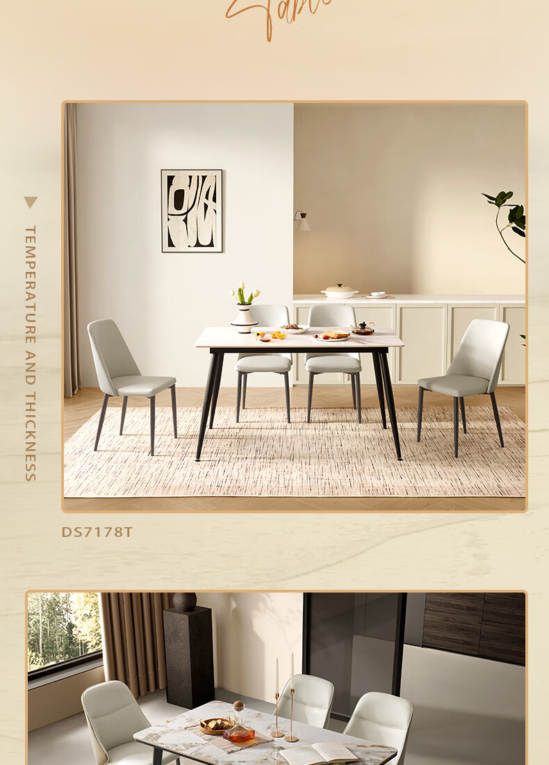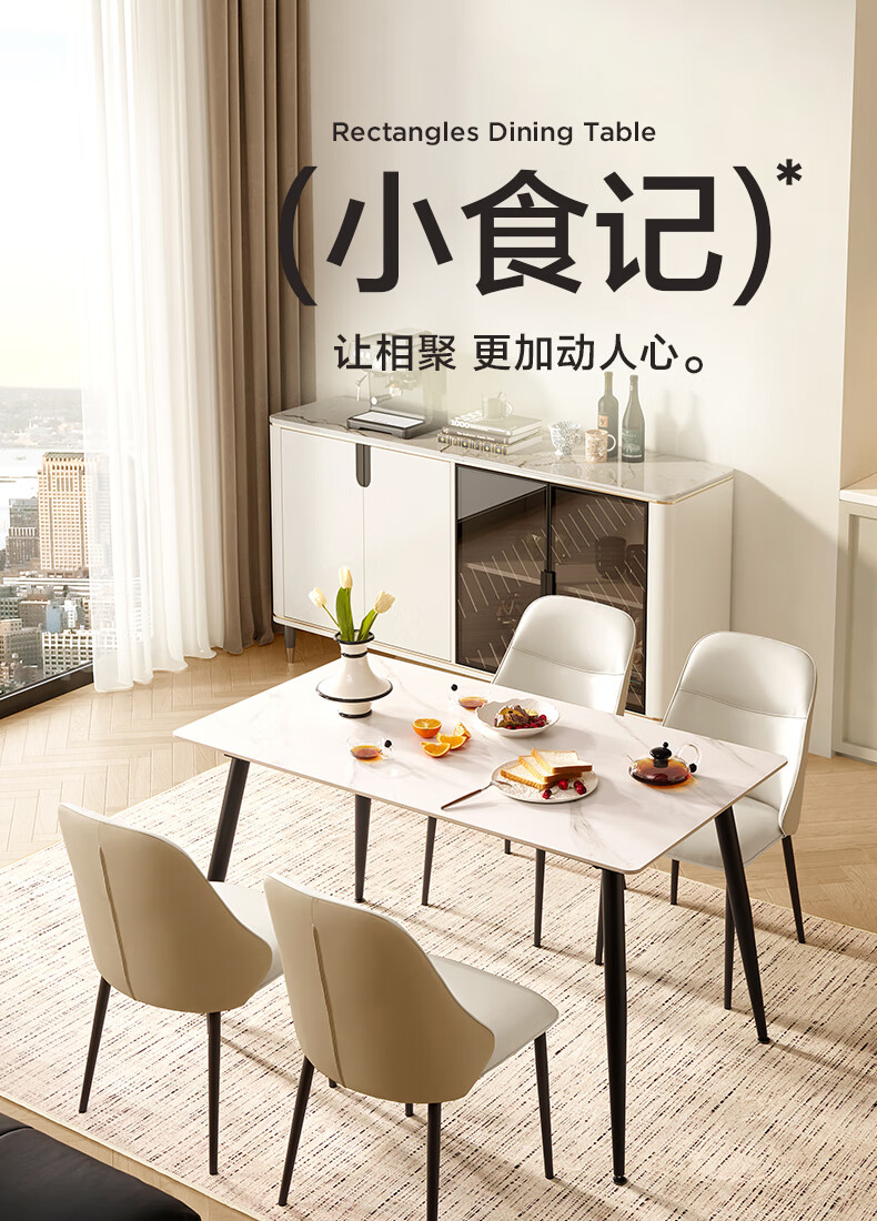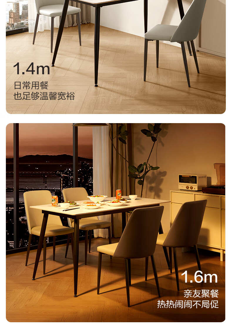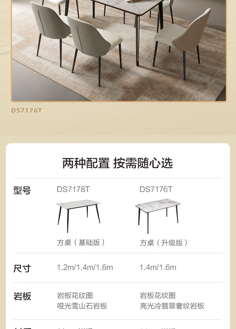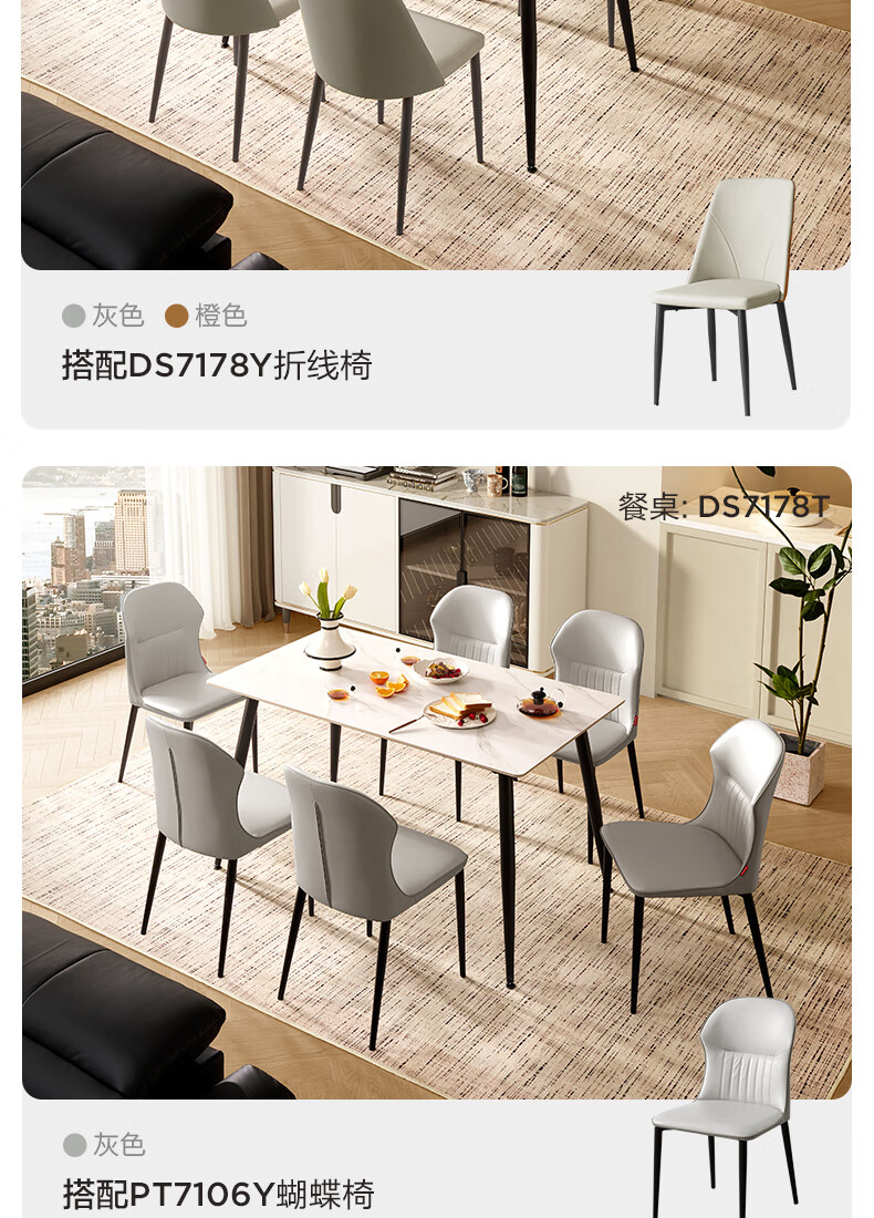 顾家家居(KUKA)简约岩板餐桌厨房客厅DS7176T 1.4M方桌(升级版)+折线橙椅*4