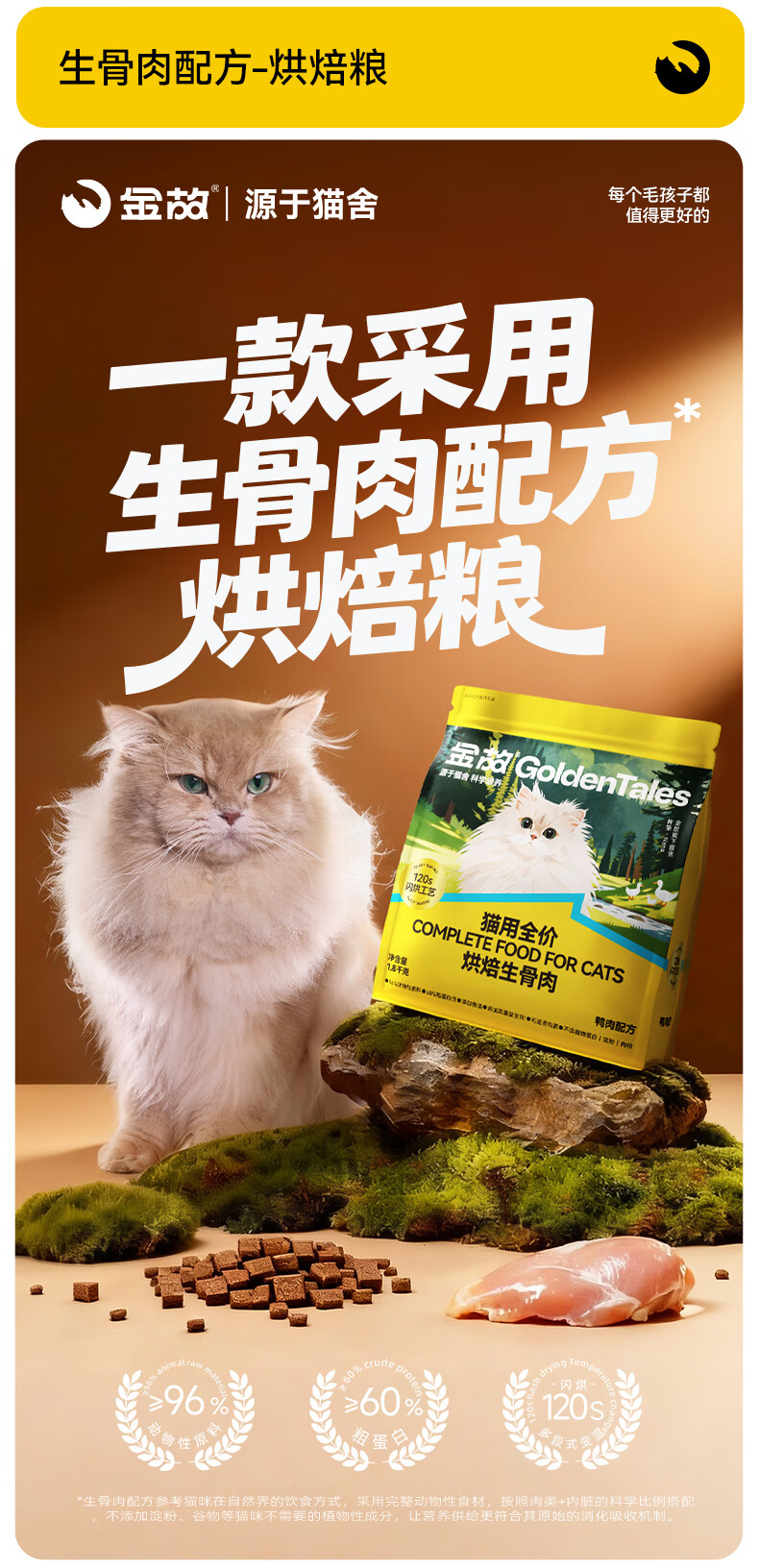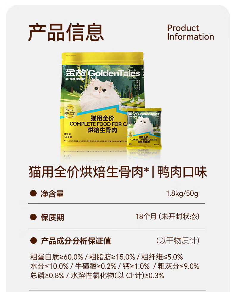 金故烘焙生骨肉高蛋白全价猫粮鸭肉味1.8kg【邓峰家猫咪同款】