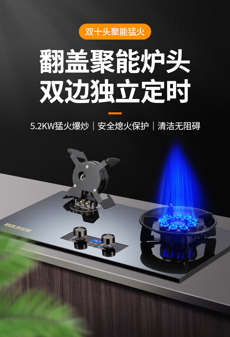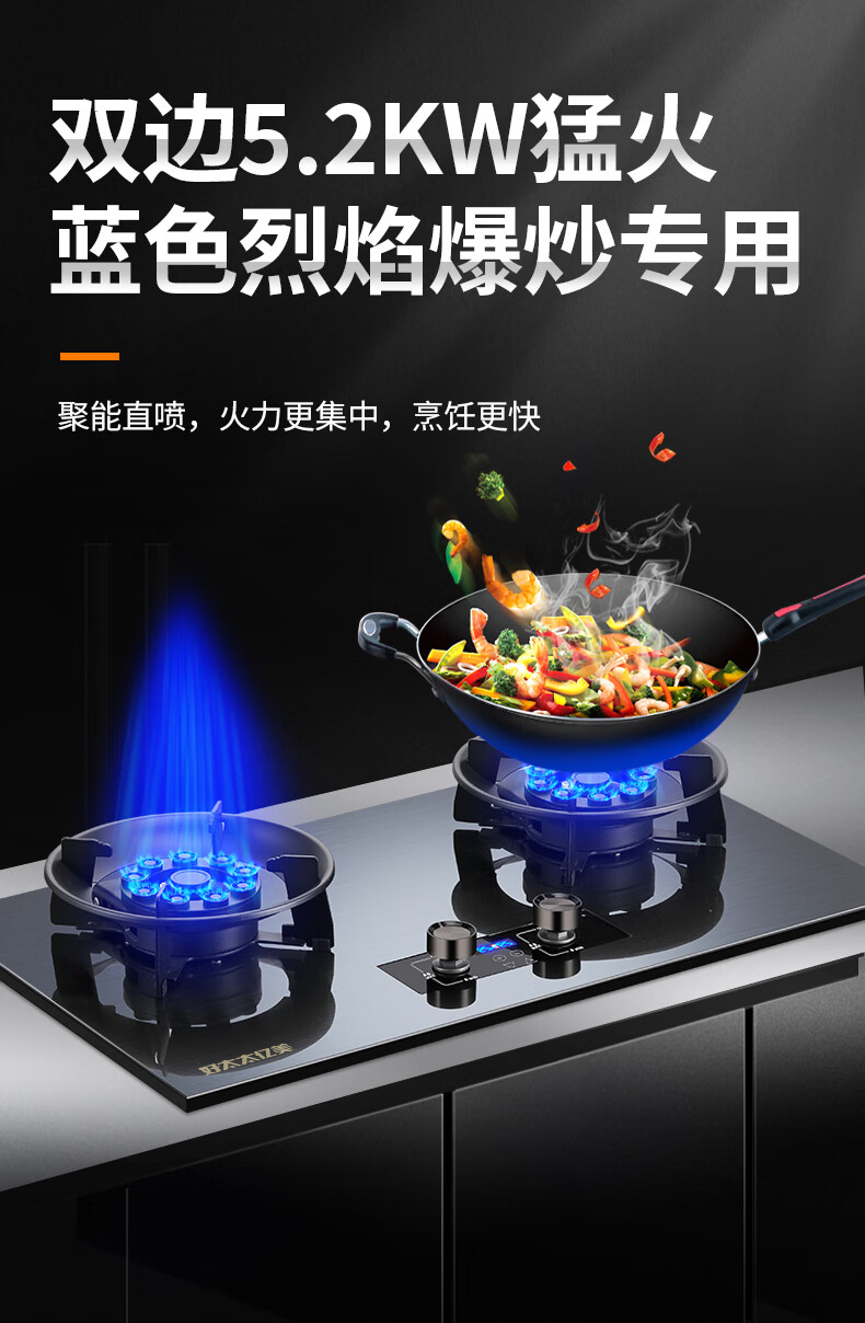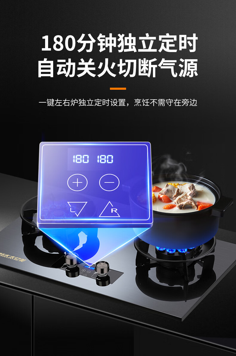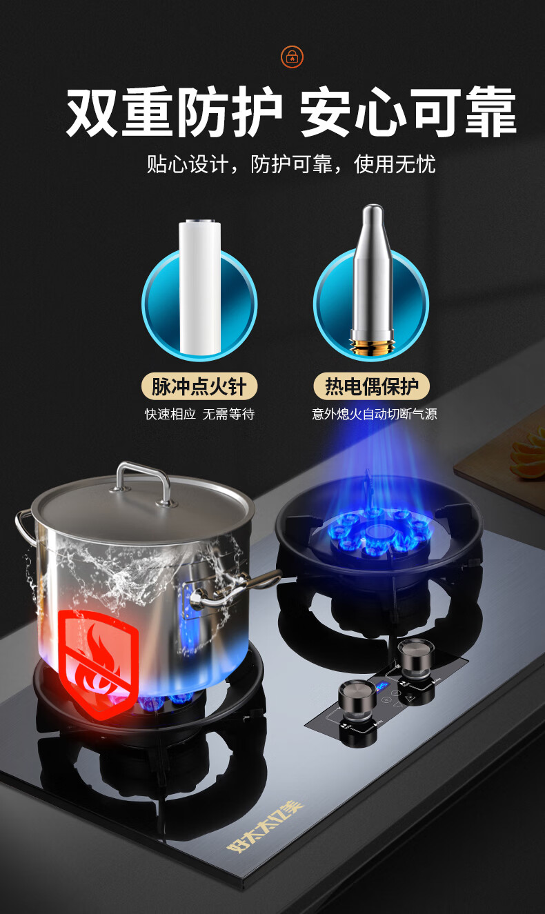 好太太亿美【国家补贴20%】燃气灶煤气灶双灶具大火力台嵌两用天然气灶液化气炉灶一级能效台式嵌入式猛火灶 翻盖双九腔+双边定时+不锈钢 液化气(煤气罐20Y)