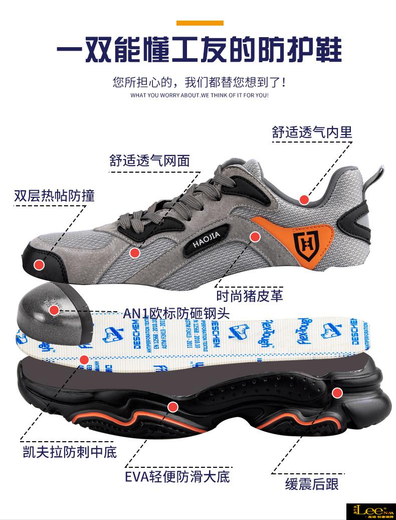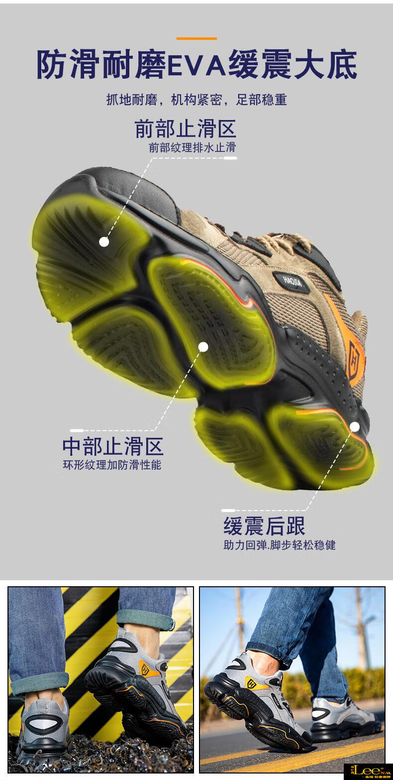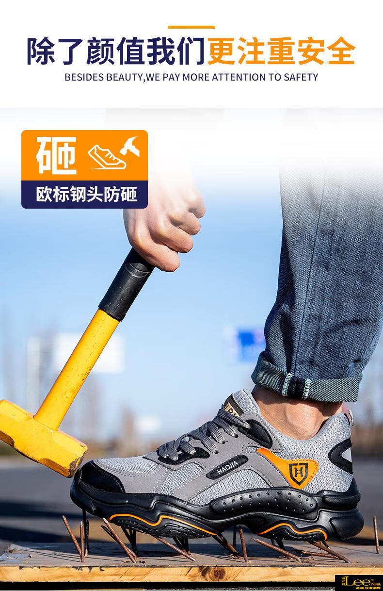 SCALEENAA国际品牌男鞋超轻便劳保鞋男防砸防刺穿工作鞋夏季透气劳工地安全 卡其 40