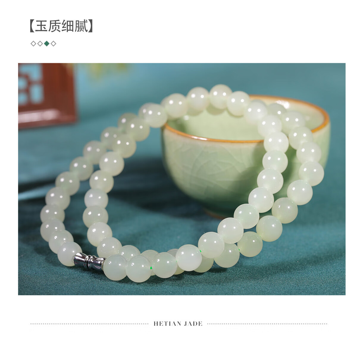 和合玉器和合玉器和合玉器青玉青白晴水珠串项链颈链颈饰圆珠女节日0.8珠
