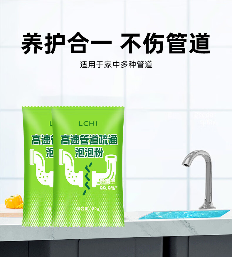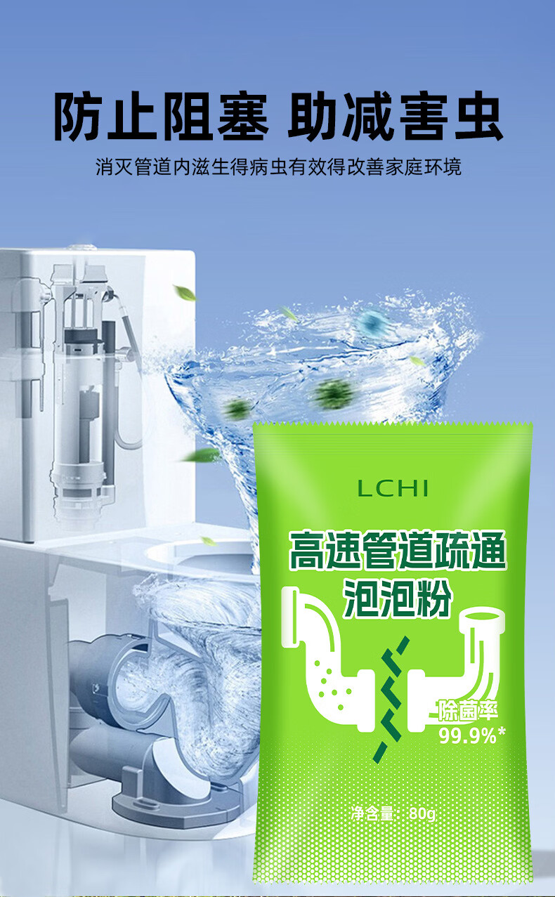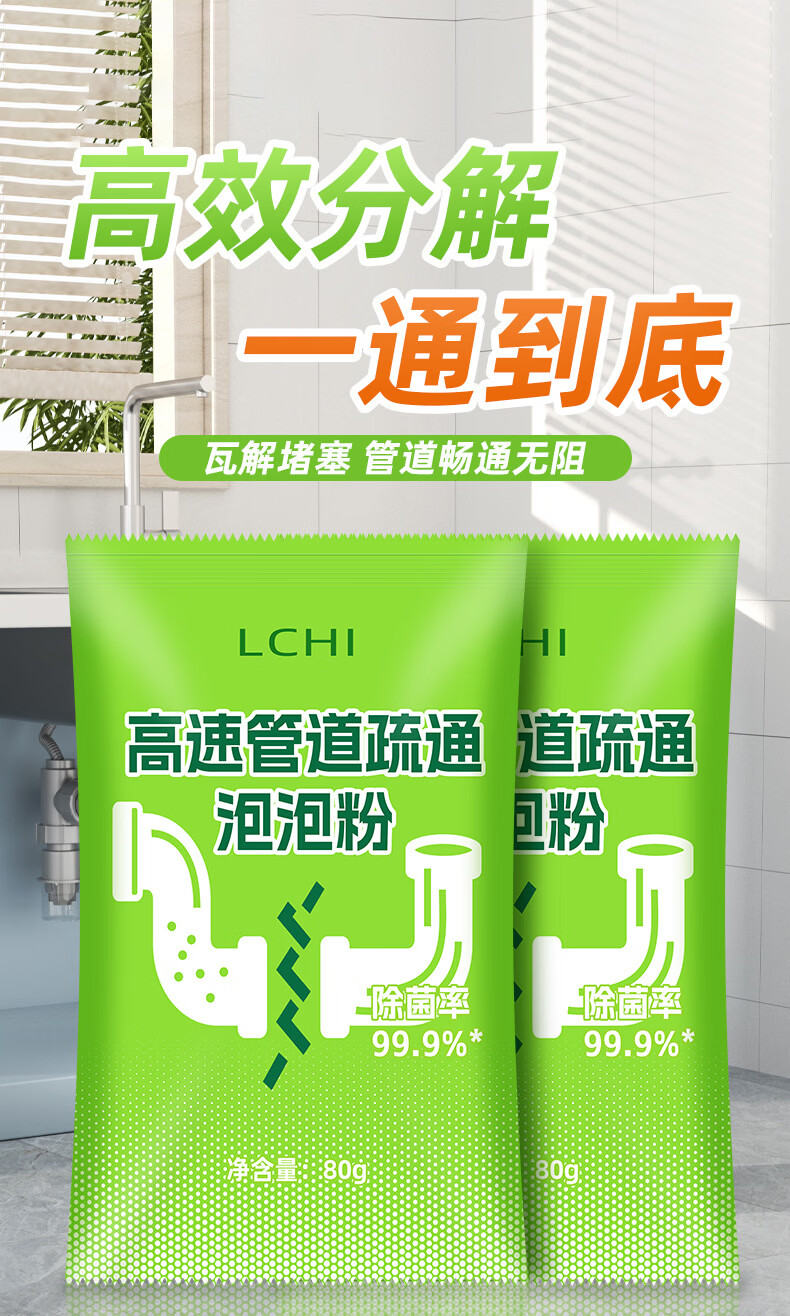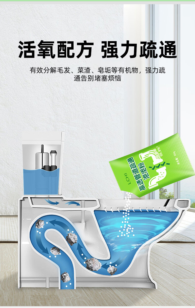 LCHI管道疏通剂强力溶解厨房马桶堵塞下水道防臭祛味 3袋体验装(贵在运费,不推荐)