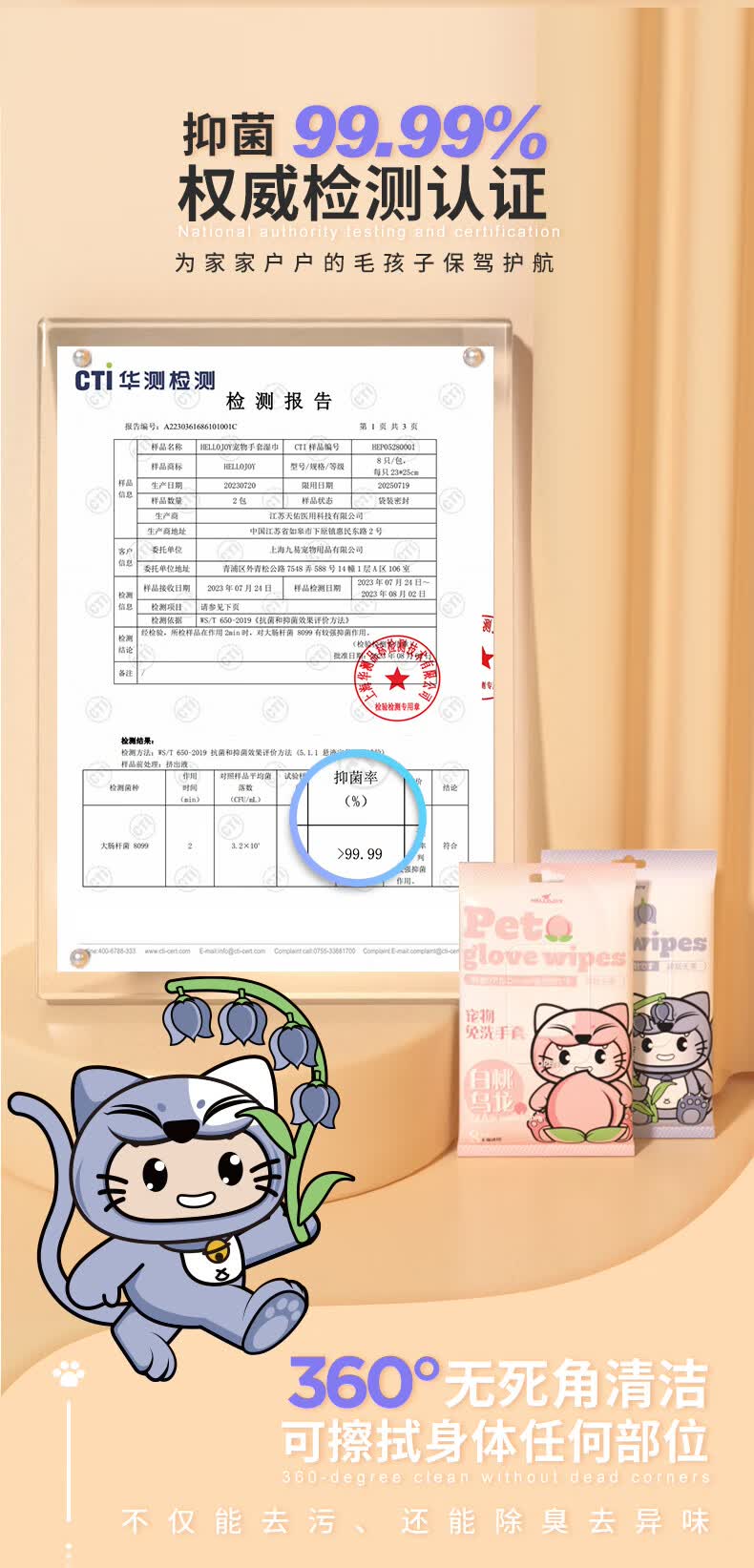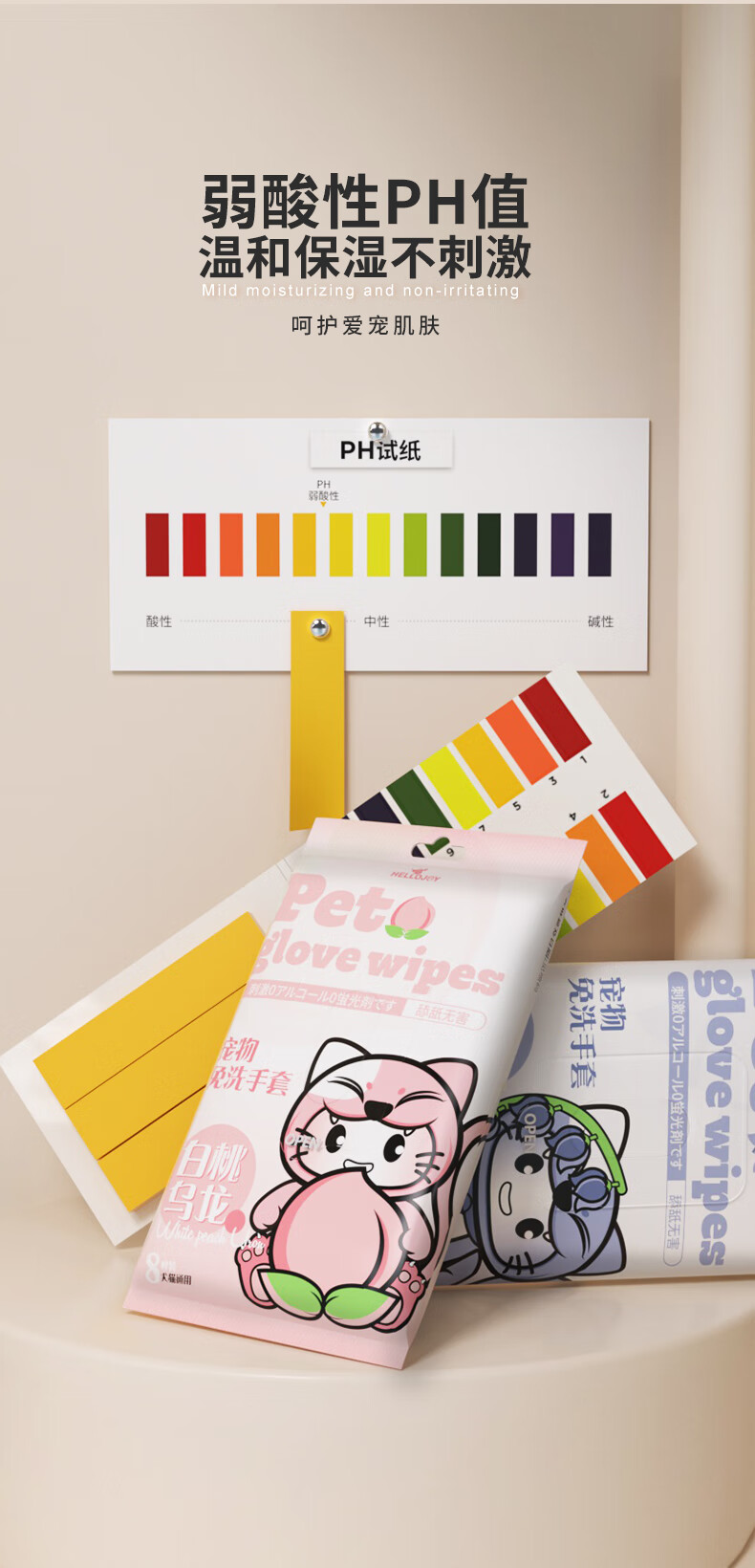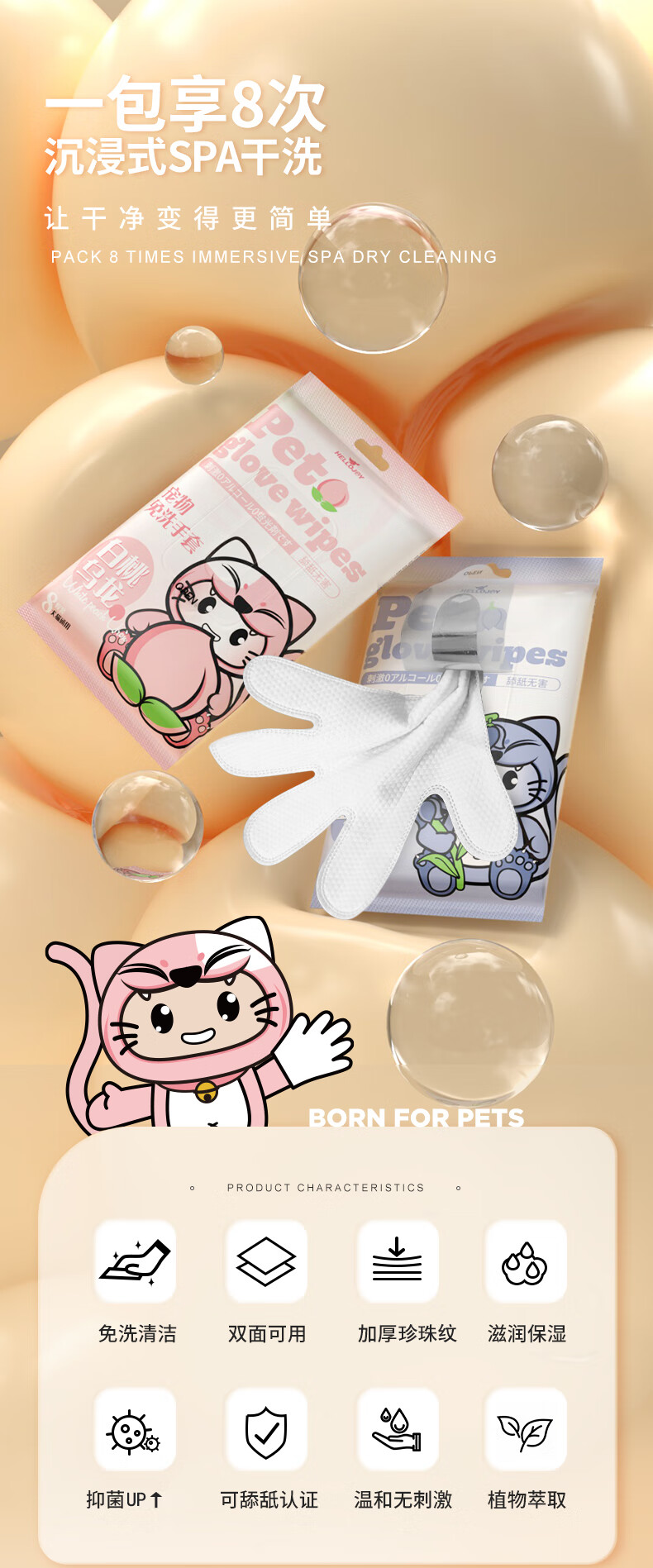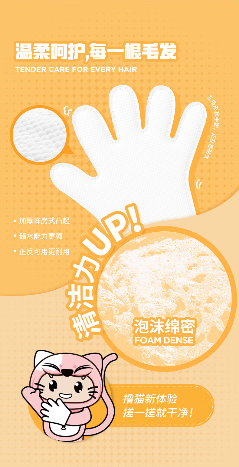 HELLOJOY宠物免洗手套幼猫去味洗澡猫咪全身清洁干洗湿巾8片装 白桃乌龙