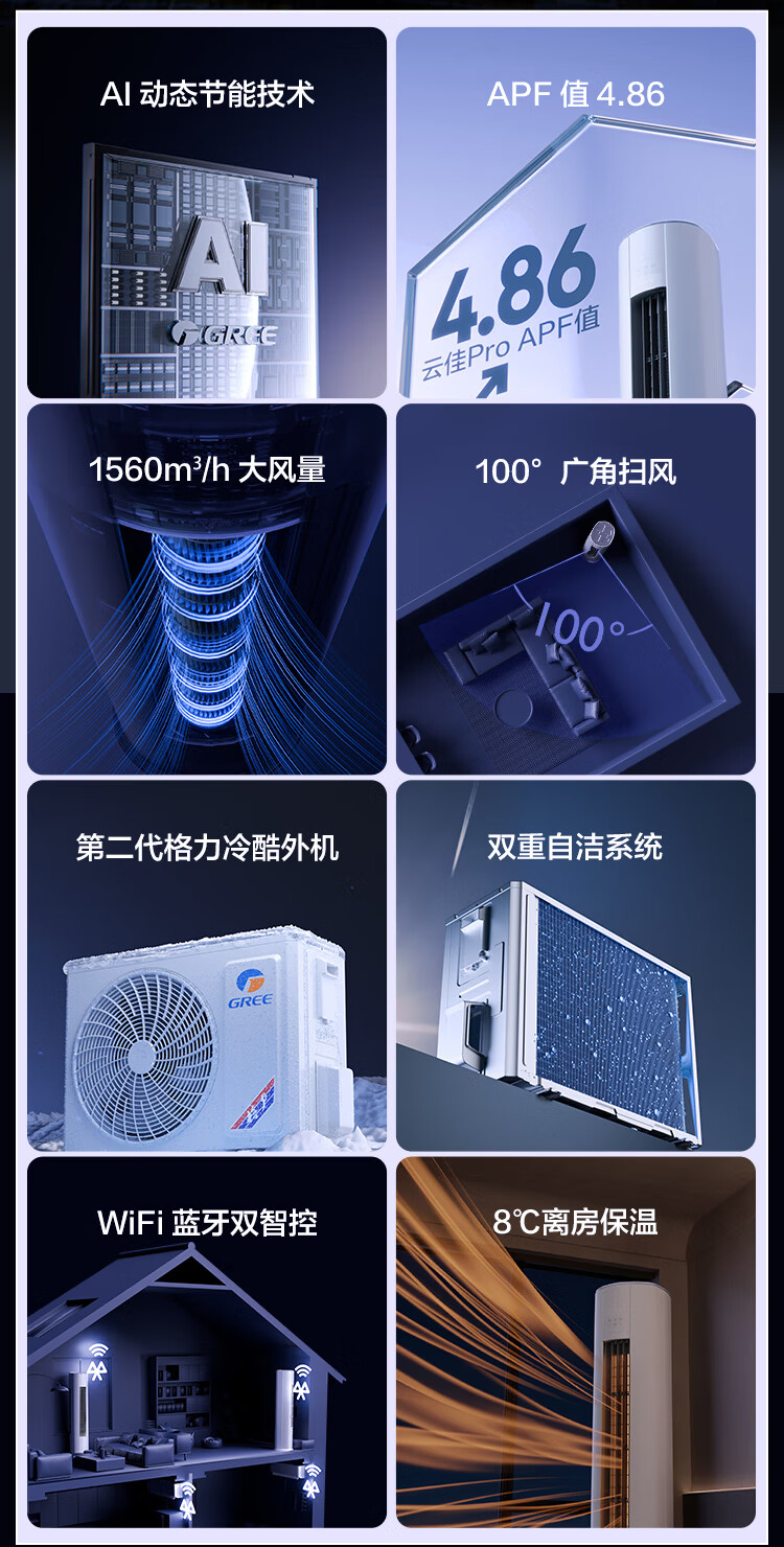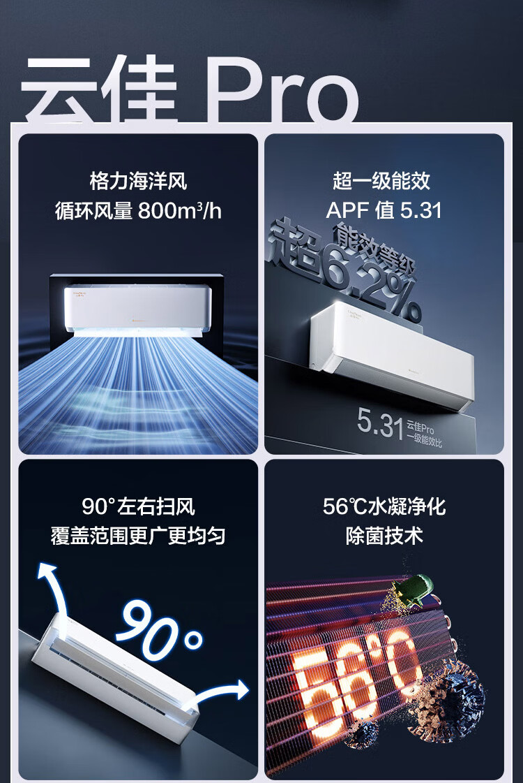 格力空调1.5匹一级能效3匹国家补贴套装三室一厅 二室一厅 一室一厅云佳pro家用客厅卧室省电挂机柜机 三室一厅1.5匹*3+3匹【咨询客服有惊喜】 官方旗舰正品