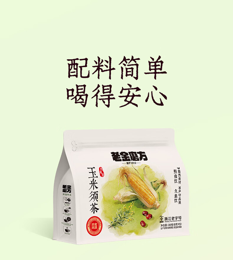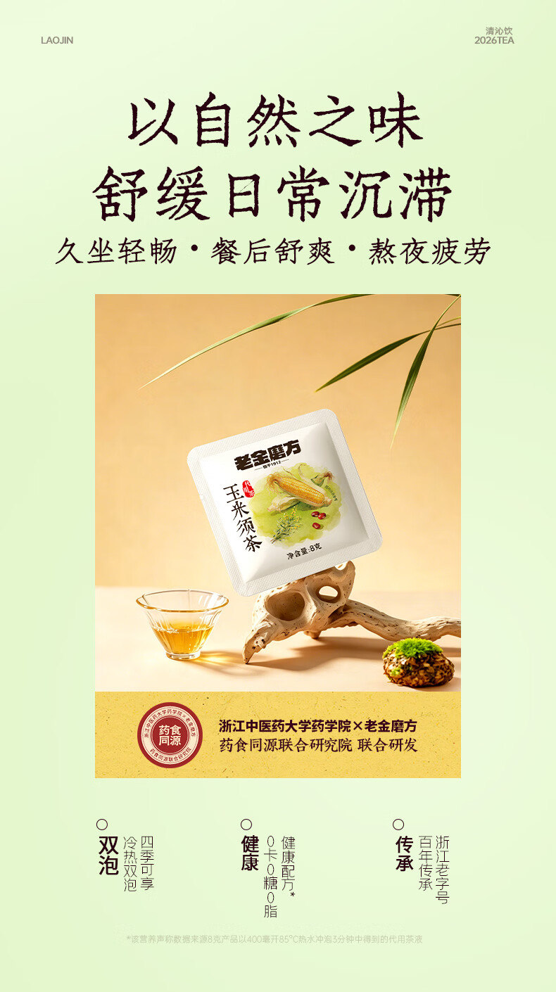 老金磨方玉米须茶 栀子荞麦茯苓茶包孕妇养生茶0糖0脂0卡袋泡茶 玉米须茶 40g*4袋