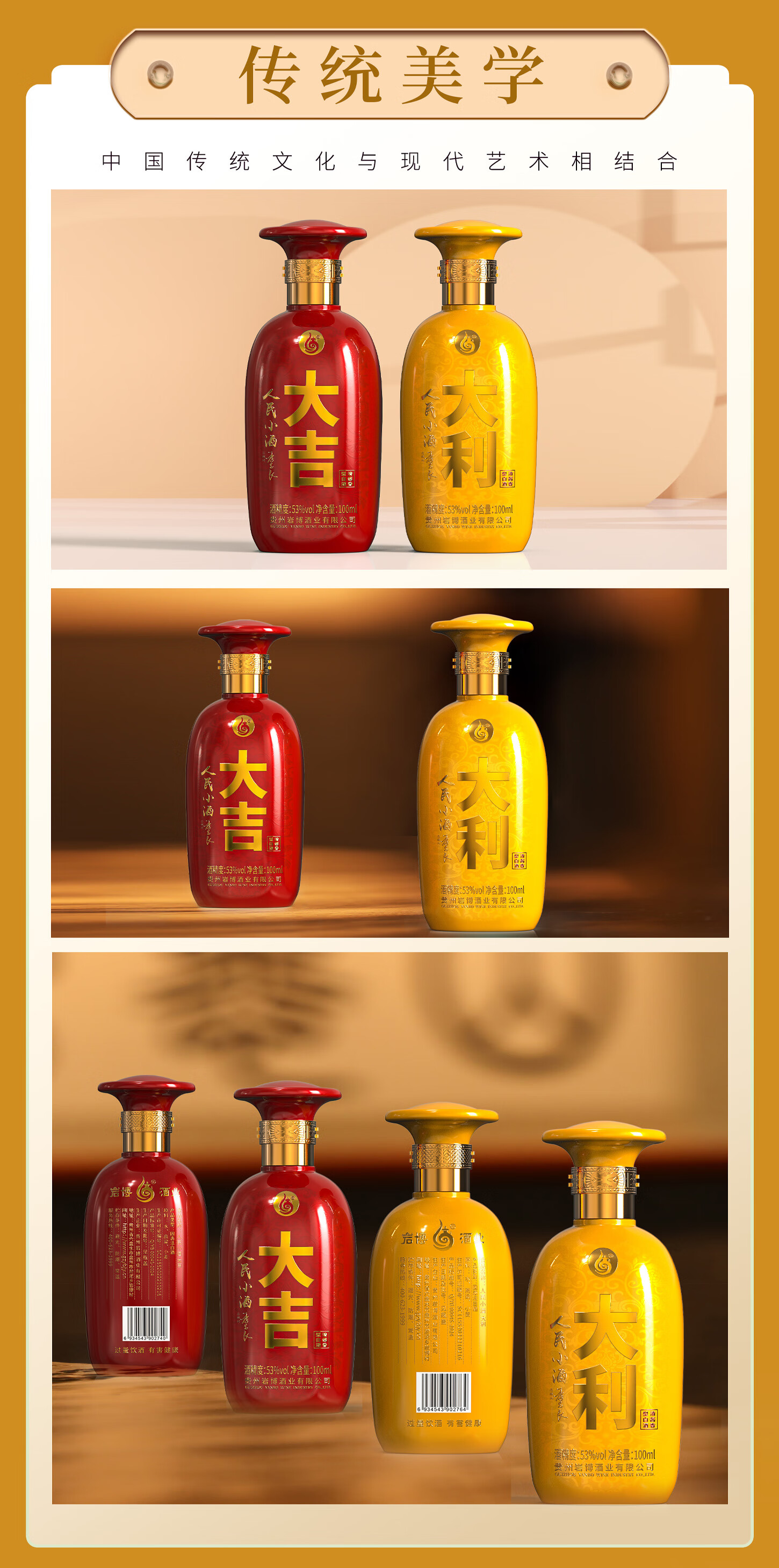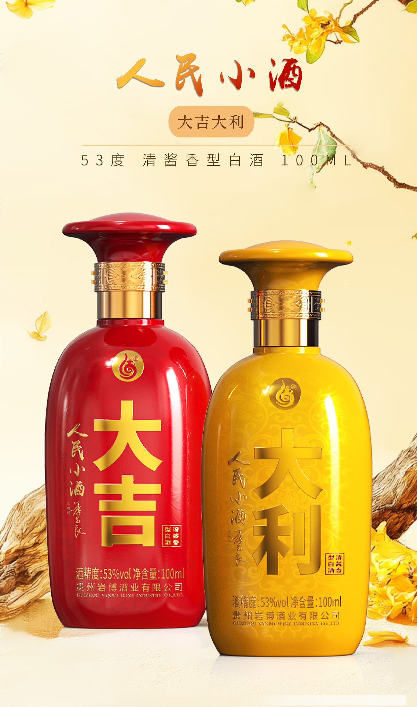 人民小酒大吉大利 53度清酱香型白酒 纯粮食酿制小酒版白酒 53度 100mL 2瓶 大吉大利