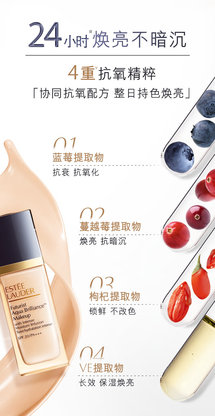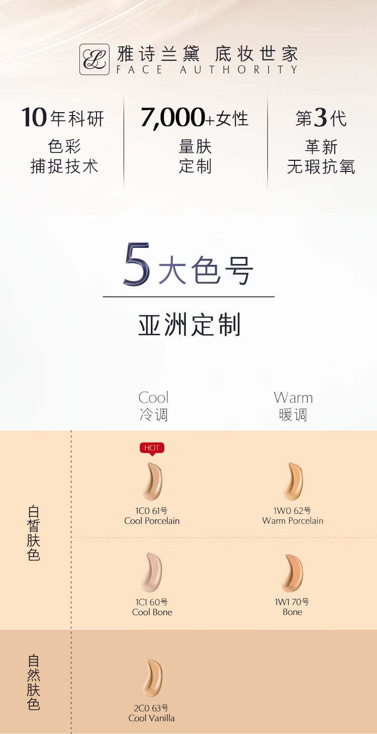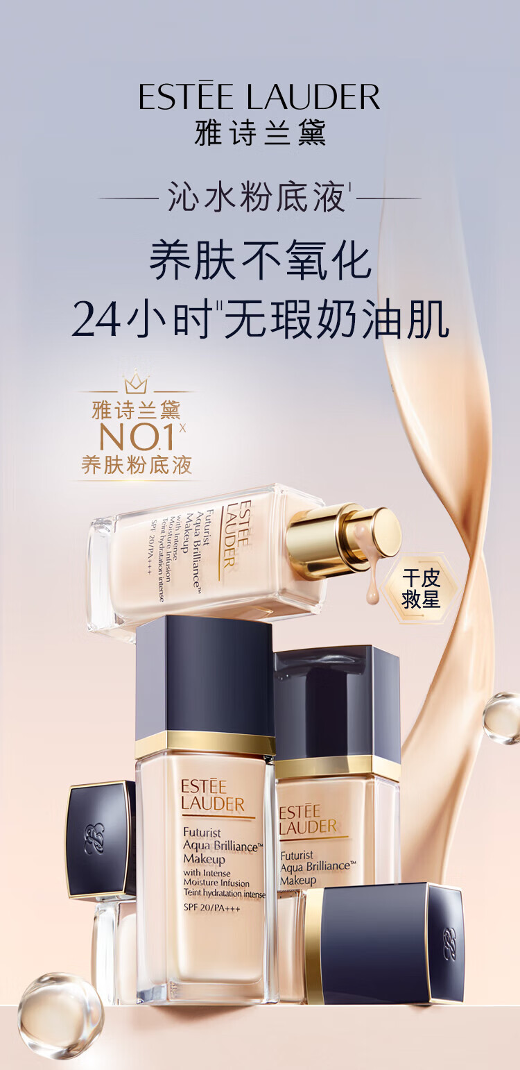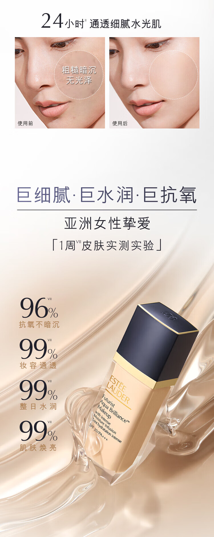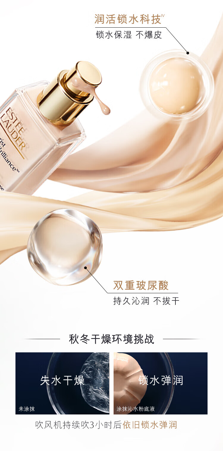 雅诗兰黛 沁水粉底液61冷象牙白1c0 30ml干皮持久遮瑕化妆品节日生日礼物