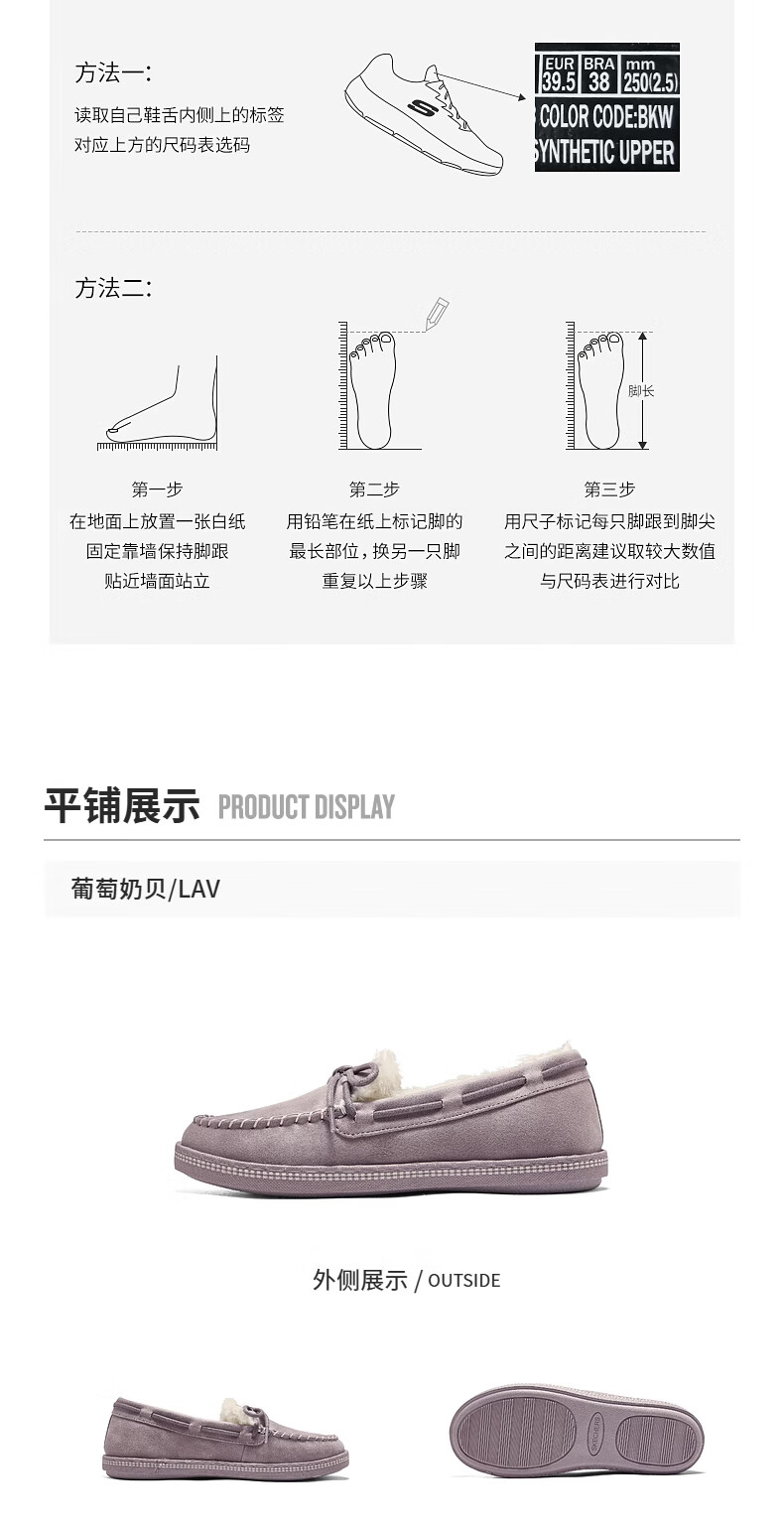 斯凯奇(SKECHERS)秋季女子轻质舒适乐福鞋加绒保暖休闲鞋167687 薰衣草色LAV 37