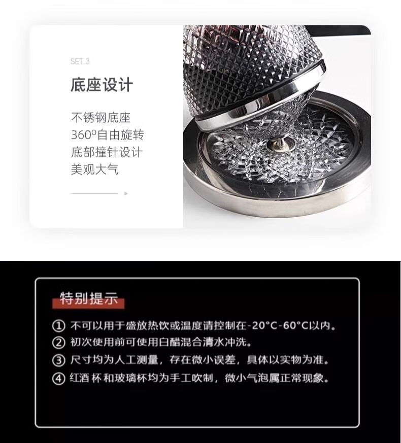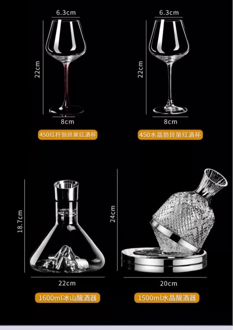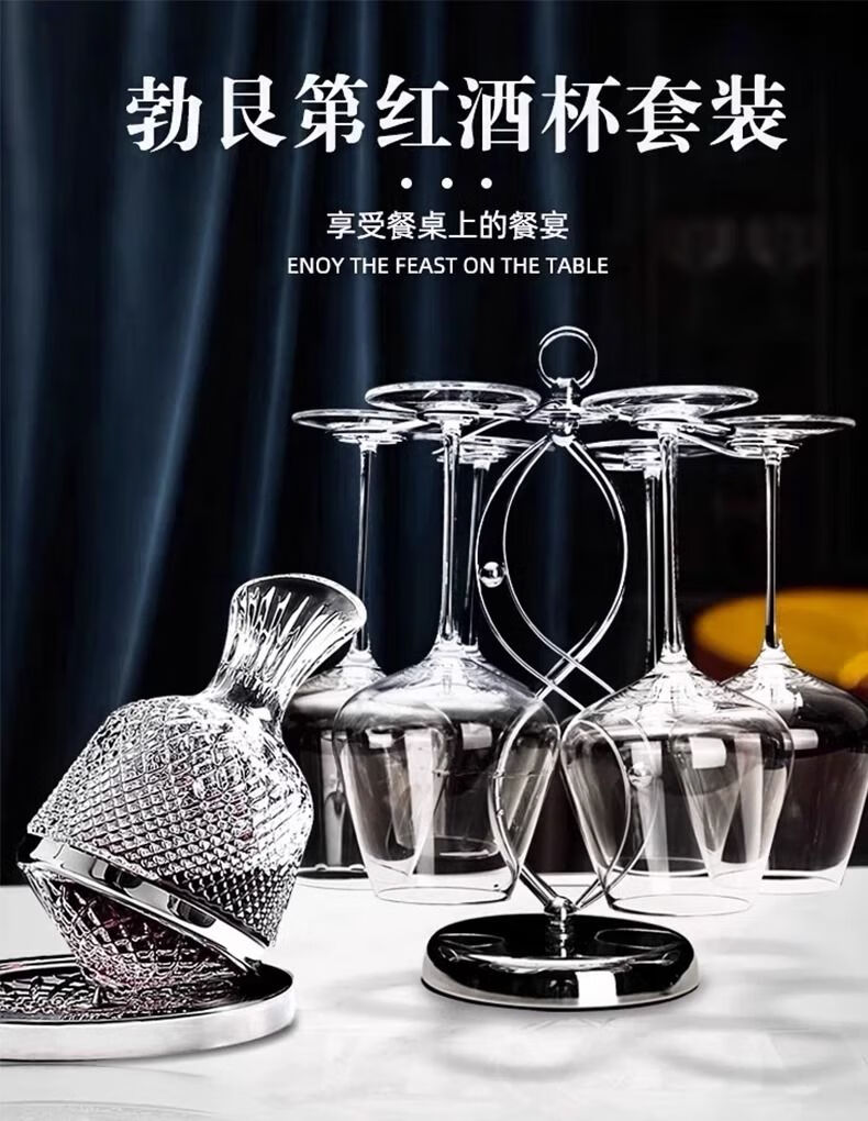 咏夏水晶红酒杯勃艮第轻奢 家庭聚餐葡萄酒高脚杯杯架套装欧式风 水晶550mlx6