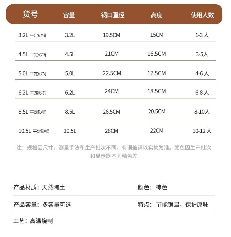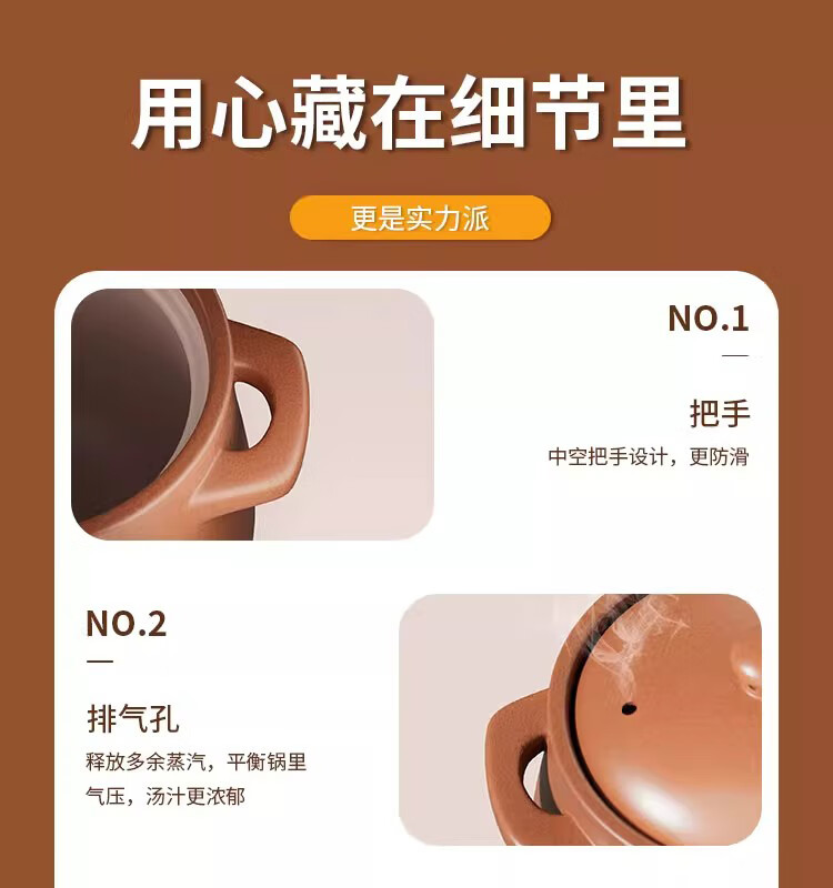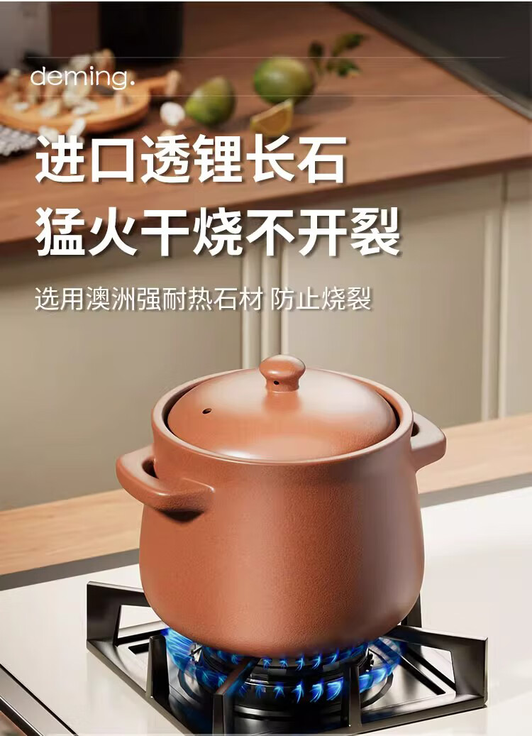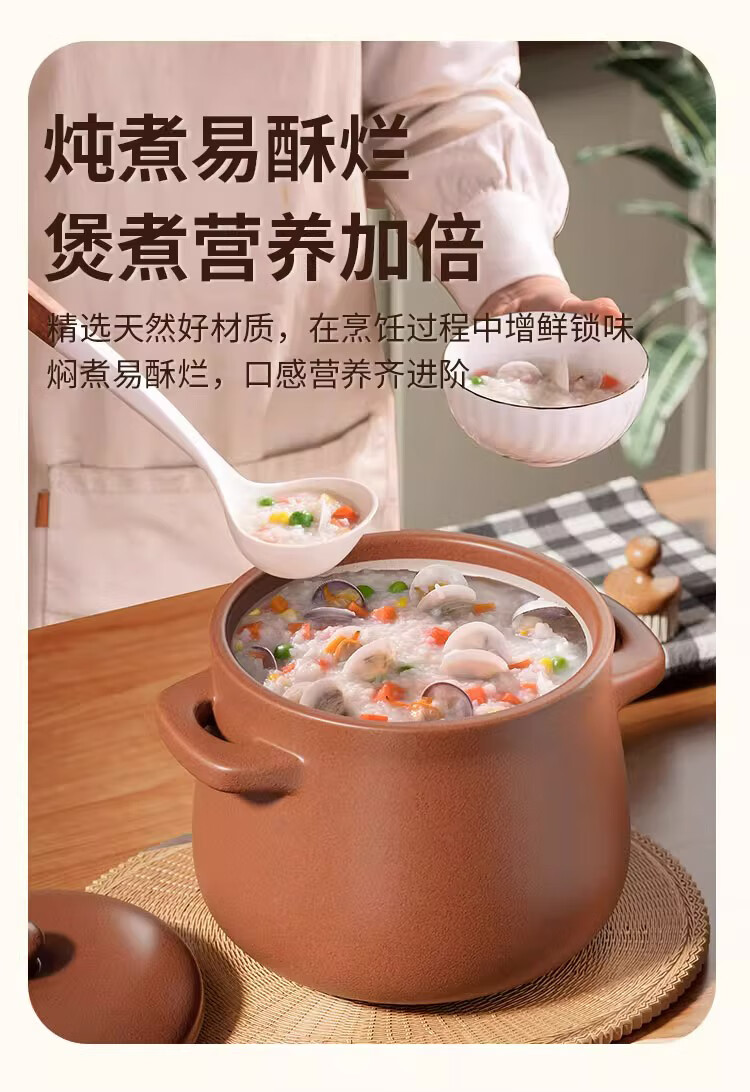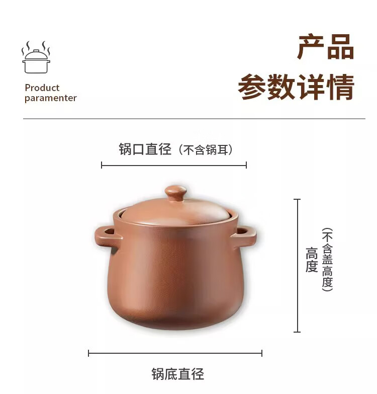 筏芯德国老式土砂锅家用耐高温干烧沙锅煲汤炖锅燃气灶专用陶瓷锅无釉 无涂层-养生煲(适用1-3人份) 3.2L