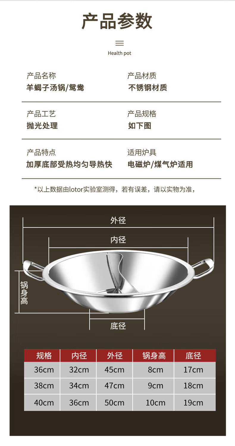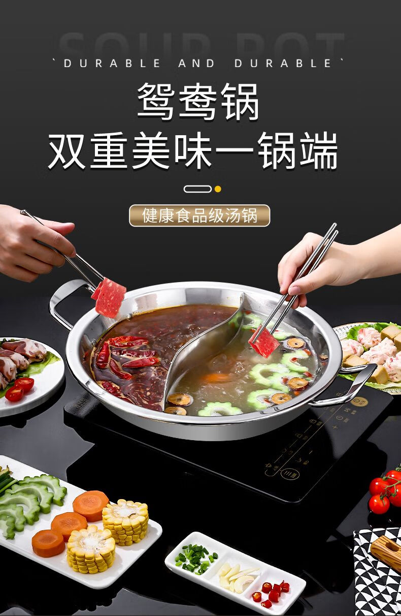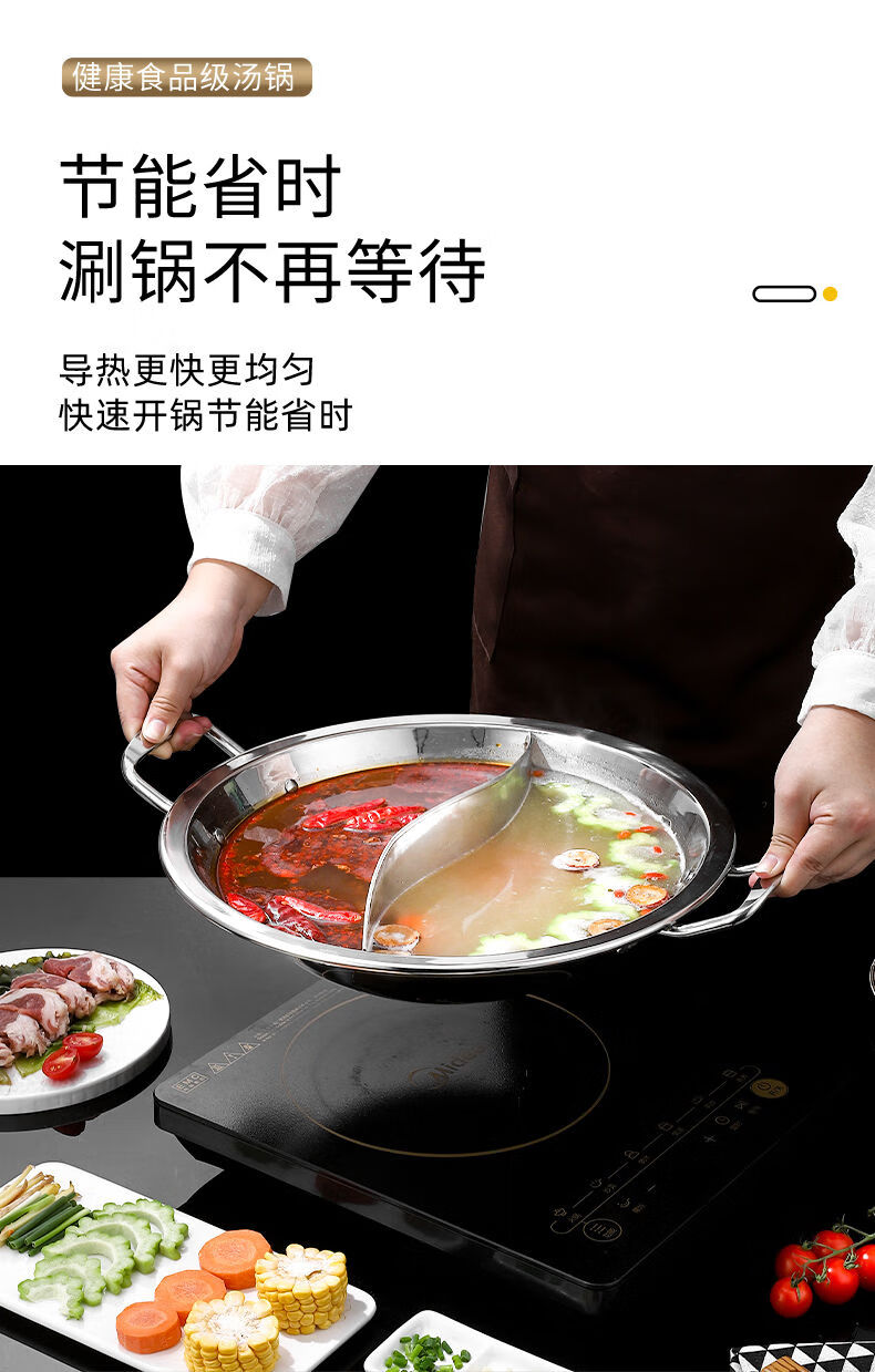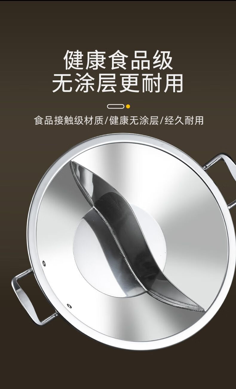 咏夏不锈钢火锅盆加厚清汤平底鸳鸯锅大容量商用电磁炉火锅店专用火锅 清汤平底款 30cm