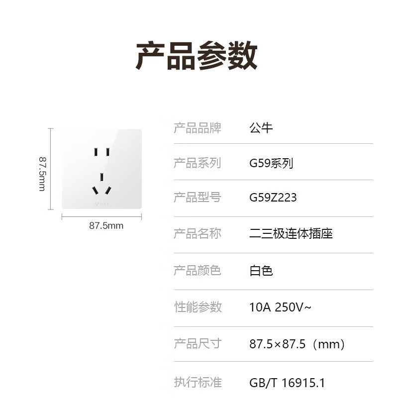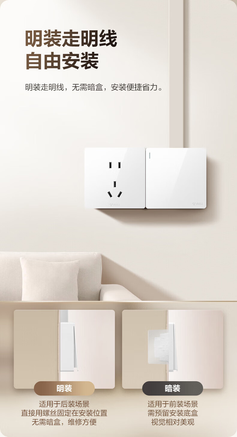 公牛(BULL)插座开关面板一开五孔双控明装大功率空调专用墙壁扦热水器灯座 五孔插座