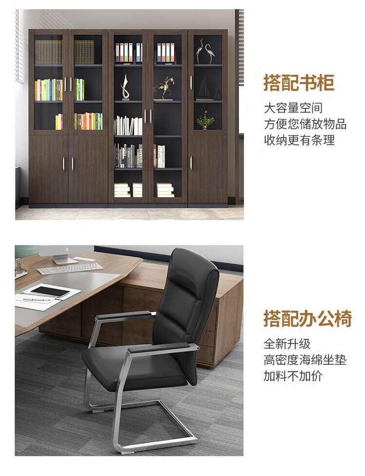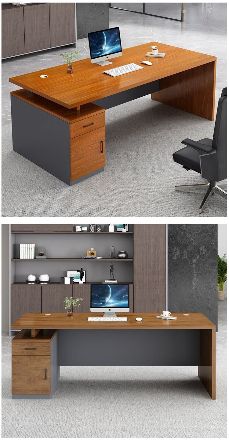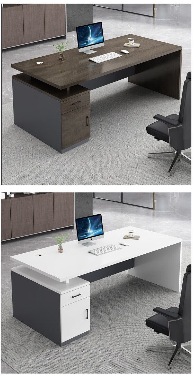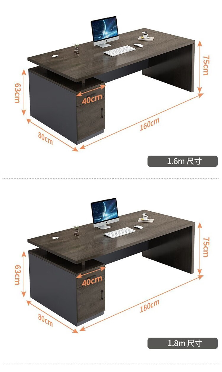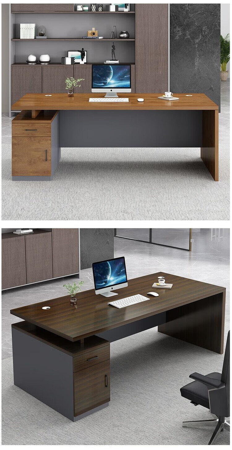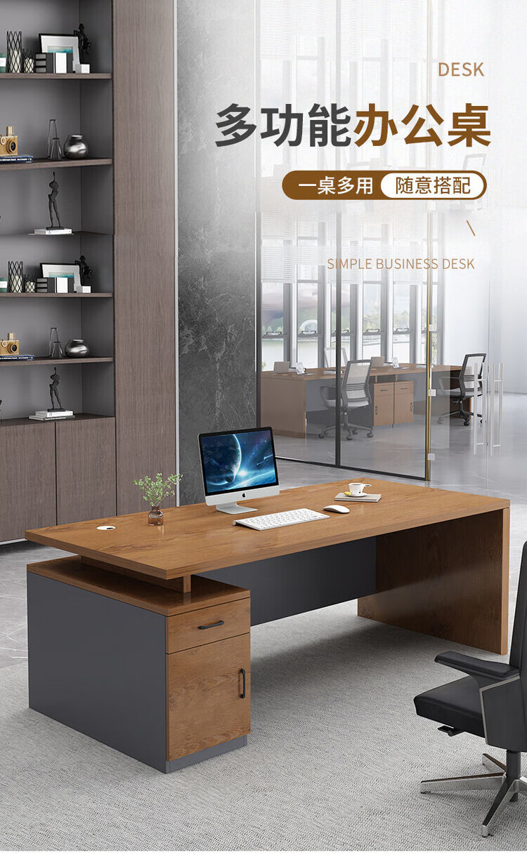 倘然之家办公桌简约现代办公室家具老板桌桌椅组合经理总裁单人桌子大班台 老板桌-【现货速发】 【拿铁咖色】-抽屉侧柜-长120宽60高75