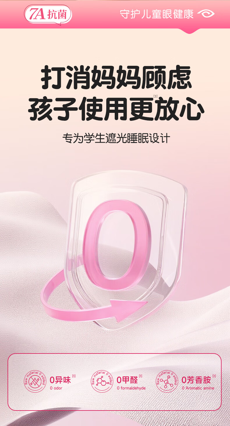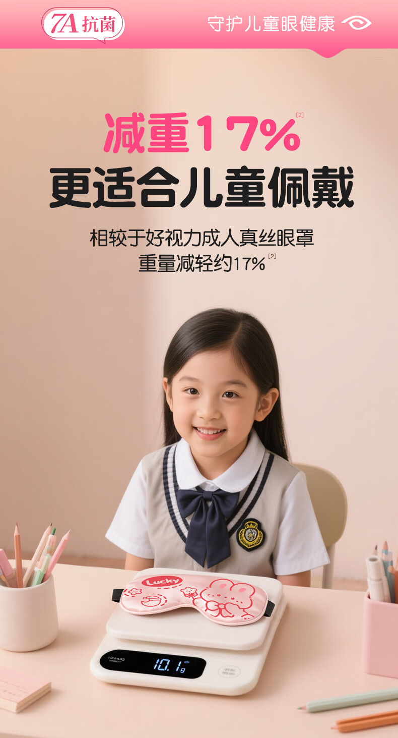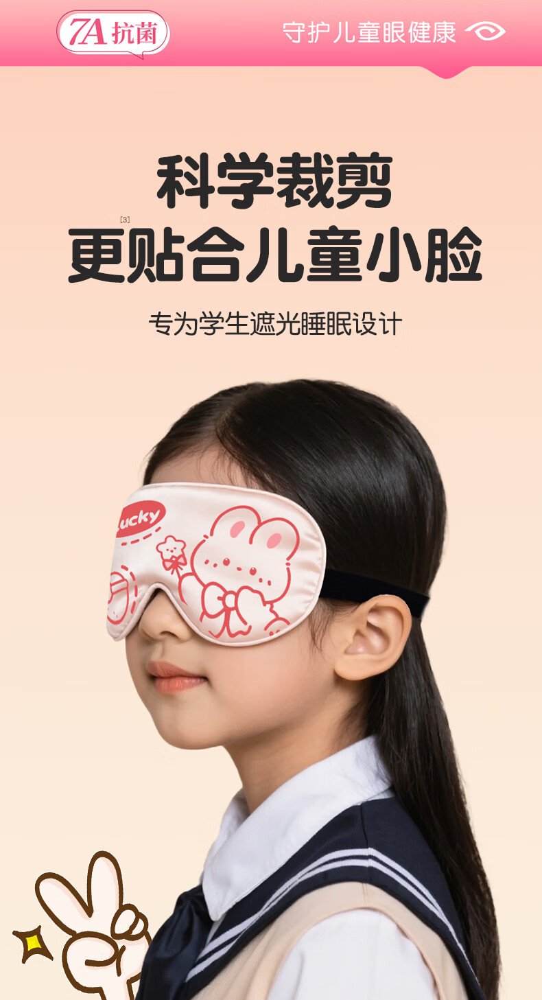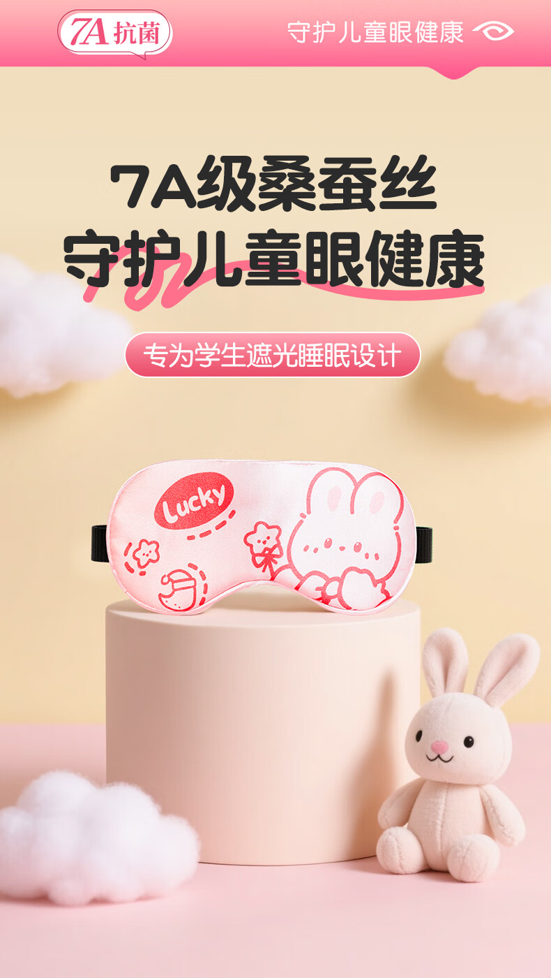 好视力 儿童学生睡眠专用真丝眼罩 遮光可调节睡觉桑蚕丝午睡 卡通粉