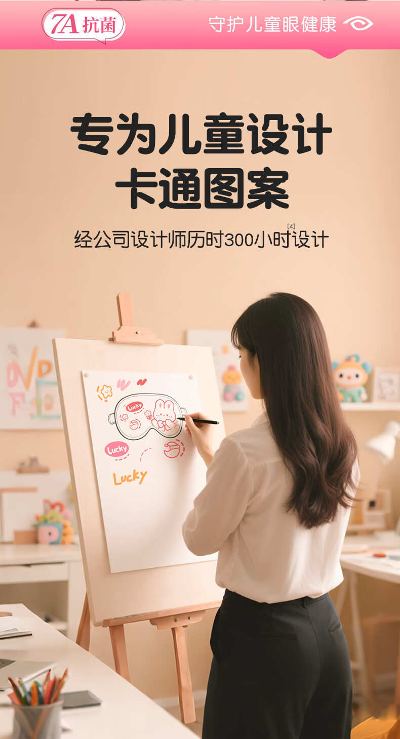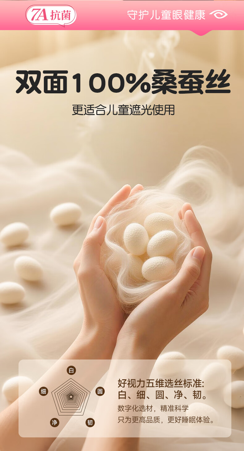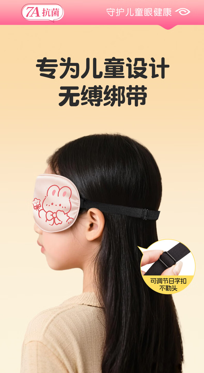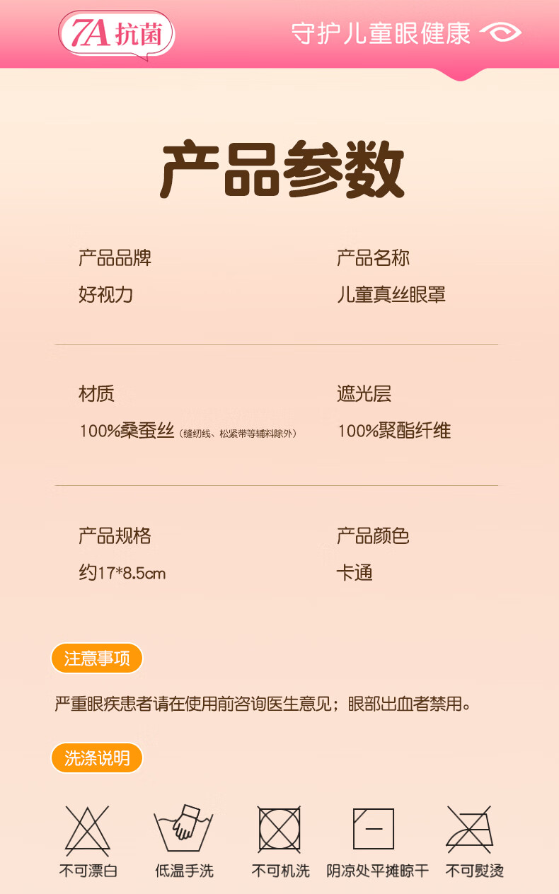 好视力 儿童学生睡眠专用真丝眼罩 遮光可调节睡觉桑蚕丝午睡 卡通粉