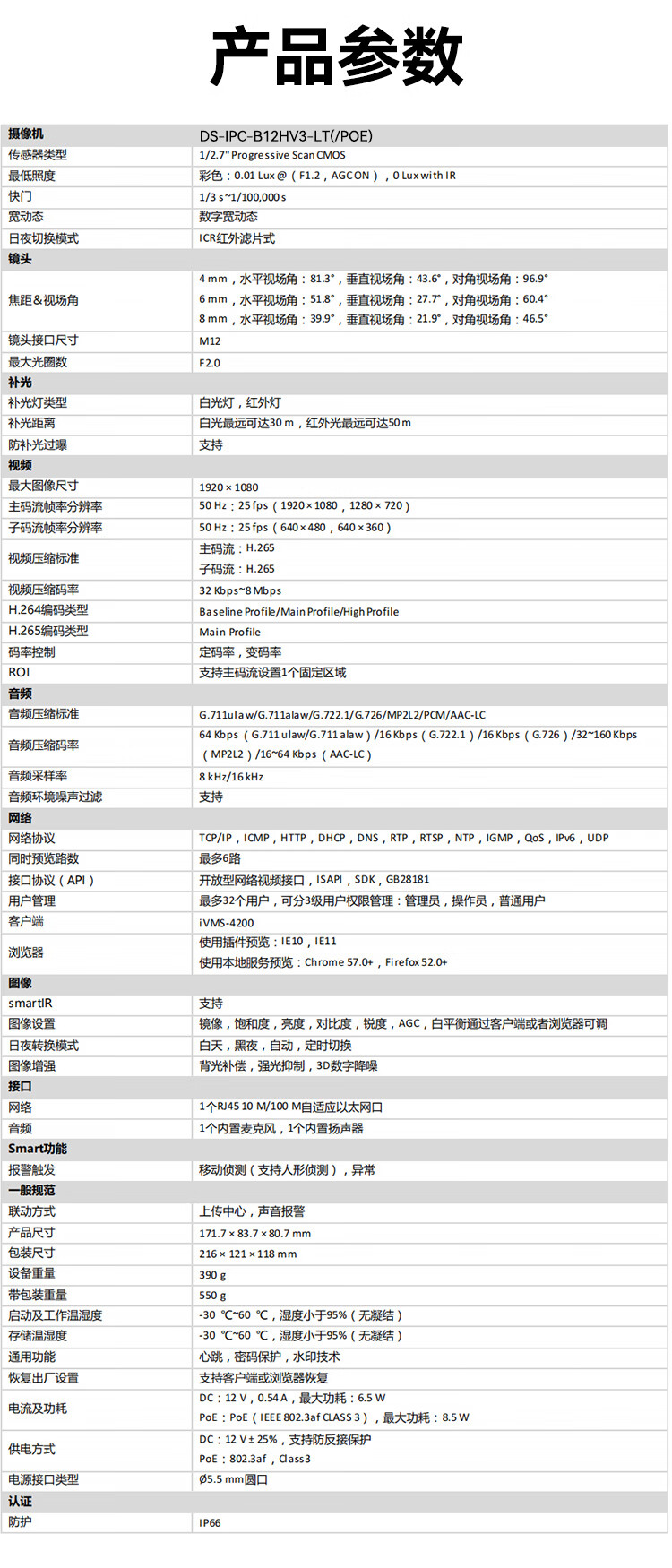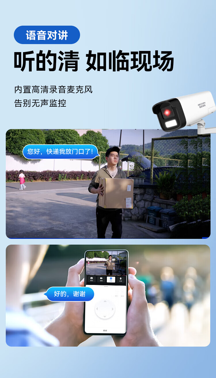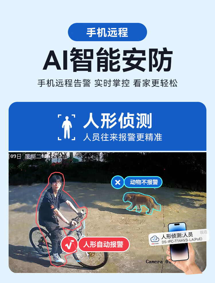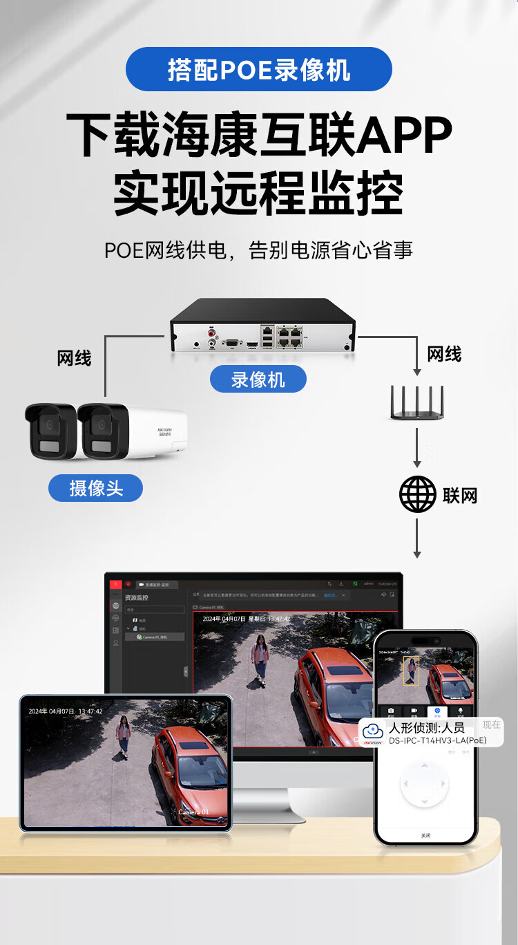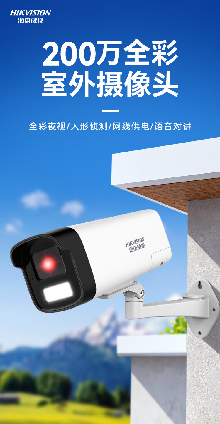 HIKVISION海康威视监控摄像头200万全彩夜视poe网线供电AI人形侦测手机远程家用室外监控器B12HV3-LT 4MM