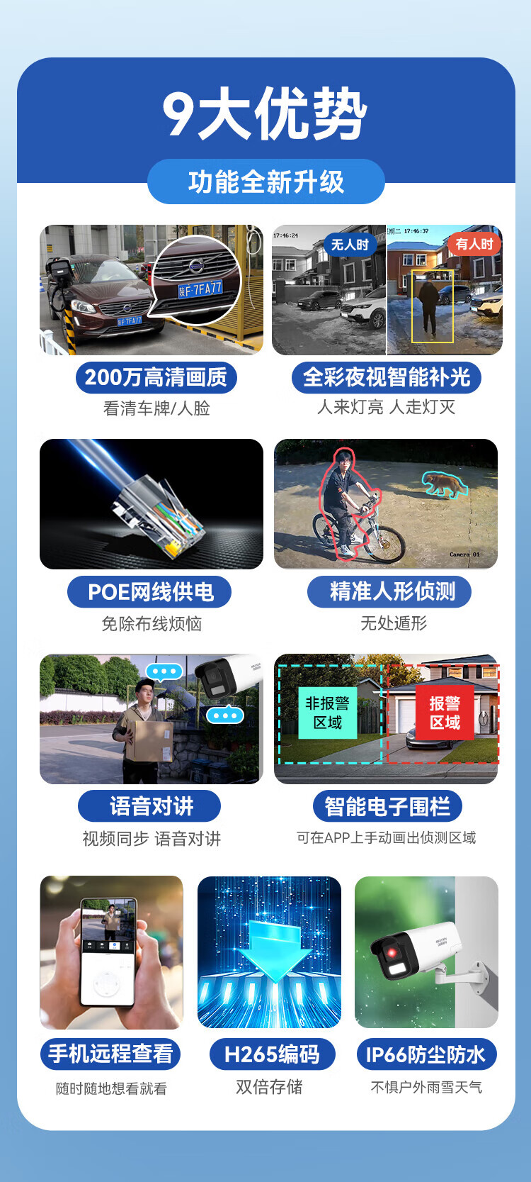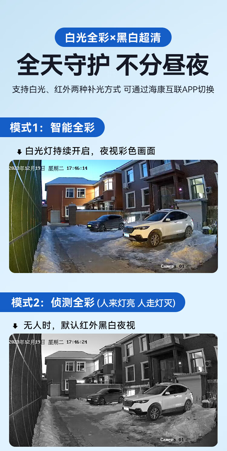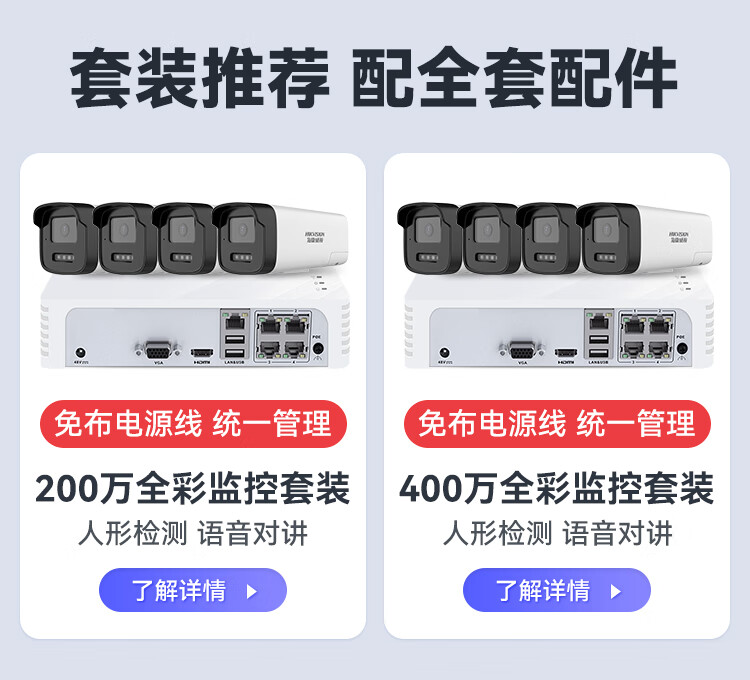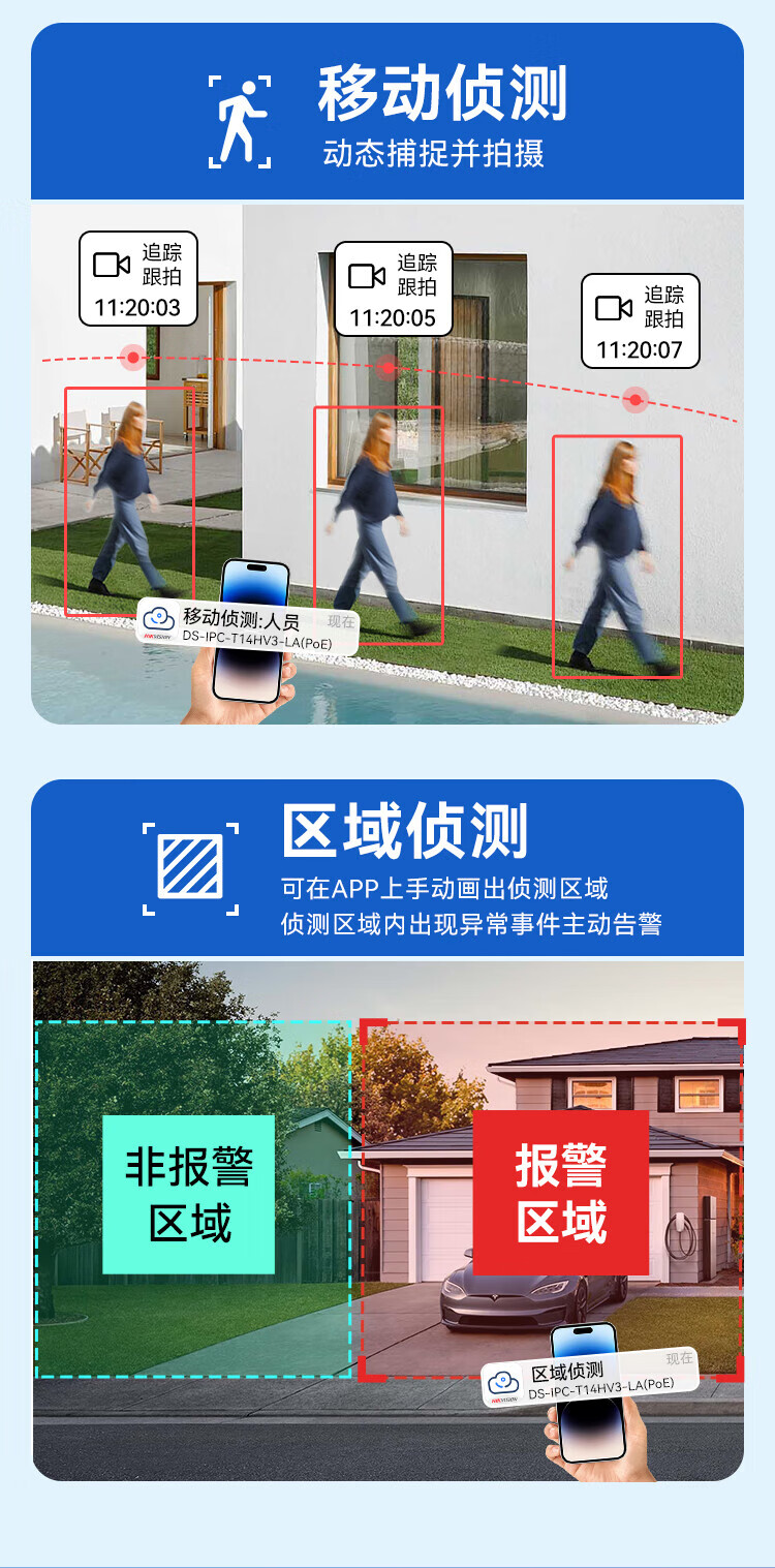 HIKVISION海康威视监控摄像头200万全彩夜视poe网线供电AI人形侦测手机远程家用室外监控器B12HV3-LT 4MM