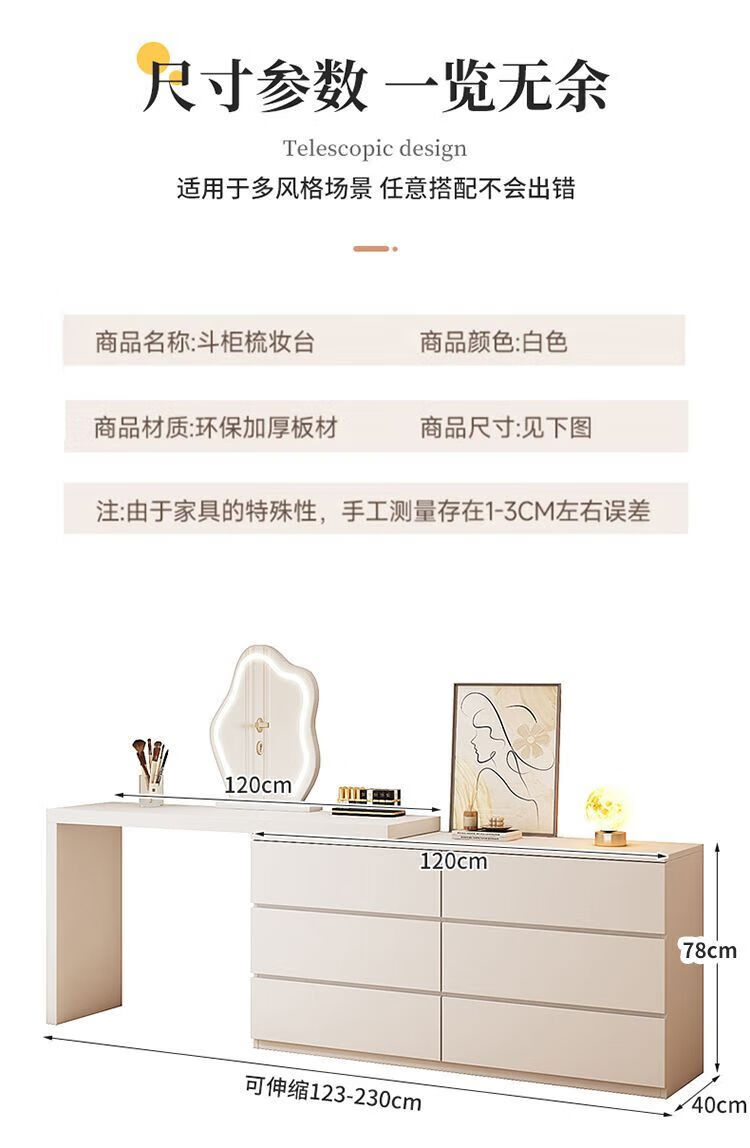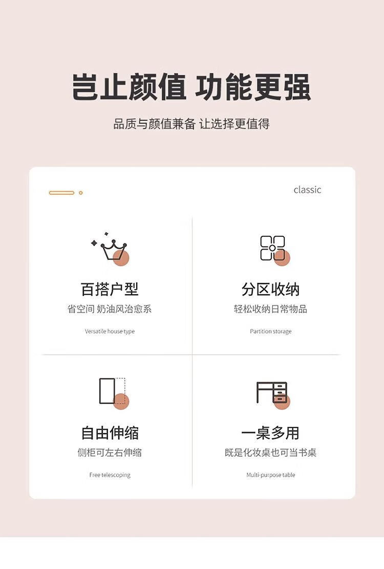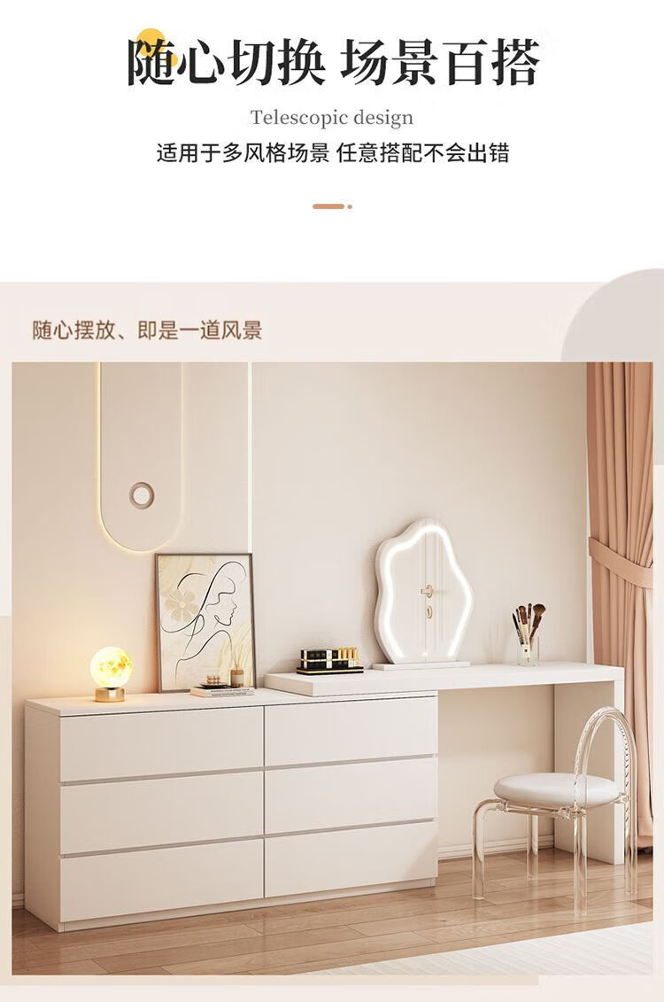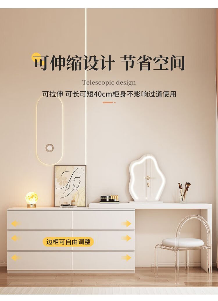 倘然之家梳妆台斗柜一体卧室简约现代书桌化妆台化妆柜床尾柜可伸缩化妆桌 柜0.4米 【小户型推荐】