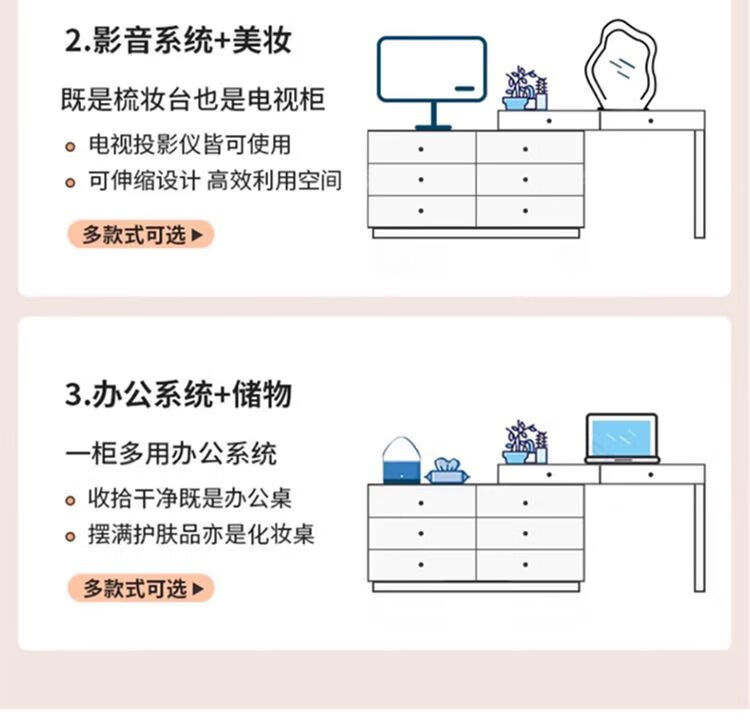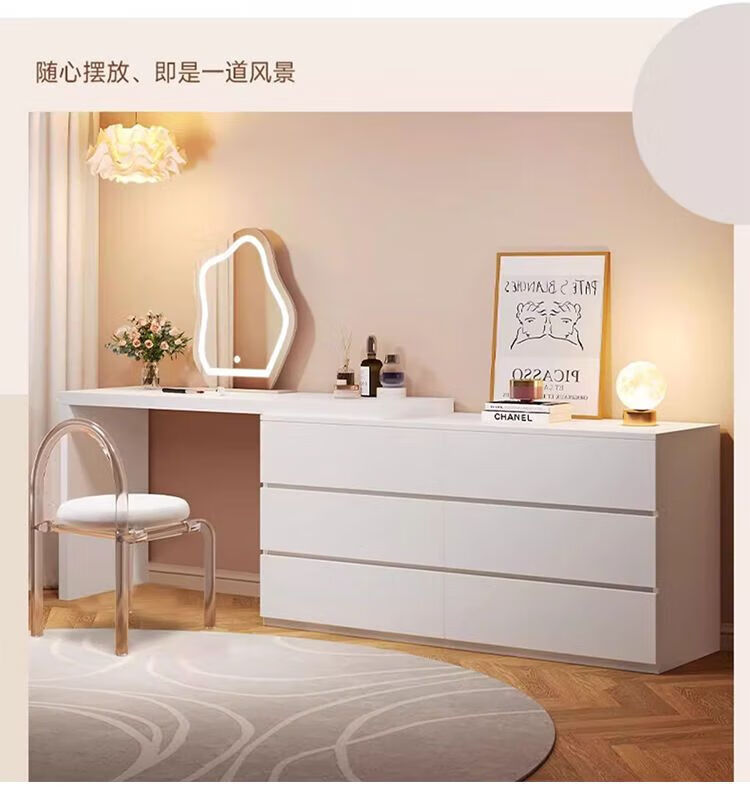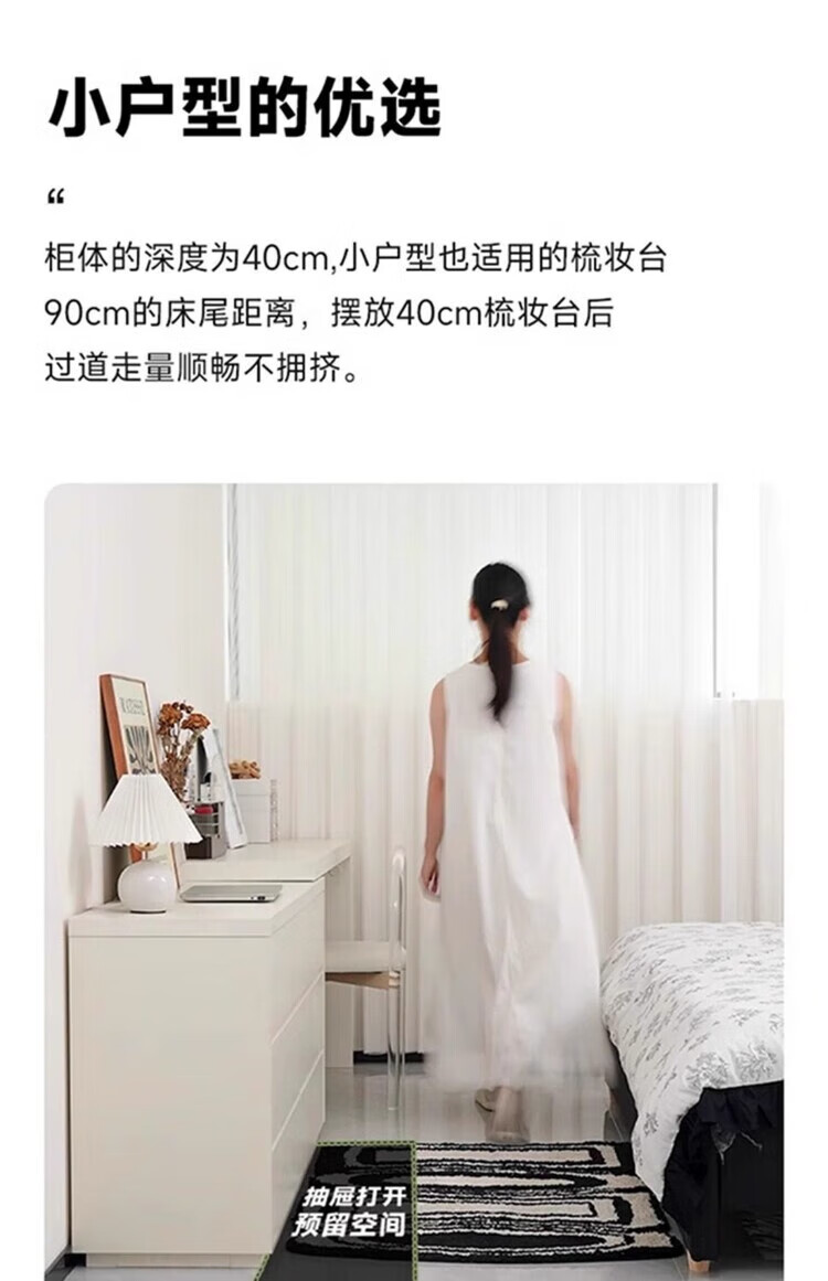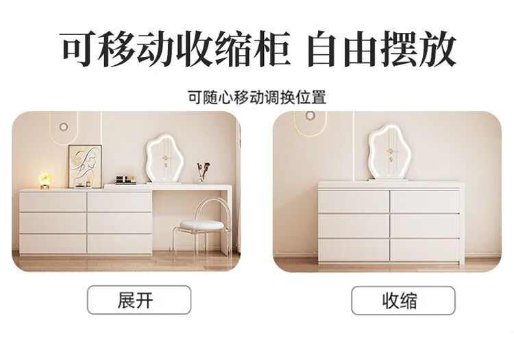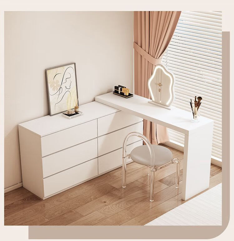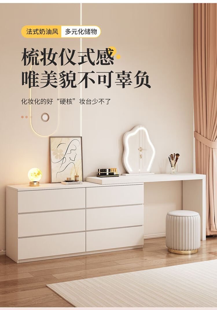 倘然之家梳妆台斗柜一体卧室简约现代书桌化妆台化妆柜床尾柜可伸缩化妆桌 柜0.4米 【小户型推荐】