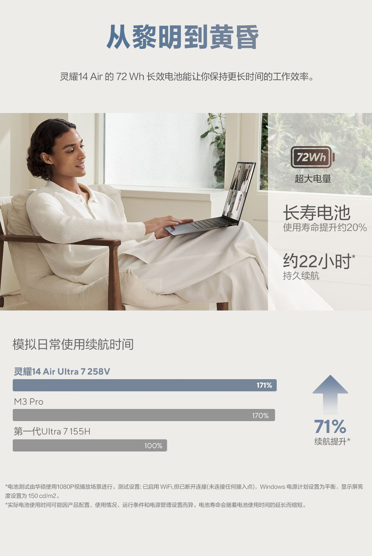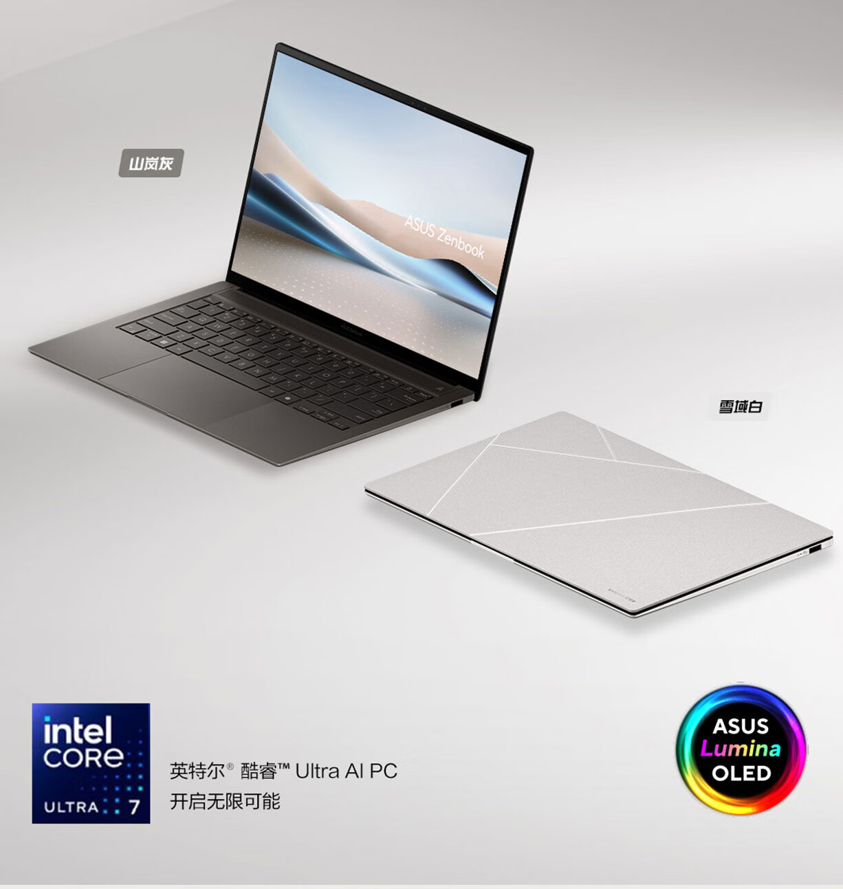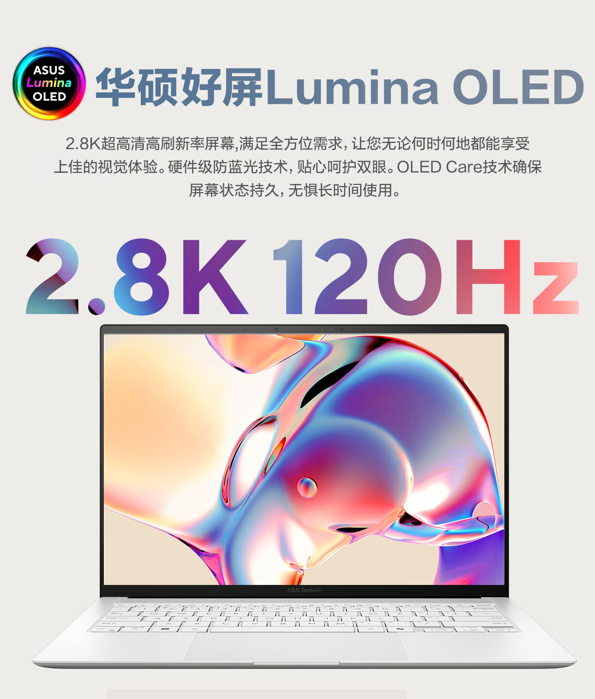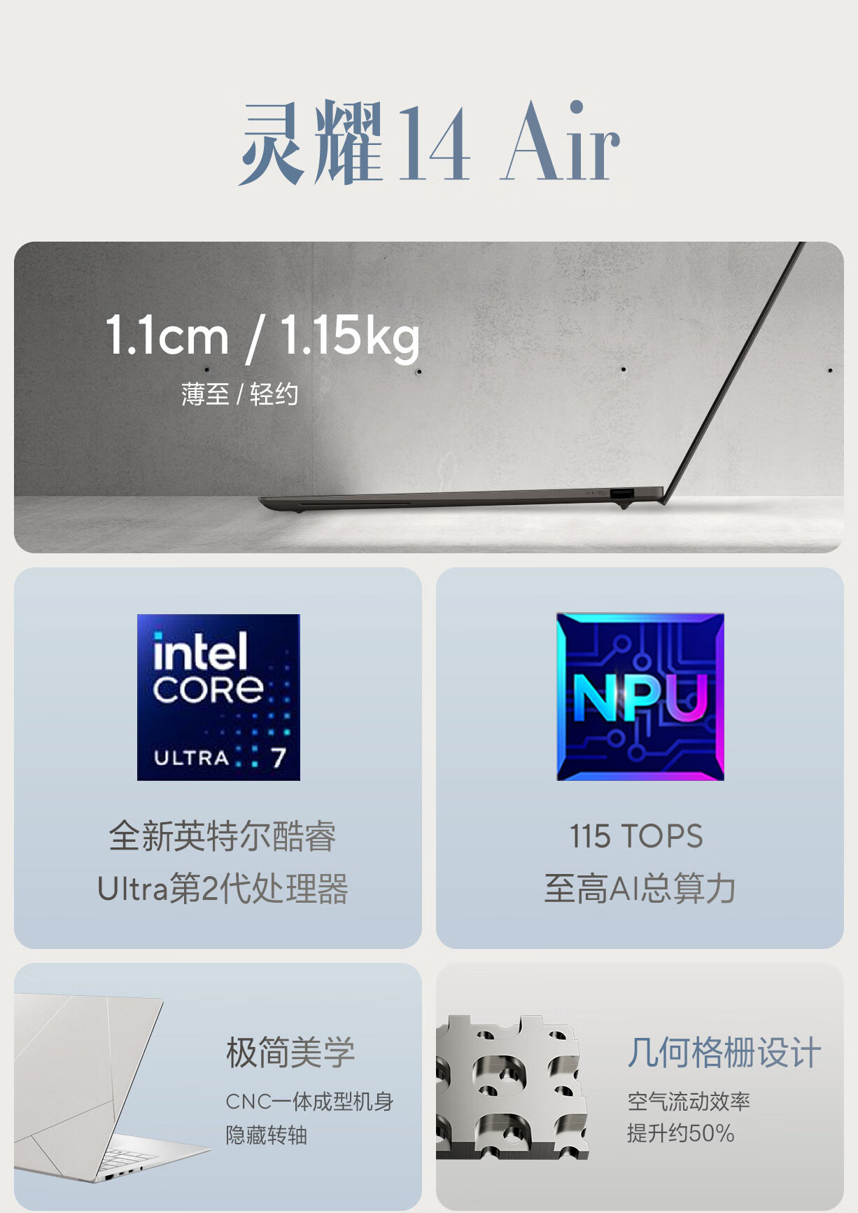 华硕灵耀14 Air国家补贴20%酷睿Ultra7 2.8K 120Hz OLED 1.1cm超轻薄22小时长续航AI电脑(258V 32G 1T)