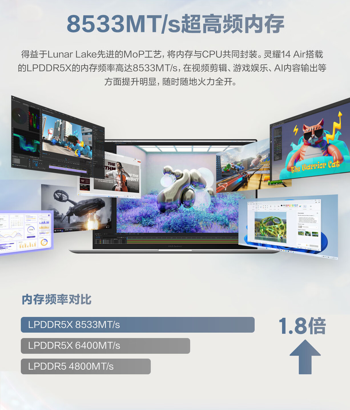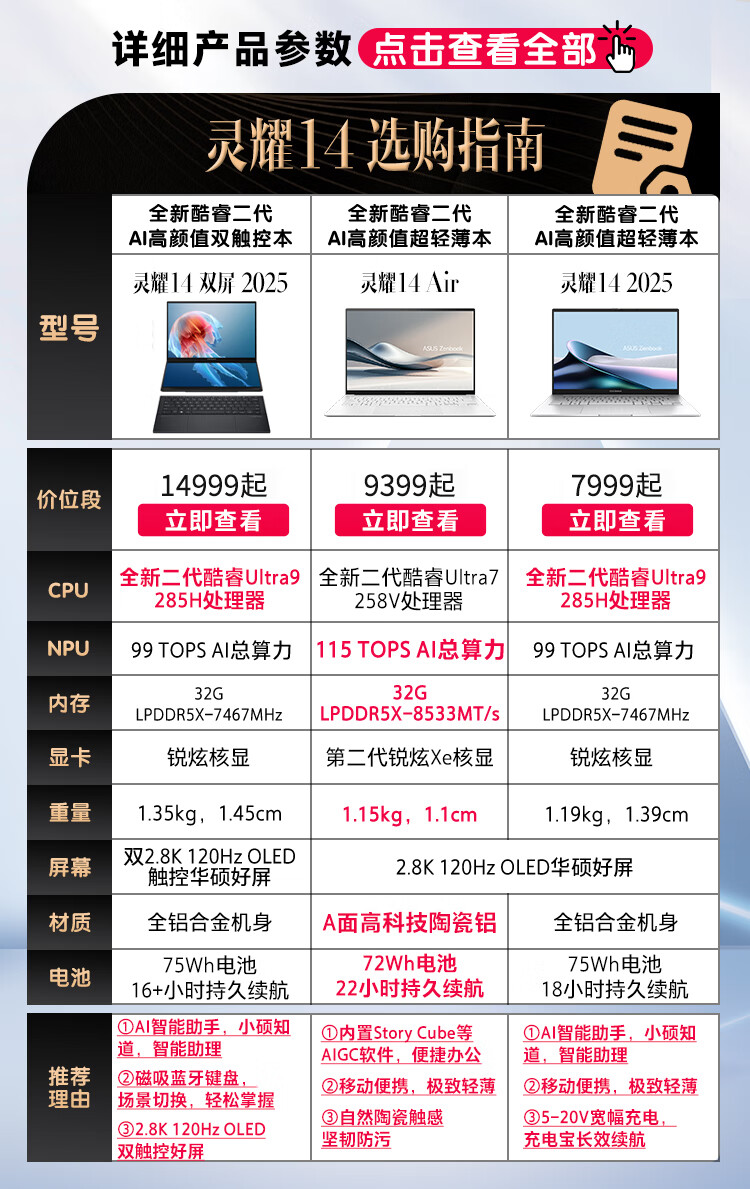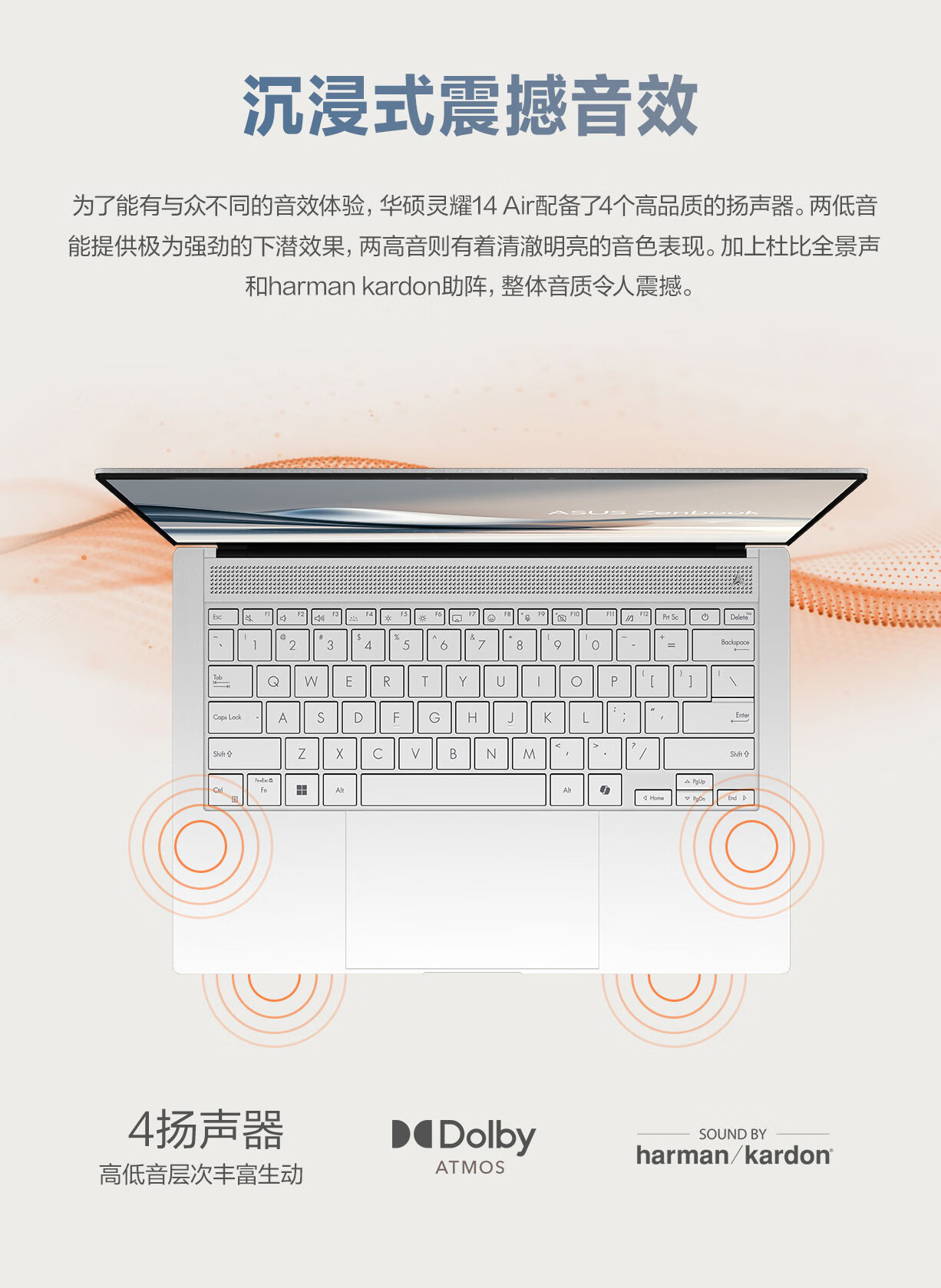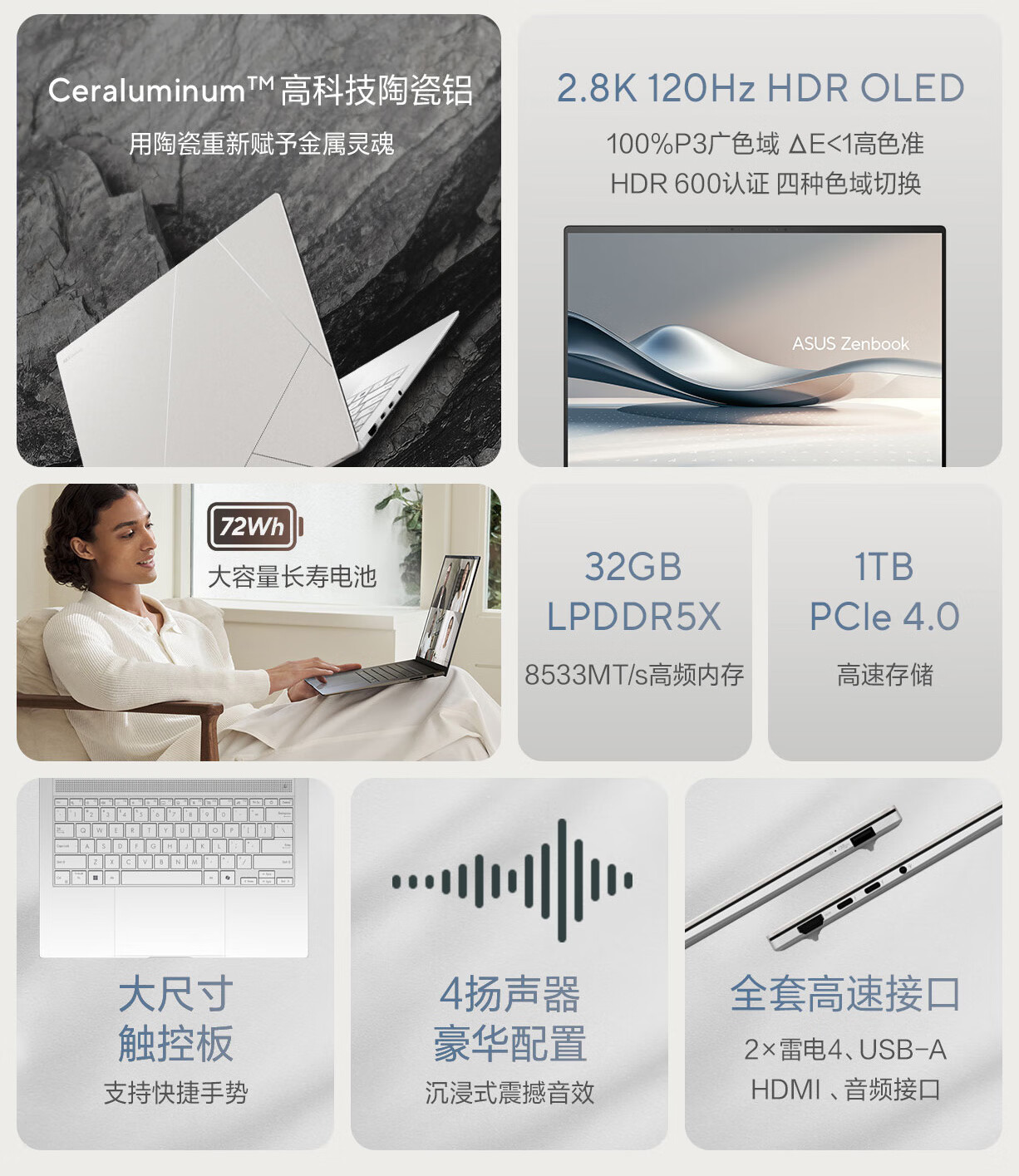 华硕灵耀14 Air国家补贴20%酷睿Ultra7 2.8K 120Hz OLED 1.1cm超轻薄22小时长续航AI电脑(258V 32G 1T)