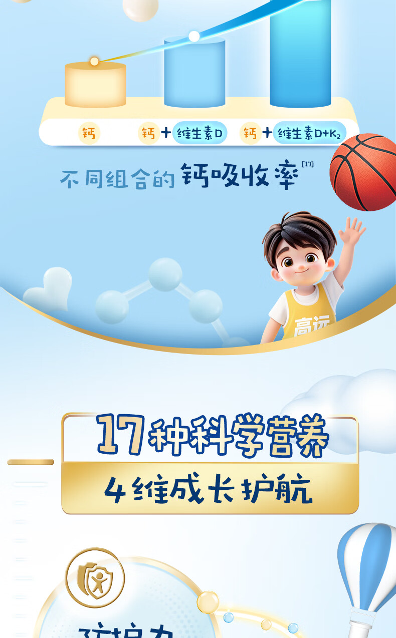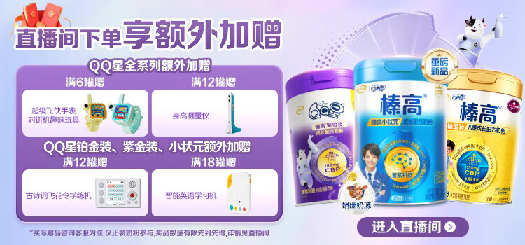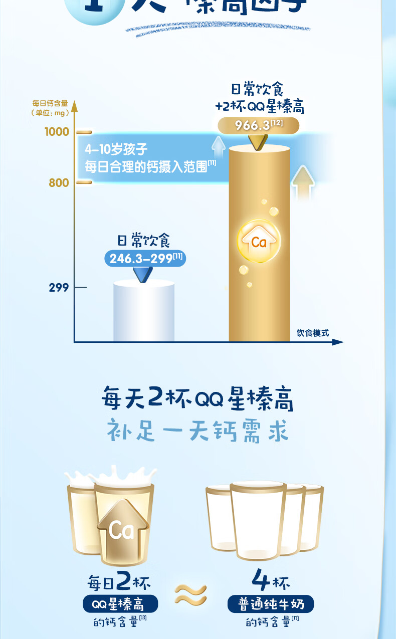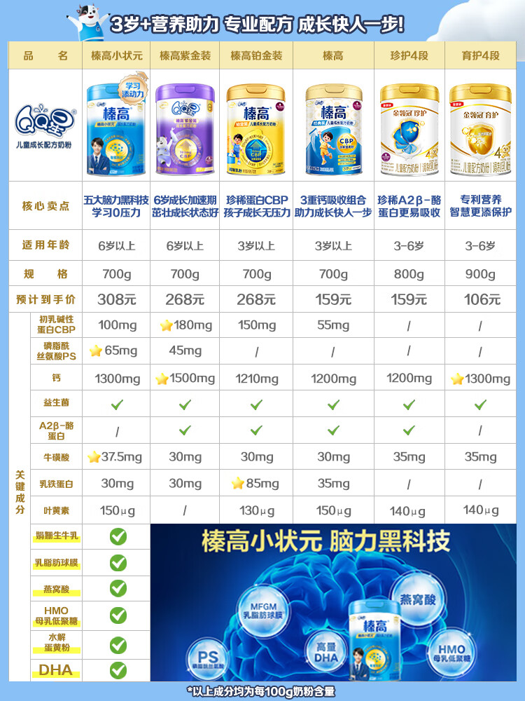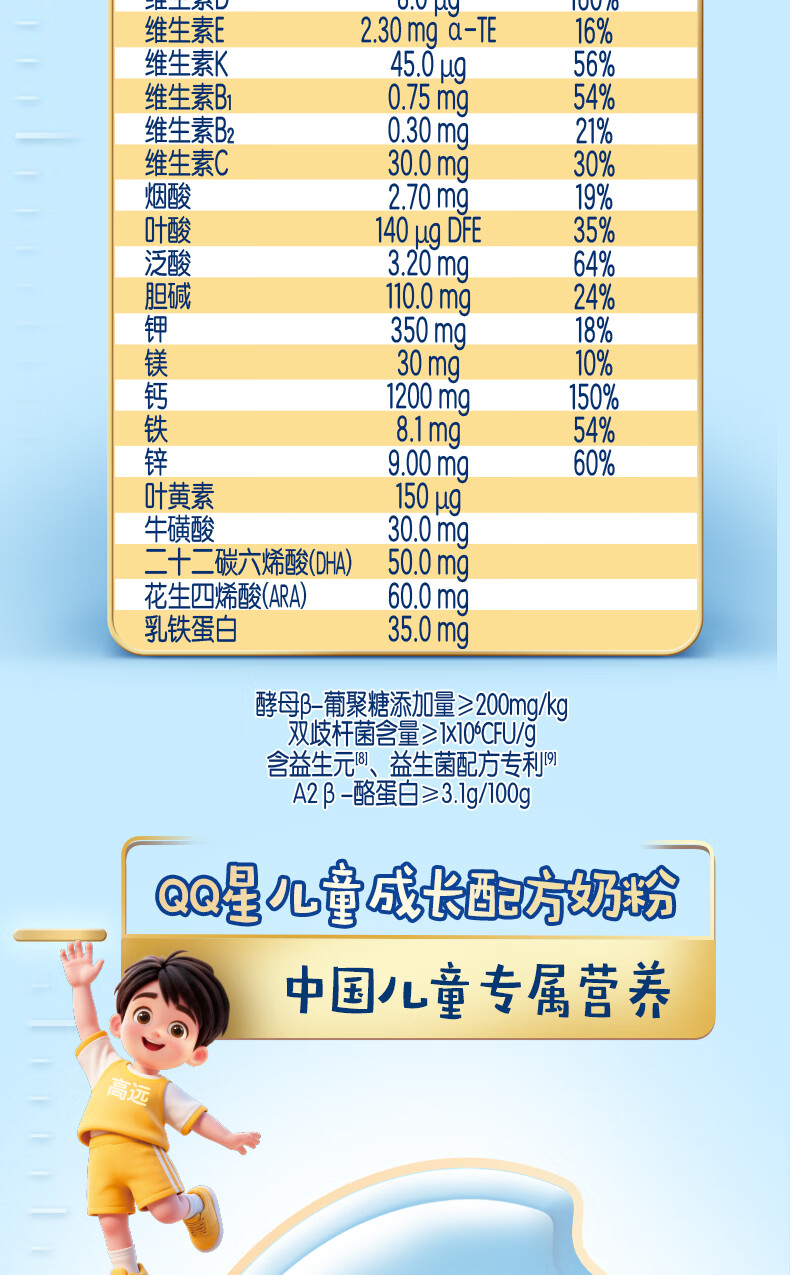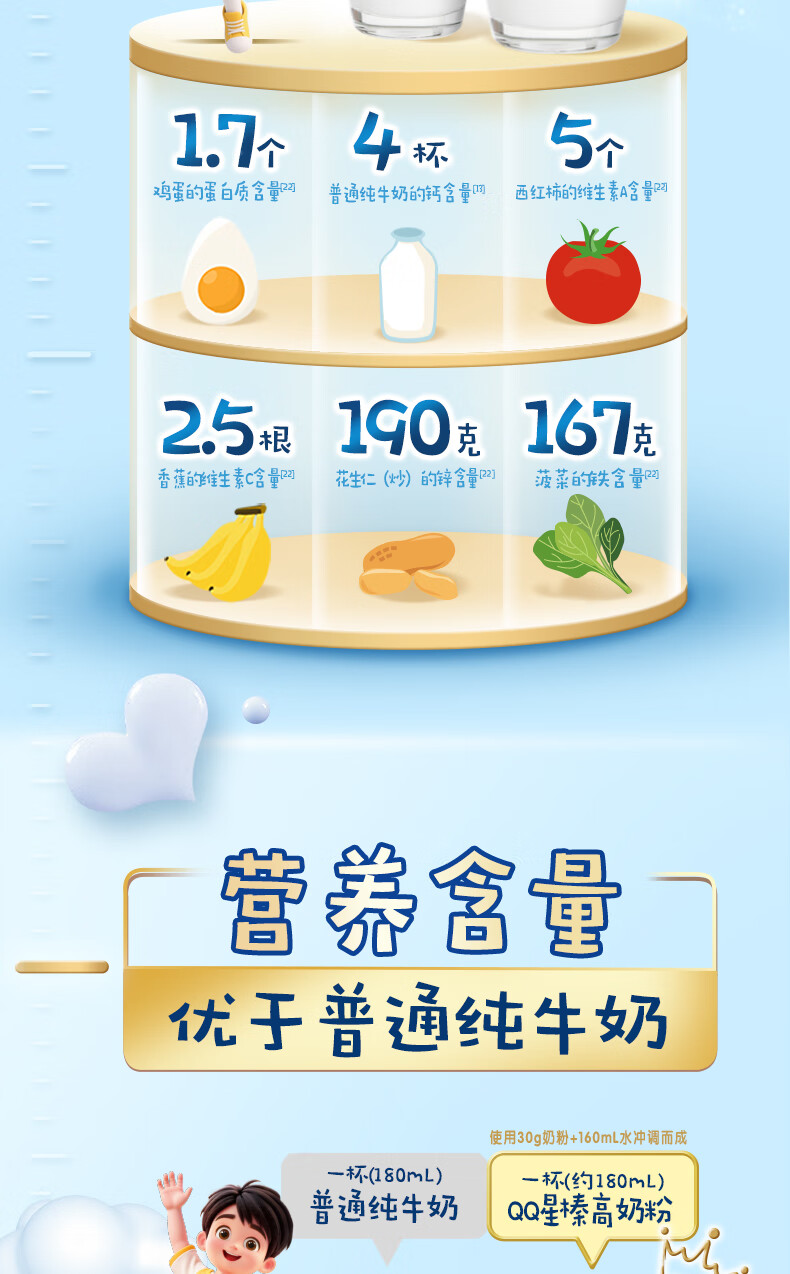 伊利QQ星榛高儿童成长奶粉4段3岁+A2β-酪蛋白奶源DHA乳铁蛋白700g