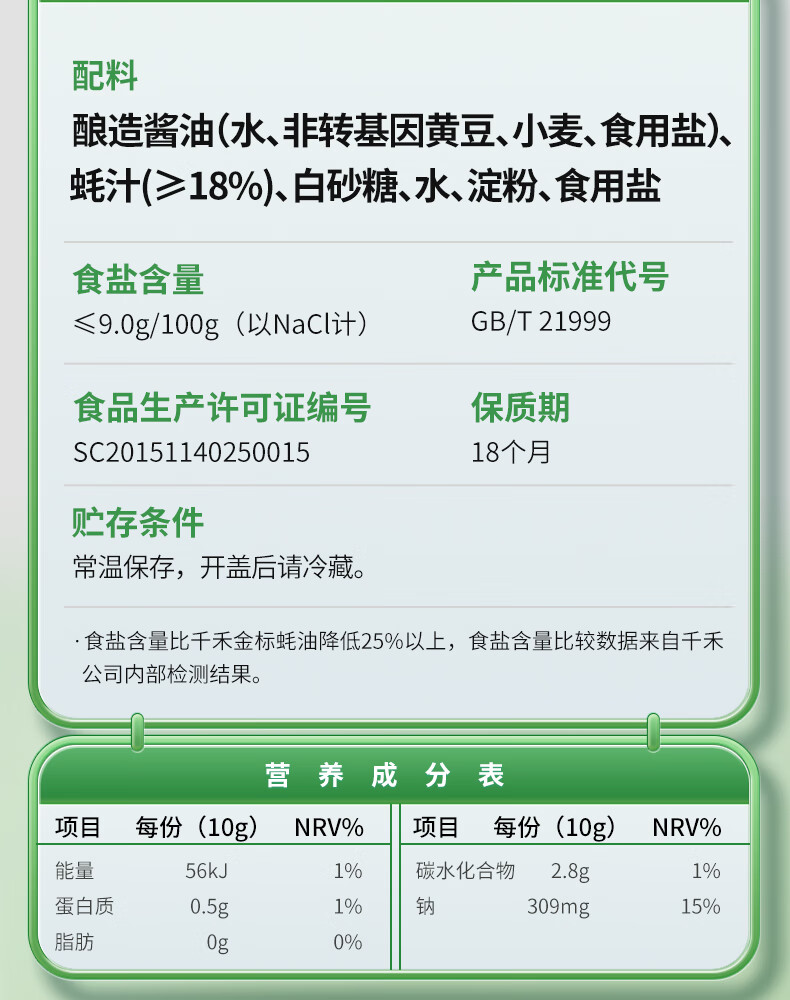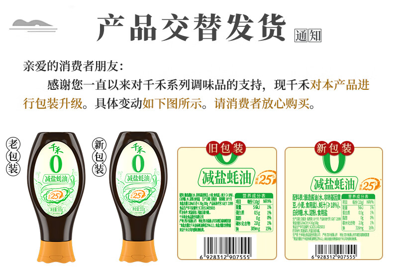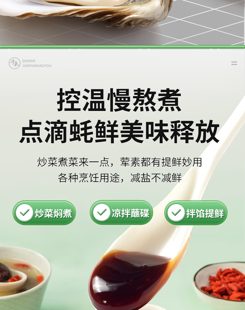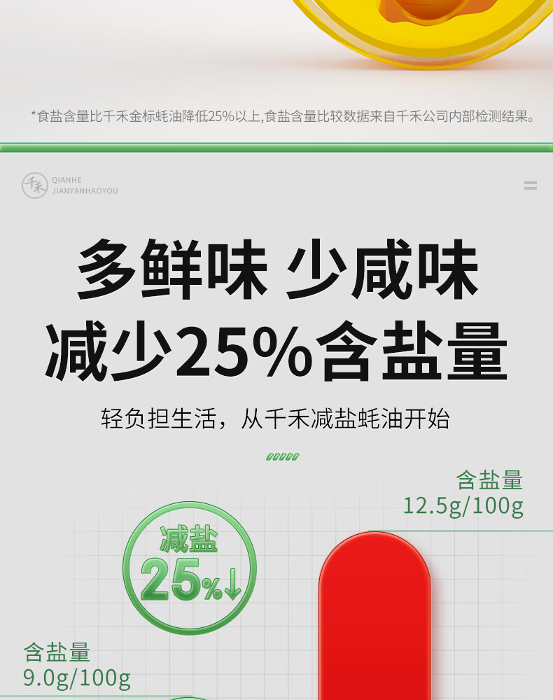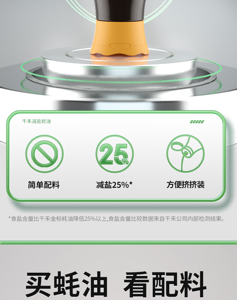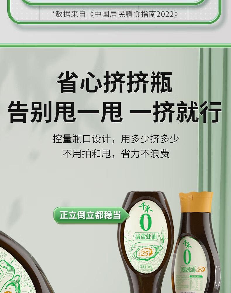 千禾0添加减盐蚝油555g 【减盐25%】挤挤装配料干净蘸拌炖炒蒸调味料
