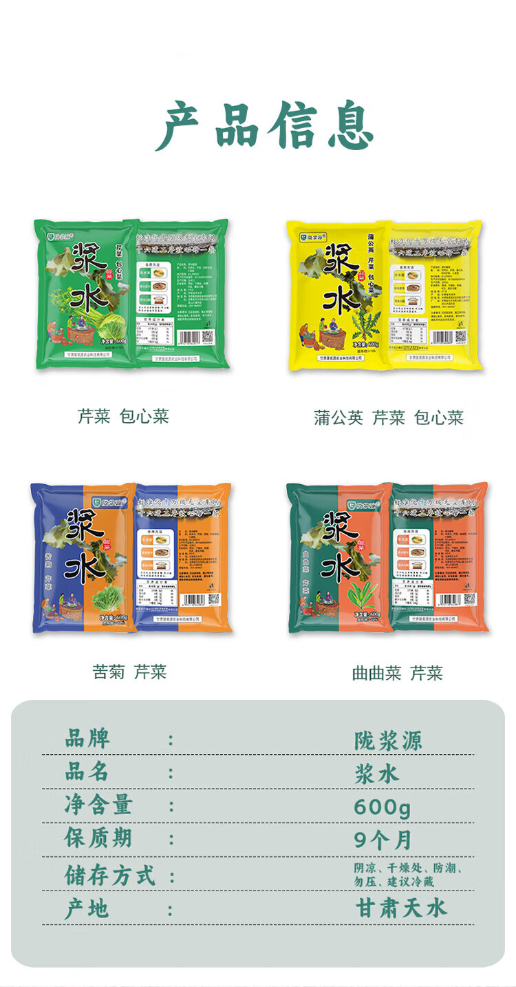 陇浆源浆水酸菜天水甘肃特产芹菜蒲公英苣野菜 蒲公英芹菜包菜600g*5袋