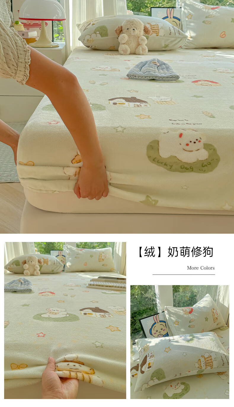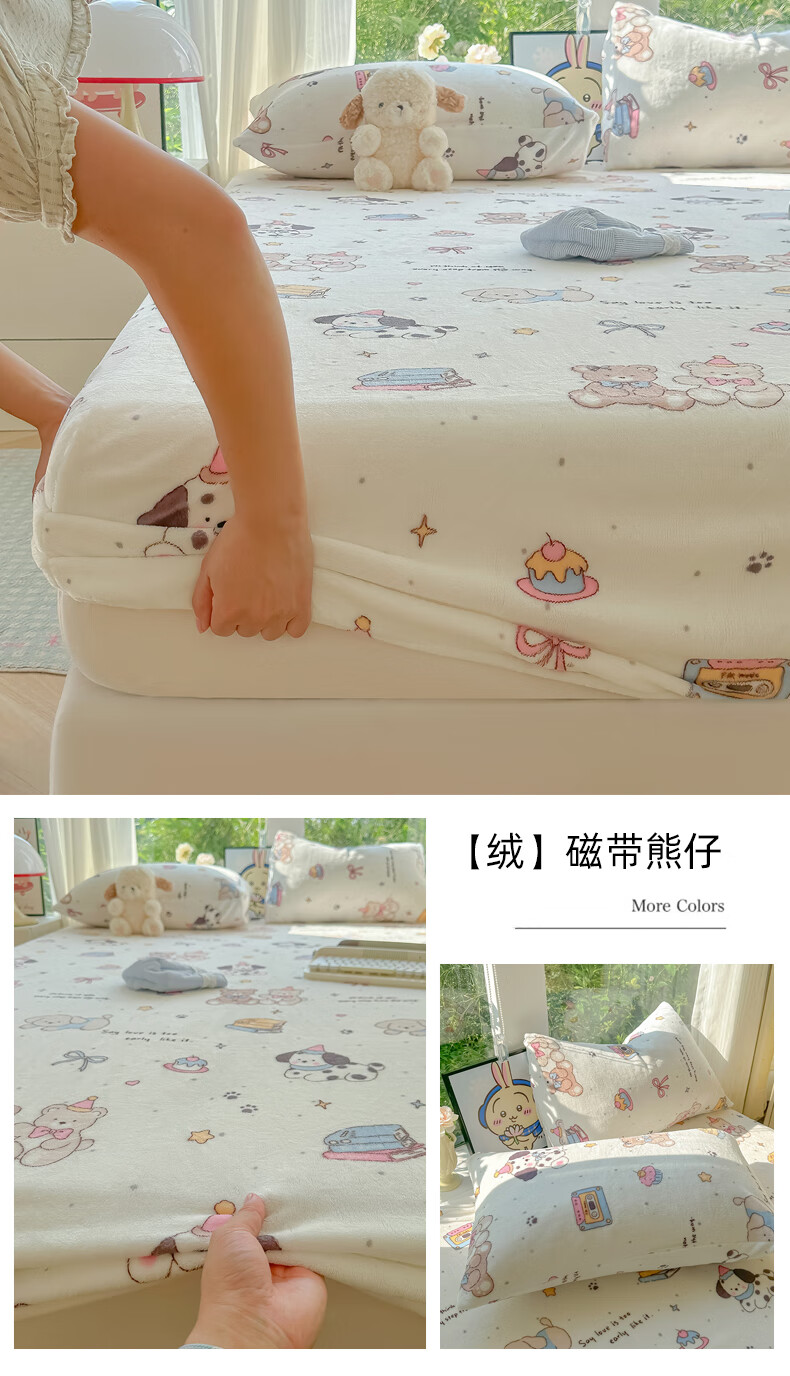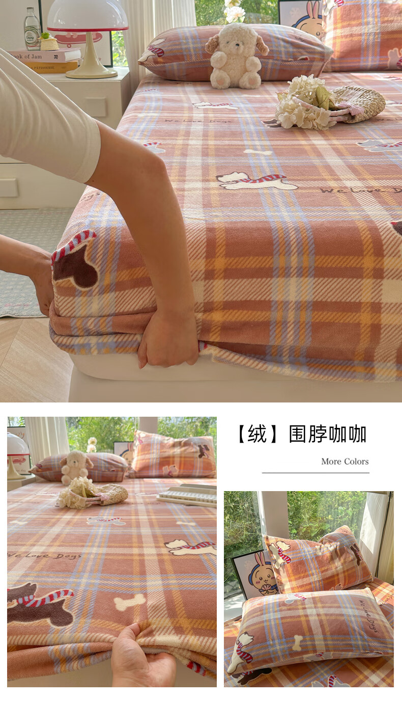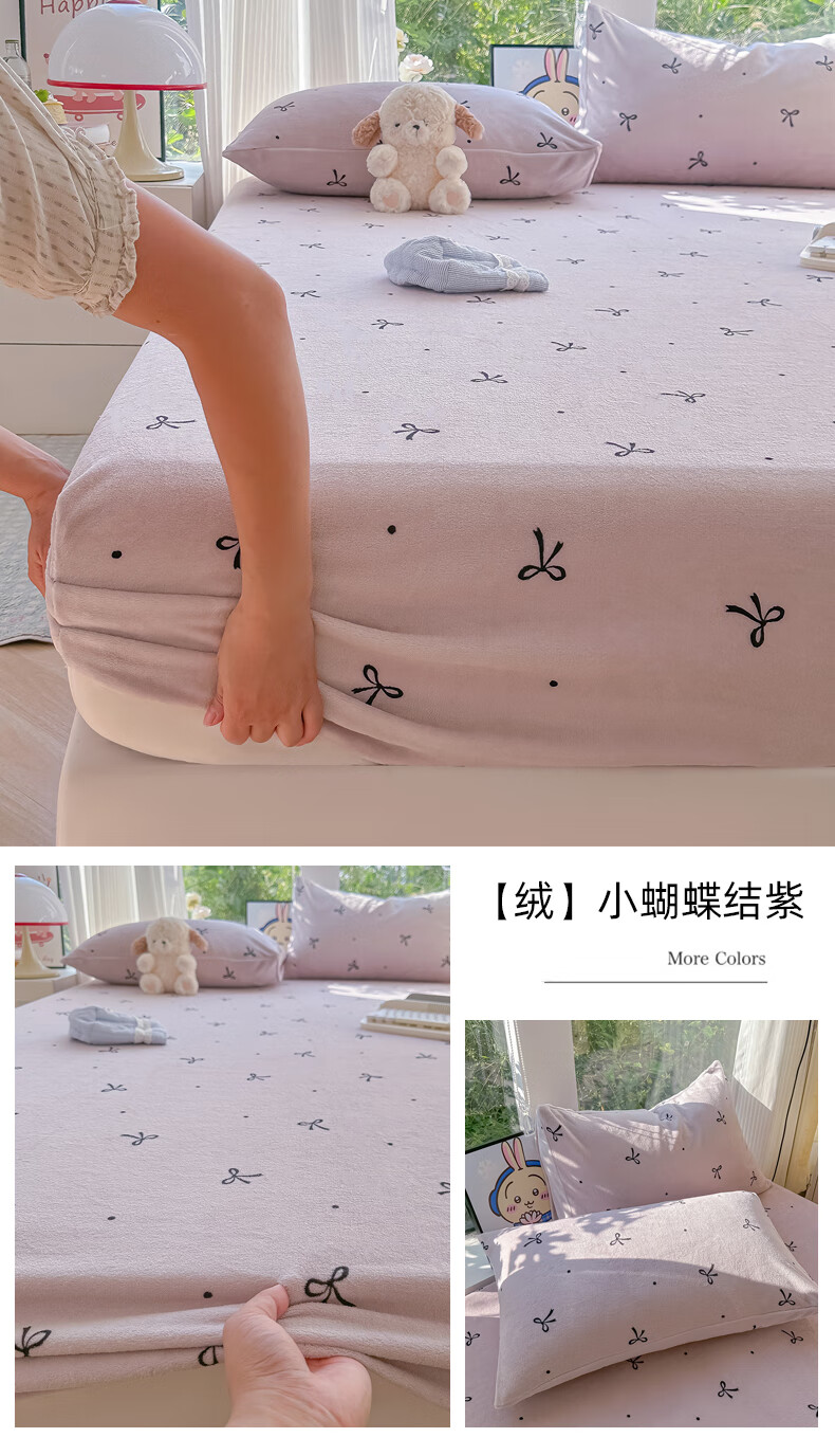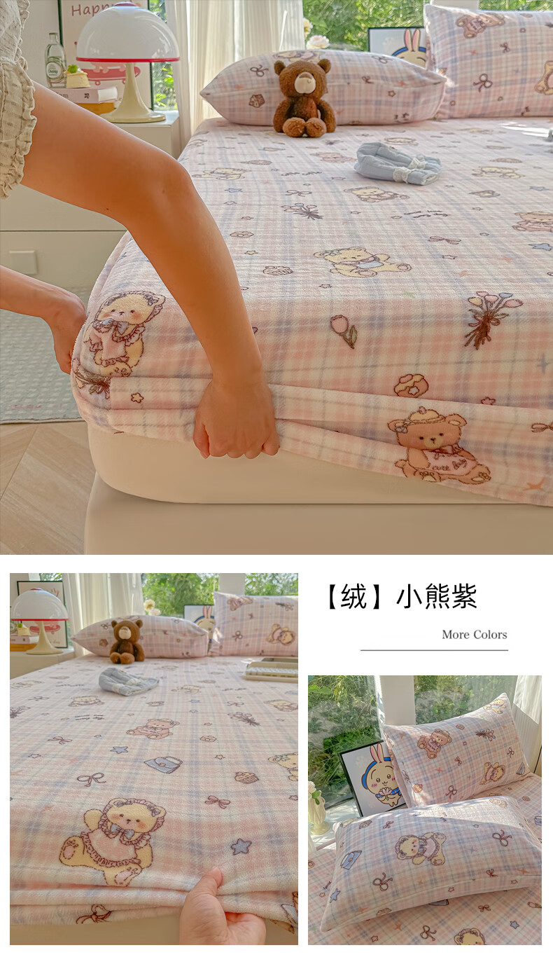 浪莎(LangSha)A类ins秋冬季牛奶绒床笠单件加厚珊瑚绒被单法兰绒学生宿舍床垫单 【绒】小熊紫 单床笠床 150cm*200cm