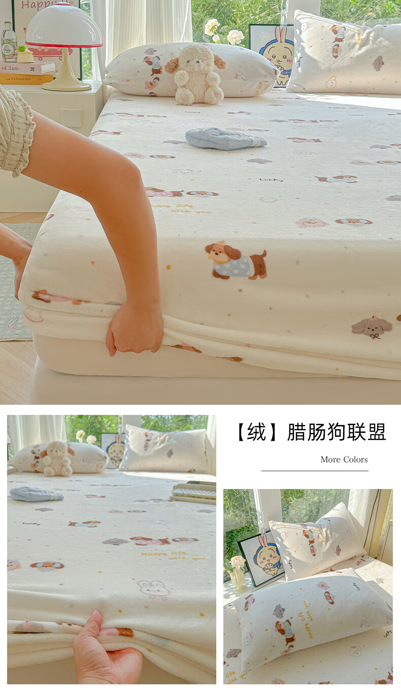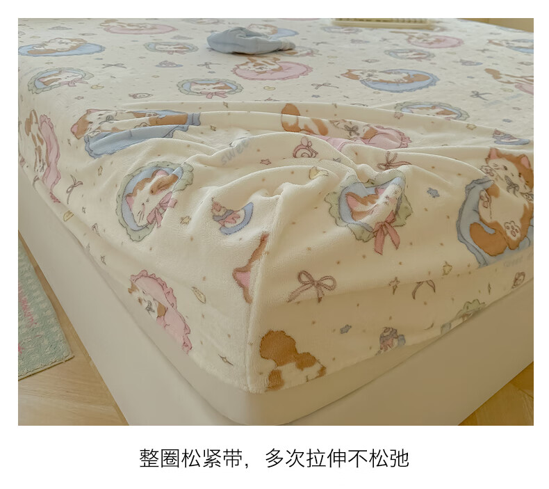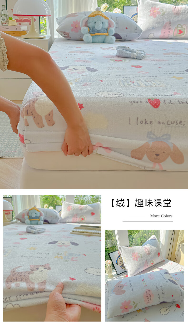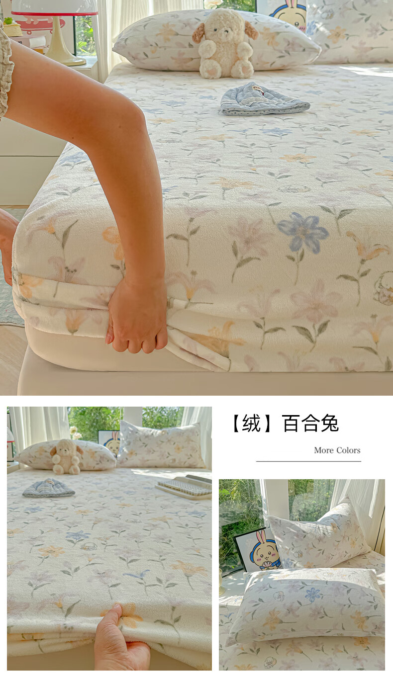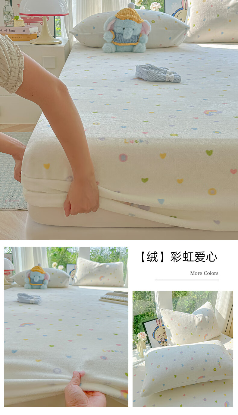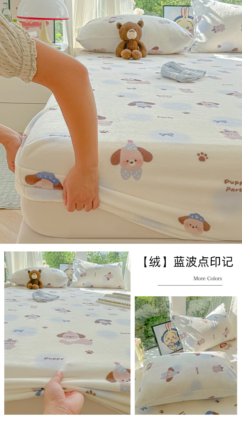 浪莎(LangSha)A类ins秋冬季牛奶绒床笠单件加厚珊瑚绒被单法兰绒学生宿舍床垫单 【绒】小熊紫 单床笠床 150cm*200cm