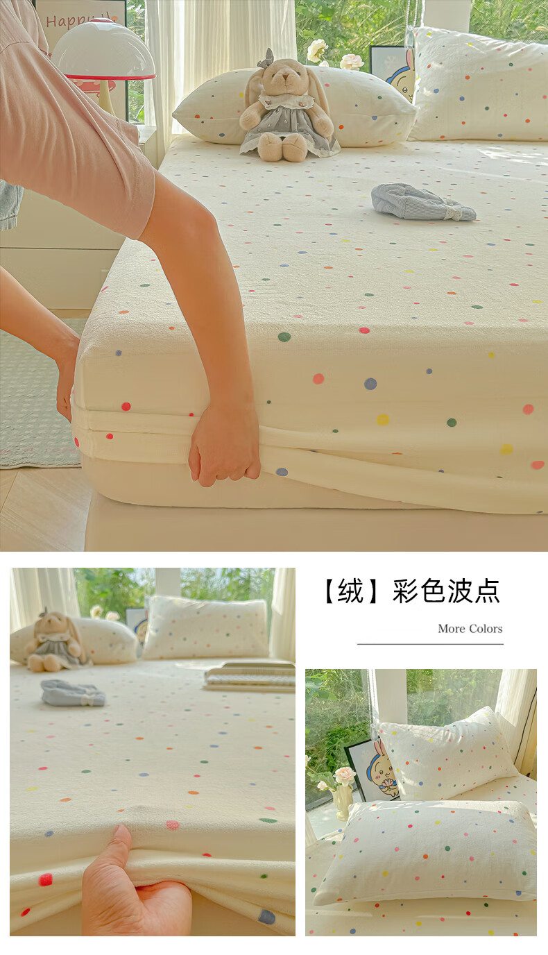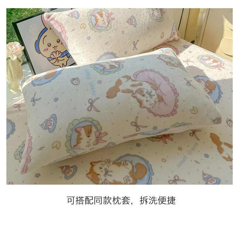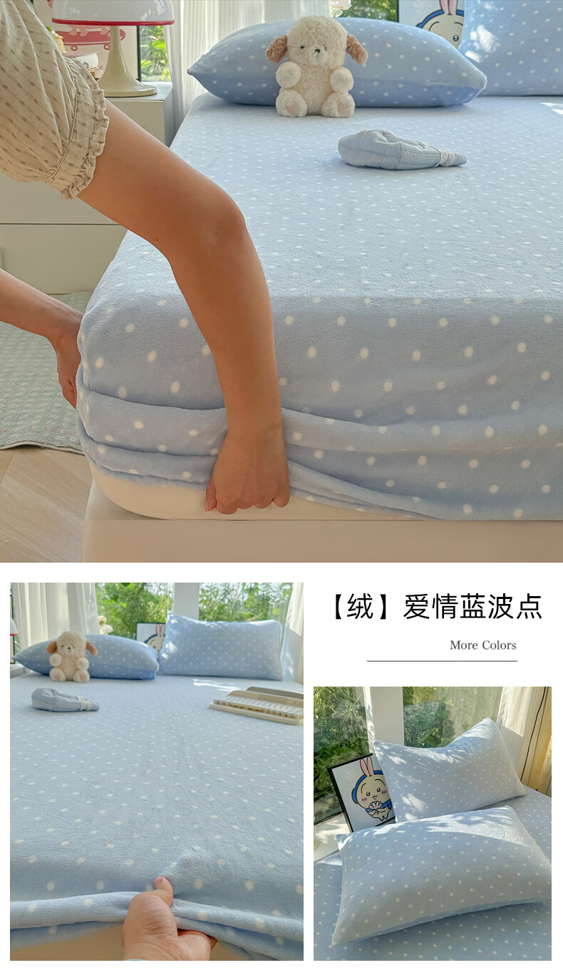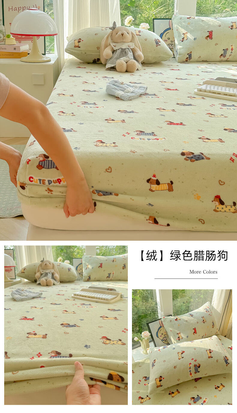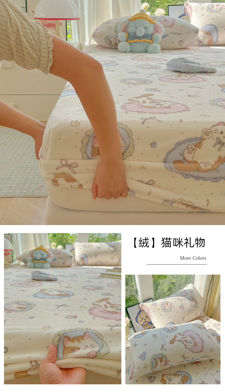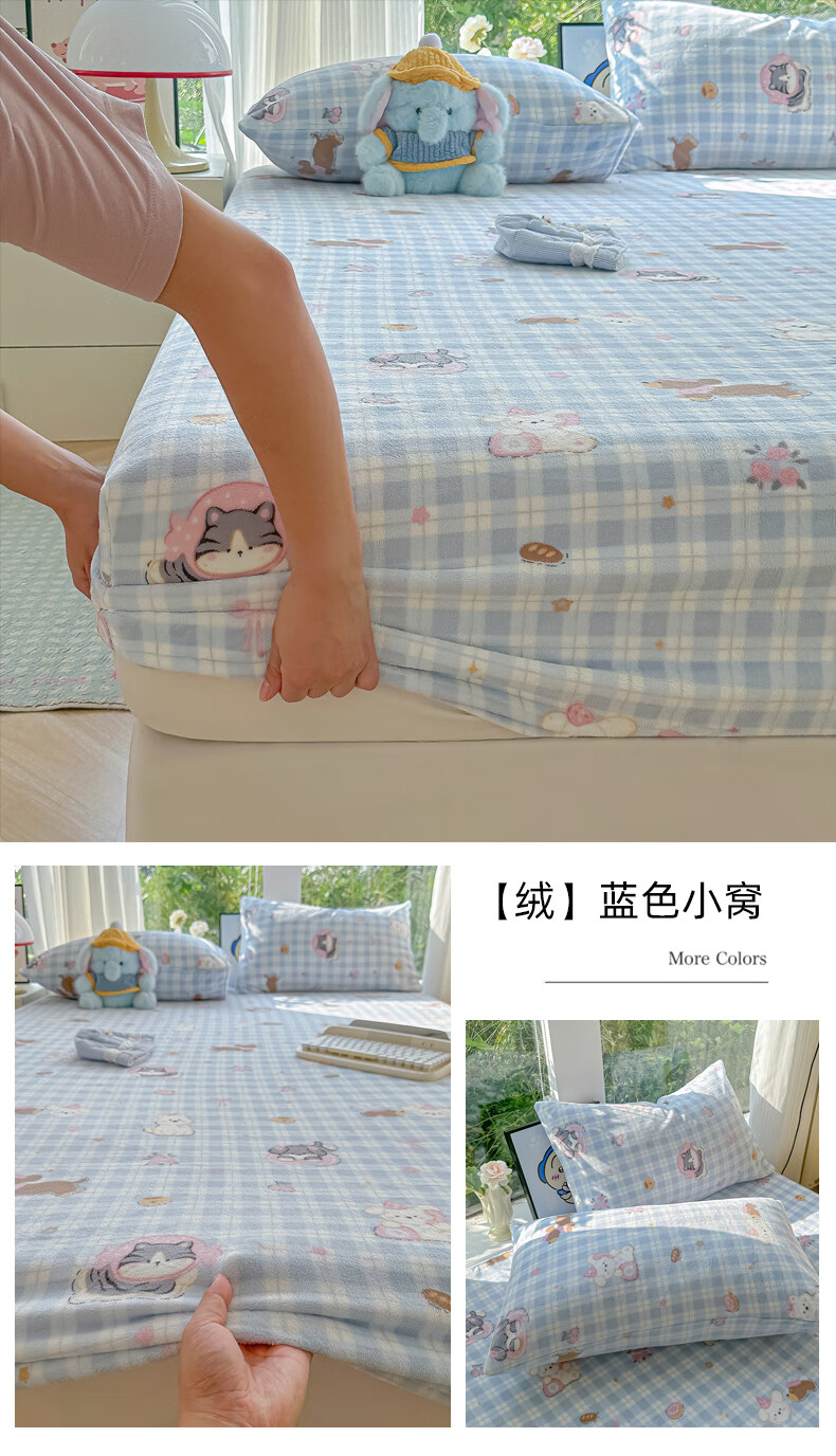 浪莎(LangSha)A类ins秋冬季牛奶绒床笠单件加厚珊瑚绒被单法兰绒学生宿舍床垫单 【绒】小熊紫 单床笠床 150cm*200cm