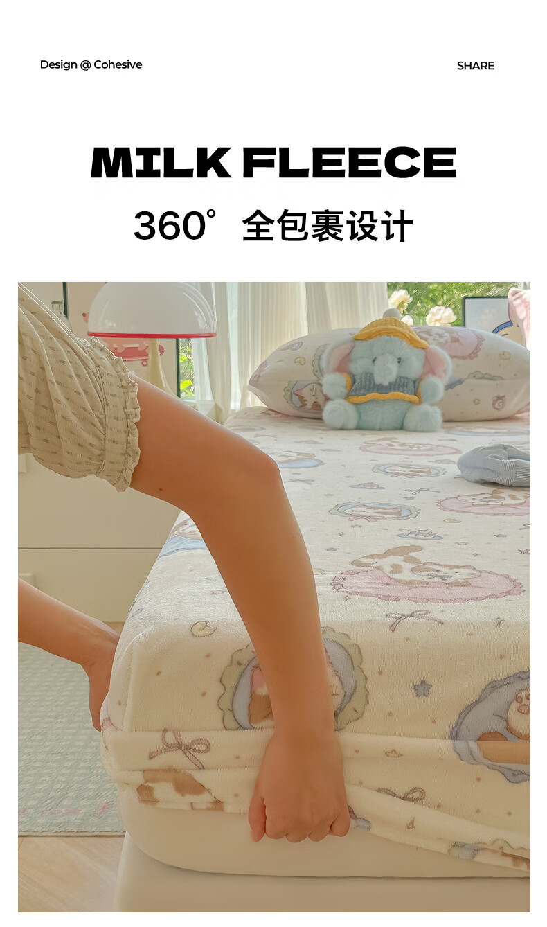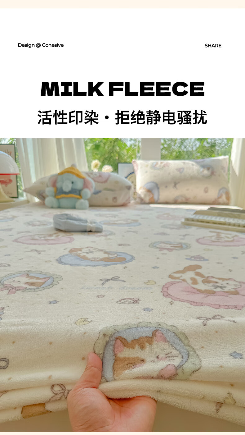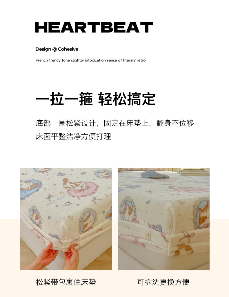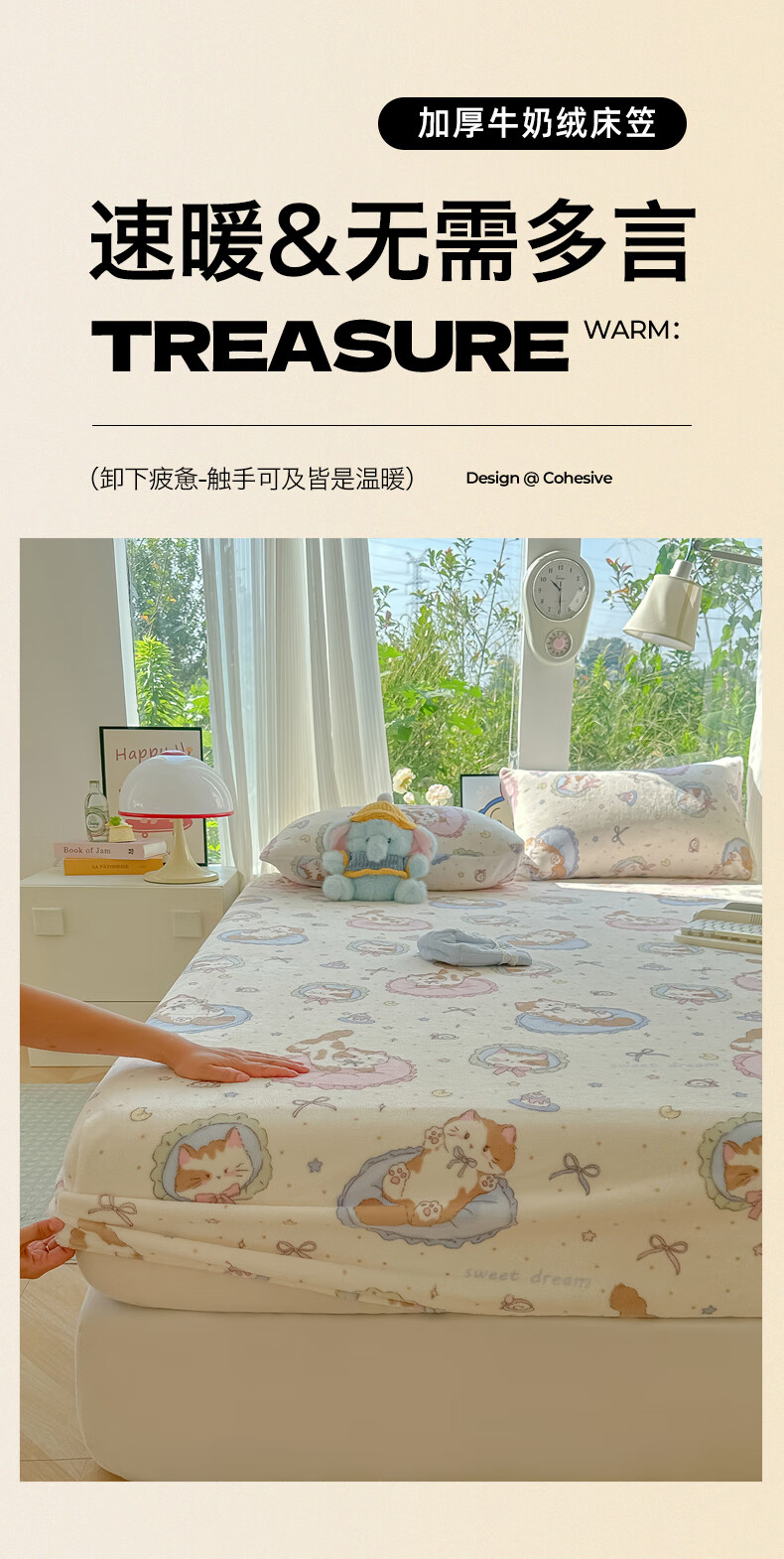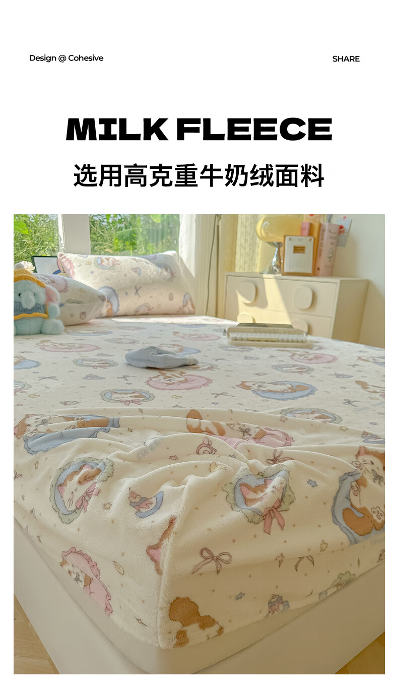 浪莎(LangSha)A类ins秋冬季牛奶绒床笠单件加厚珊瑚绒被单法兰绒学生宿舍床垫单 【绒】小熊紫 单床笠床 150cm*200cm