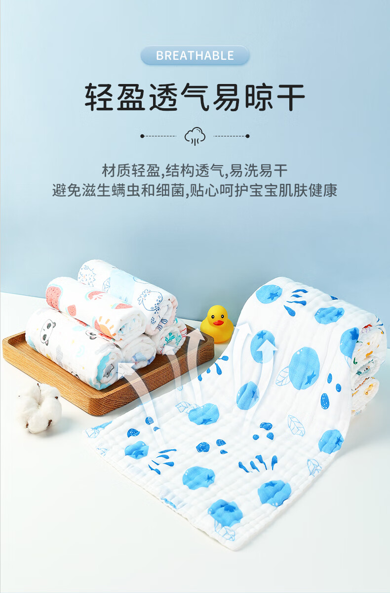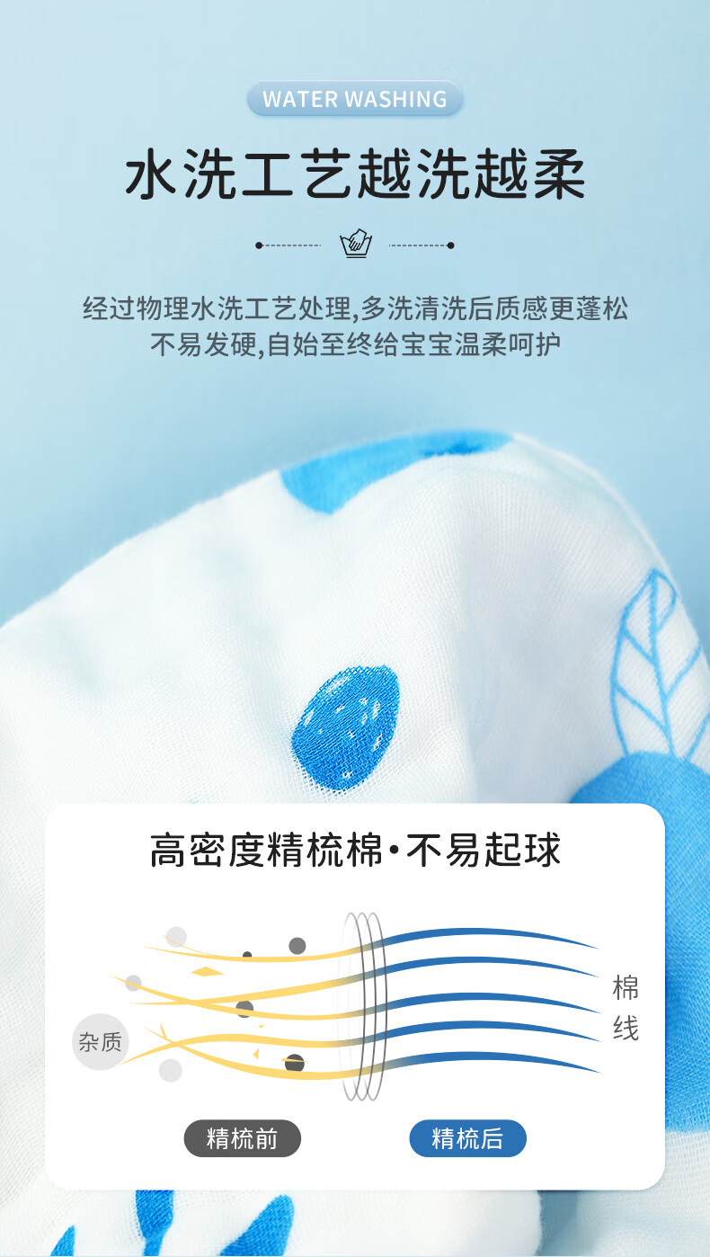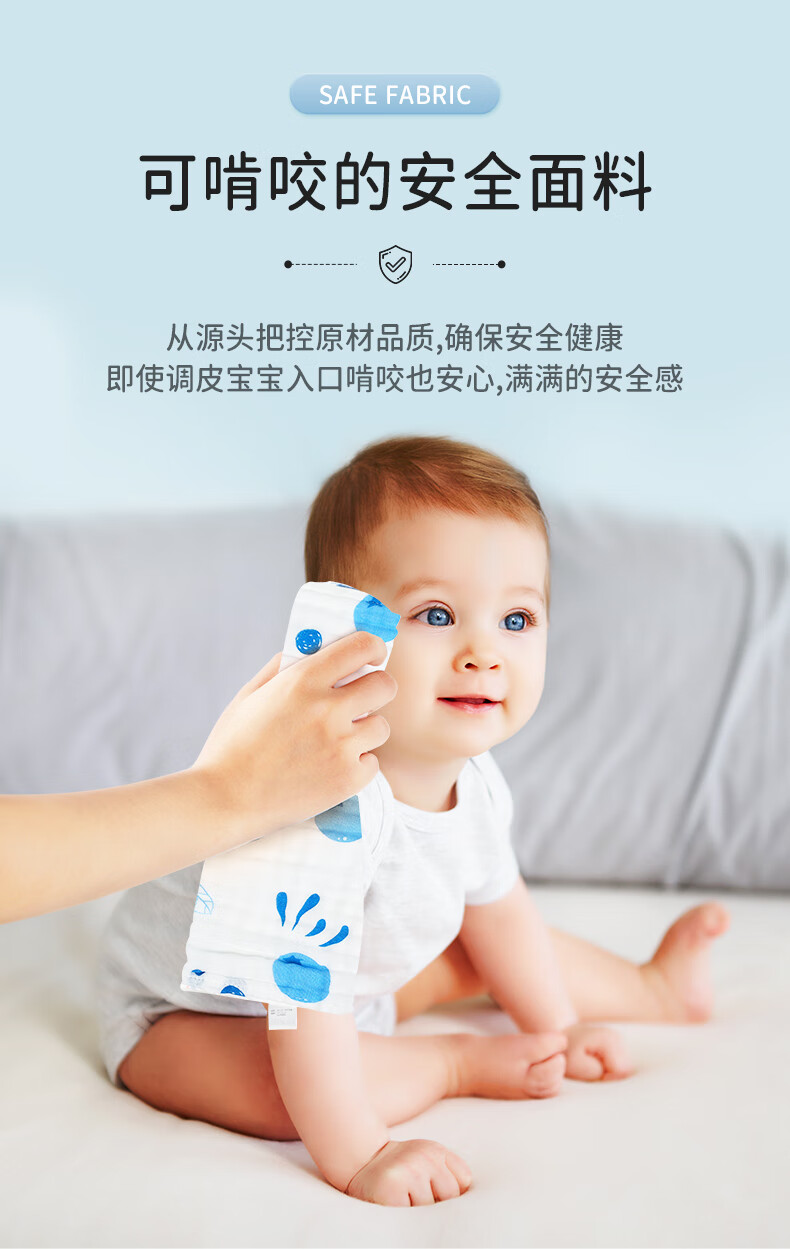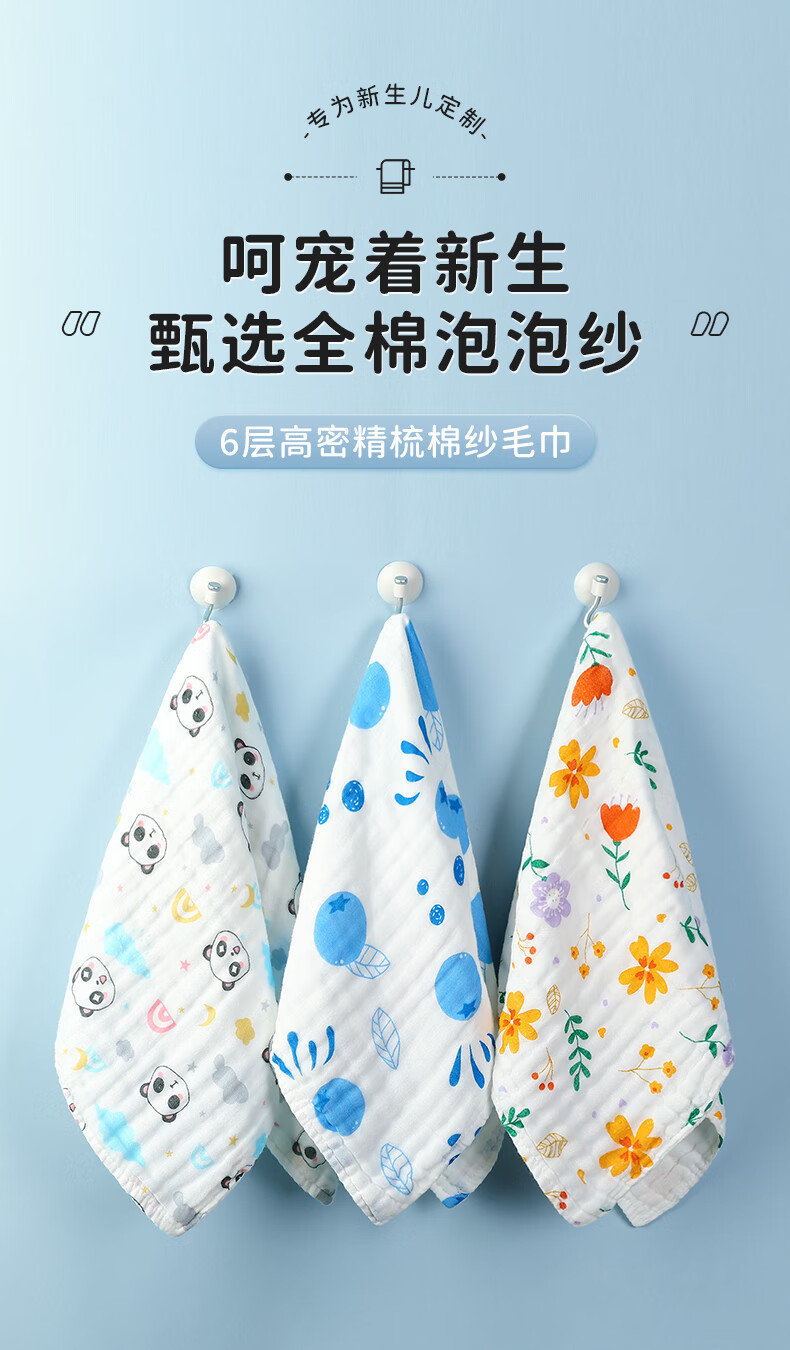 洁丽雅(Grace)纯棉6层纱布小毛巾宝宝童巾新生婴儿童洗脸洗澡柔软口水巾30*50cm