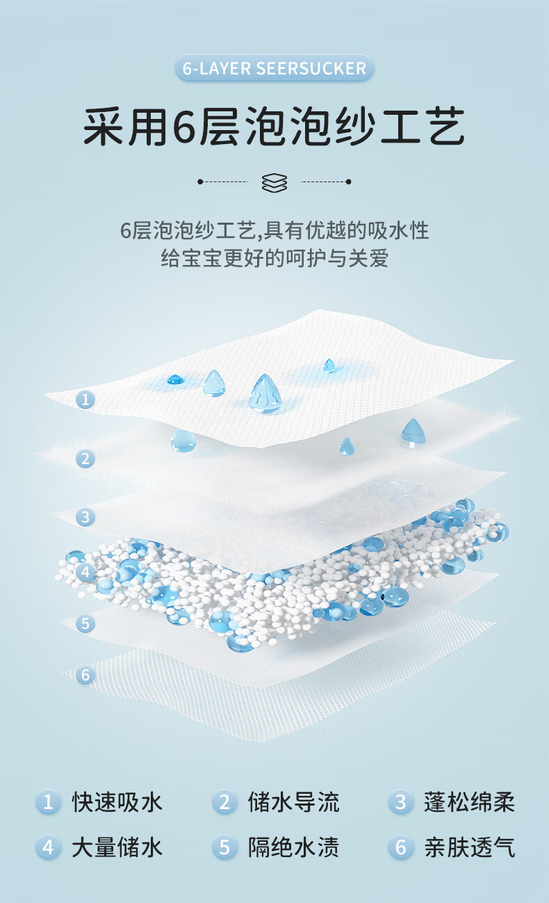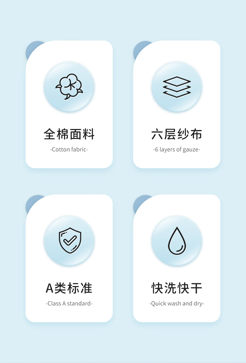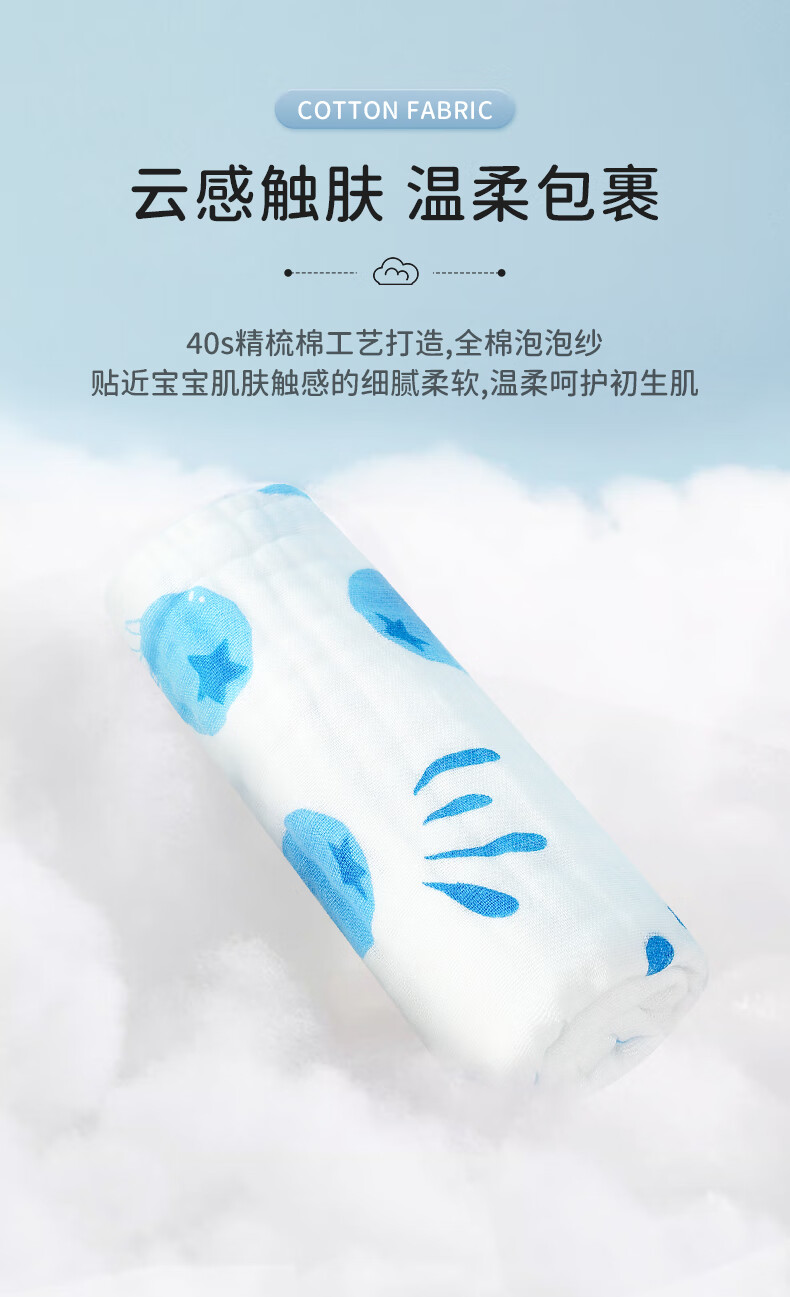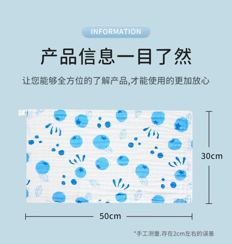 洁丽雅(Grace)纯棉6层纱布小毛巾宝宝童巾新生婴儿童洗脸洗澡柔软口水巾30*50cm