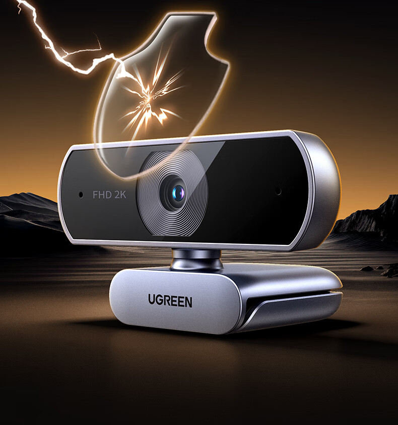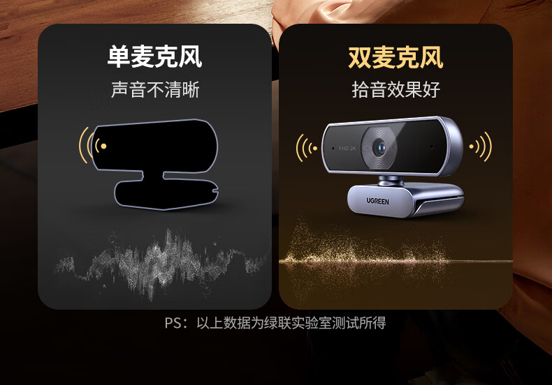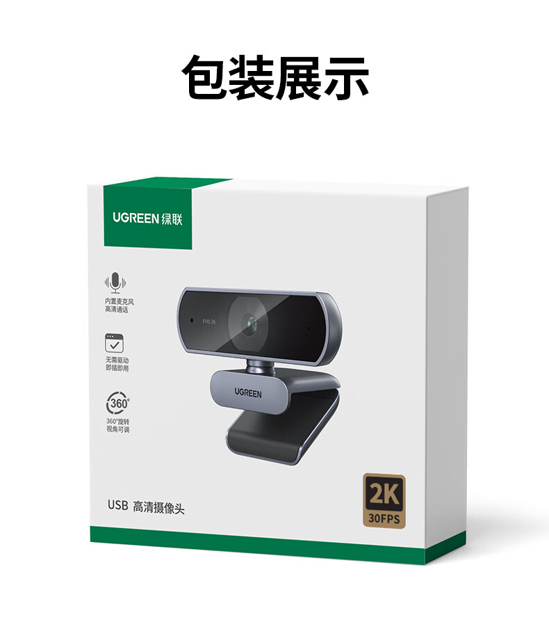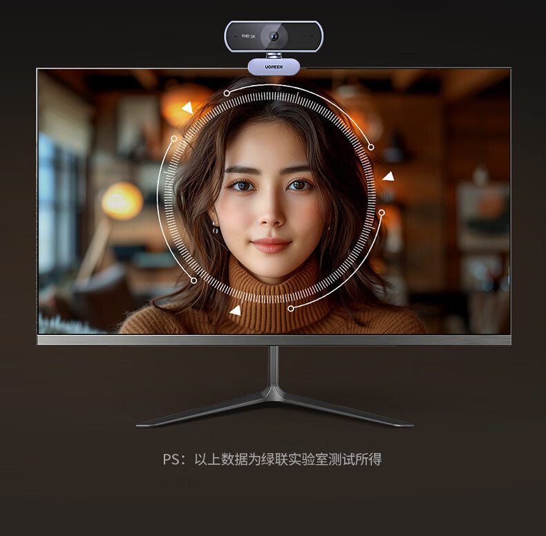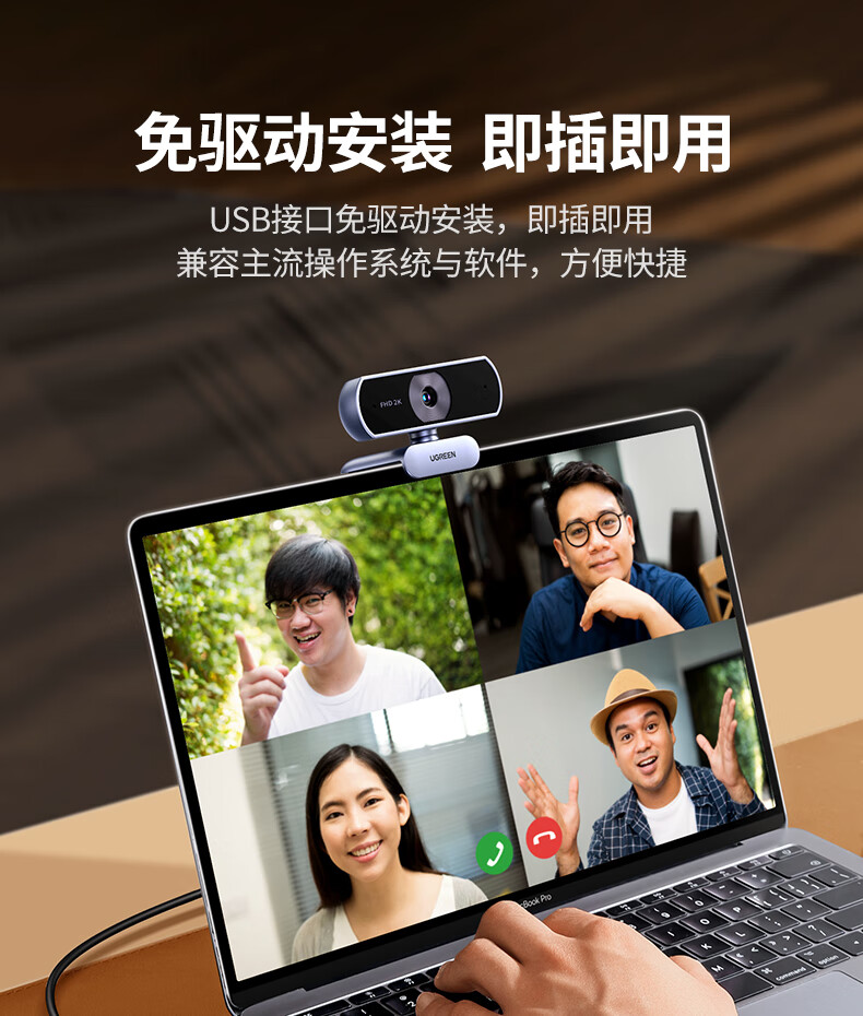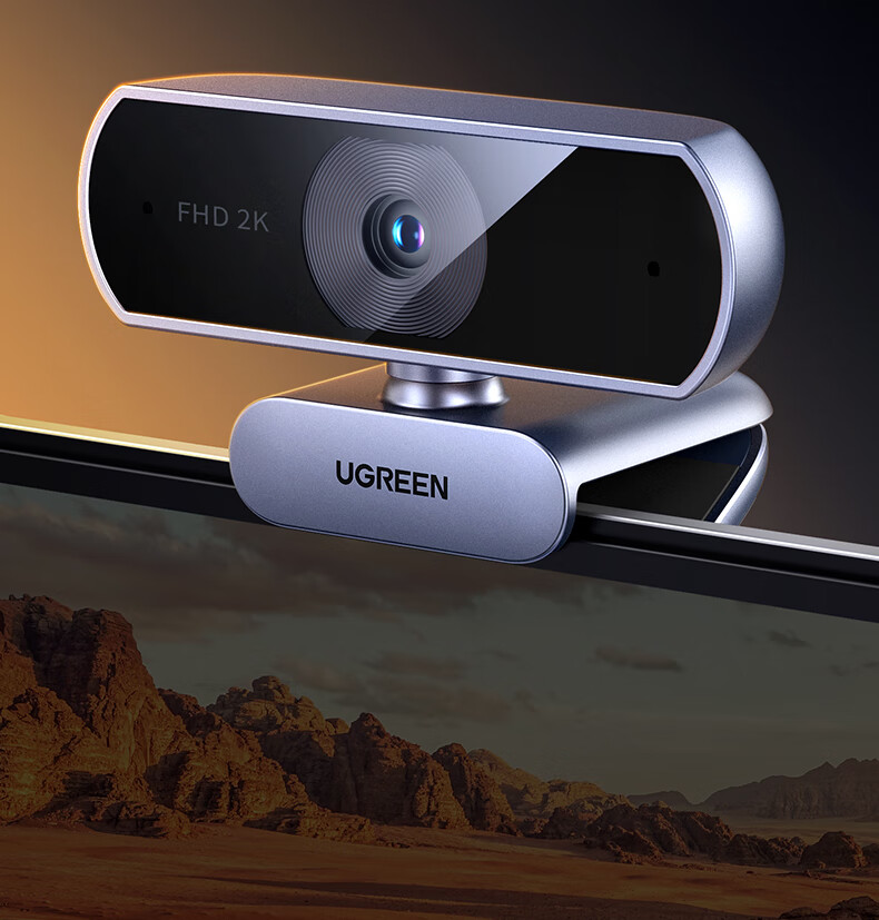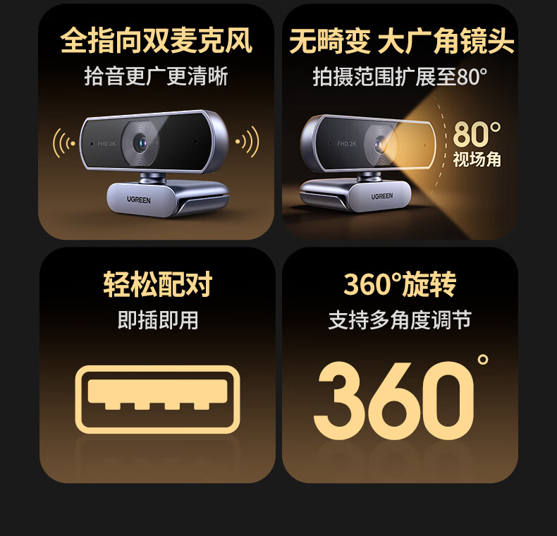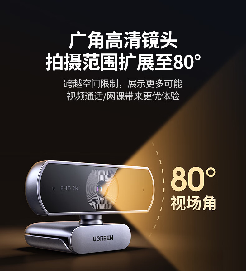 绿联2K高清USB外置电脑摄像头广角双麦克风自动对焦 台式机笔记本电脑视频通话会议考试面试直播25442