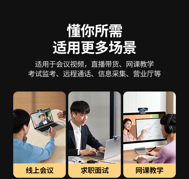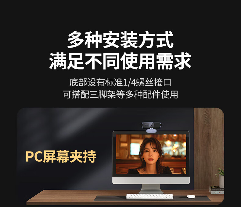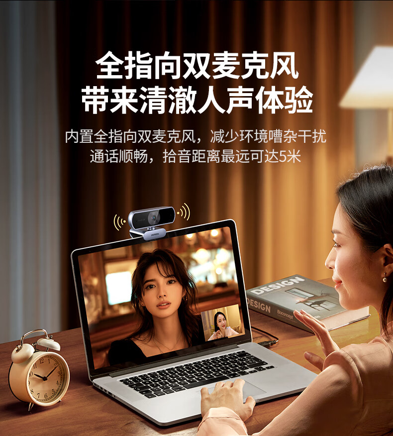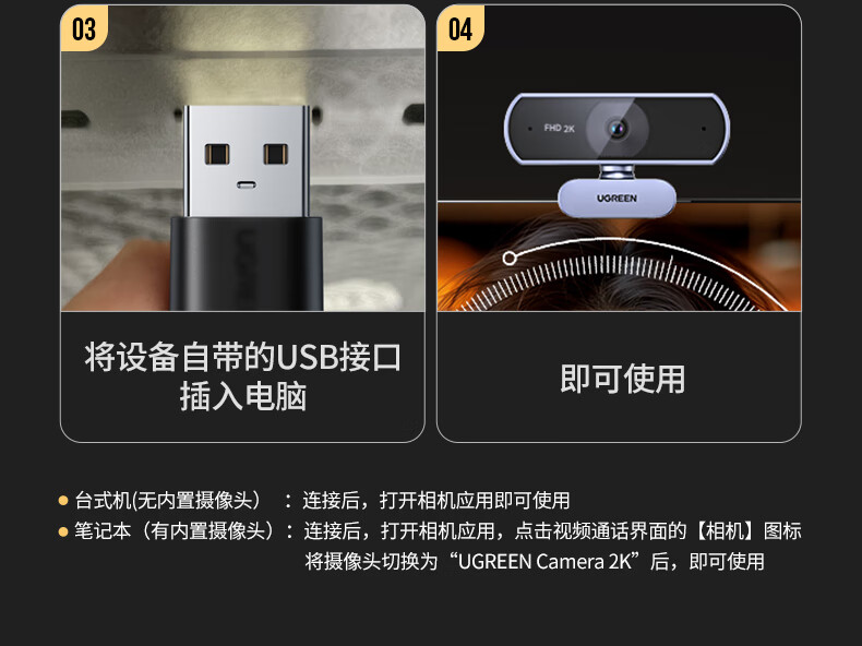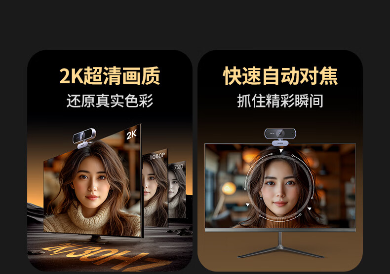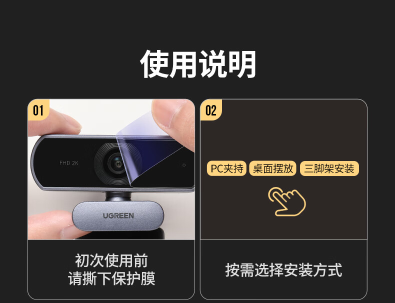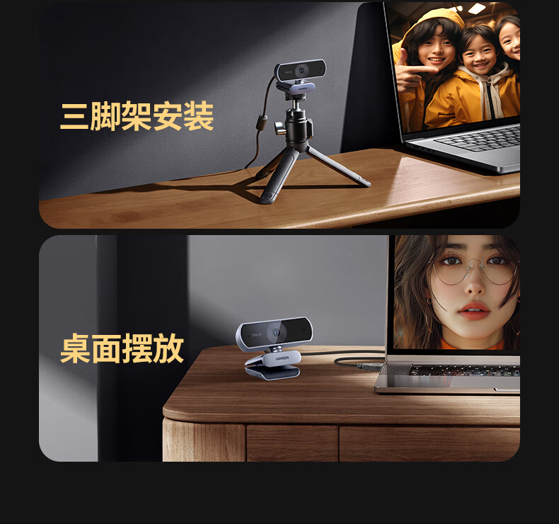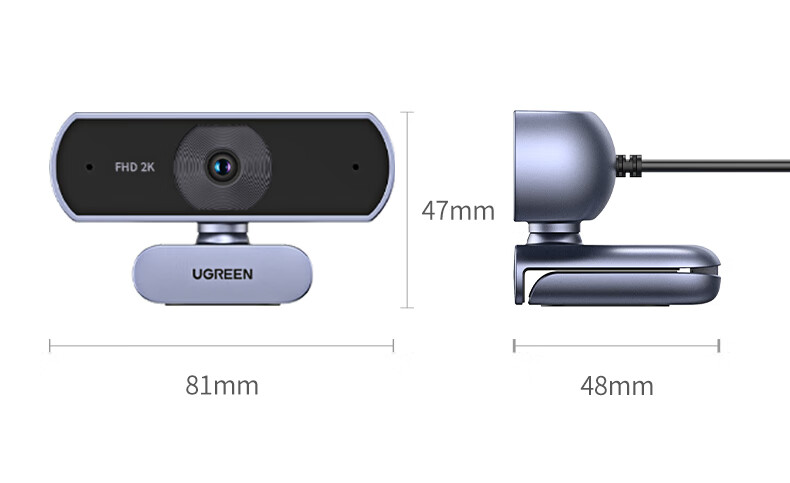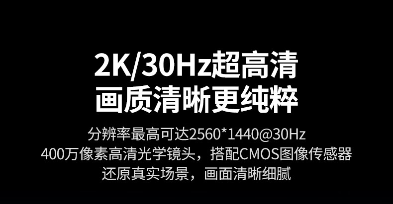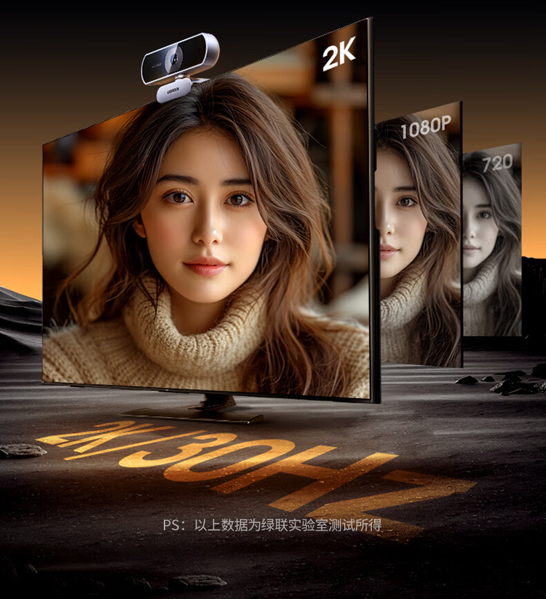 绿联2K高清USB外置电脑摄像头广角双麦克风自动对焦 台式机笔记本电脑视频通话会议考试面试直播25442