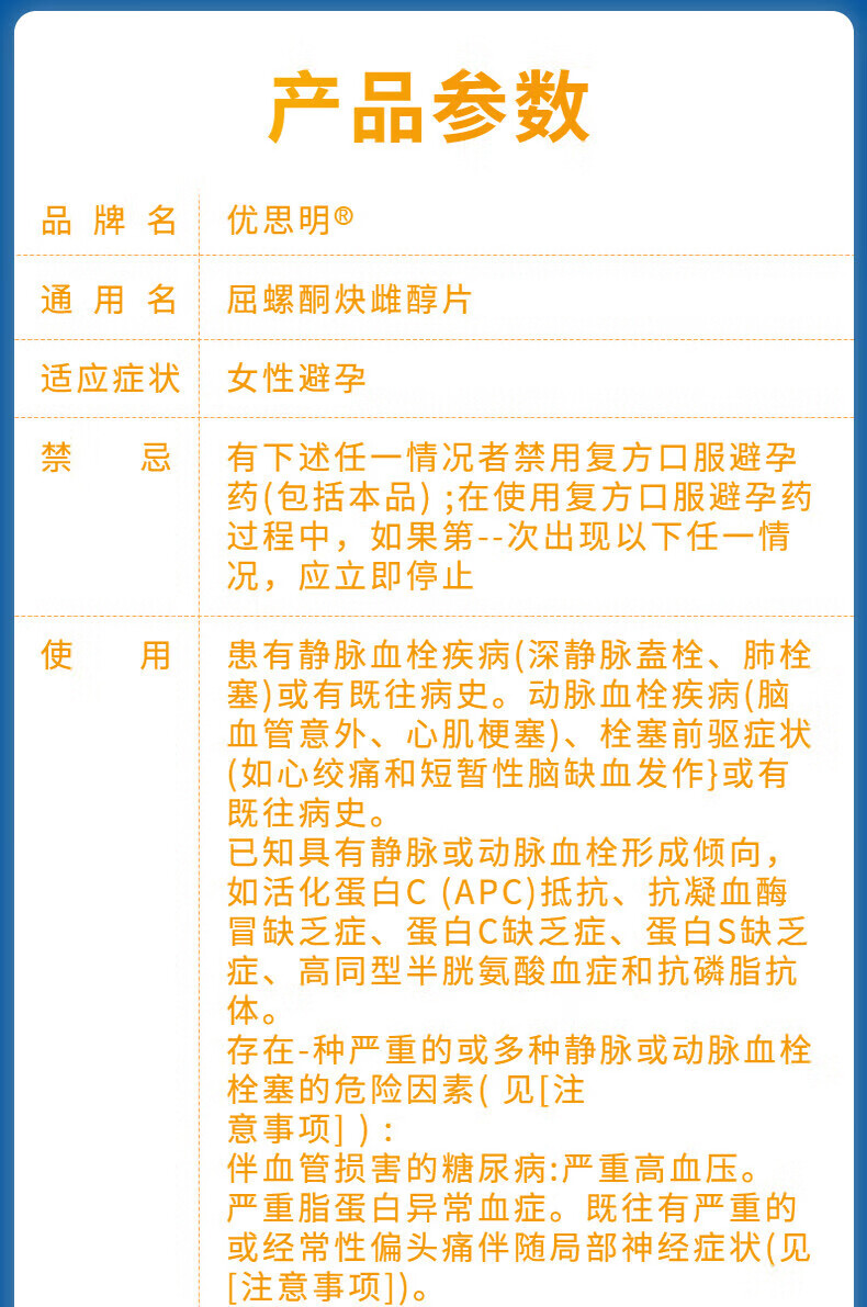 【原研药】优思明屈螺酮炔雌醇片21片/盒短效口服避孕药 女用非紧急避孕药