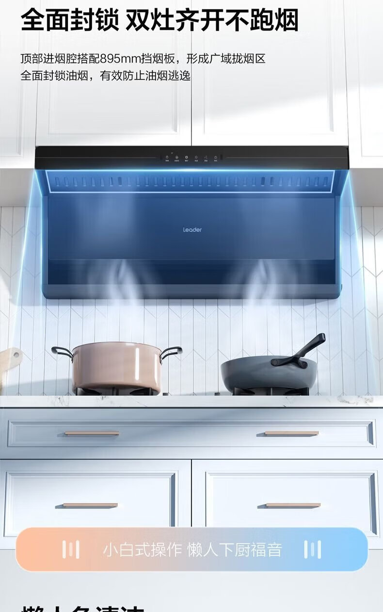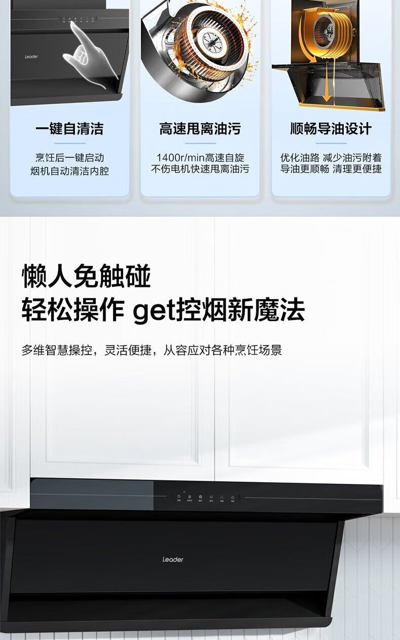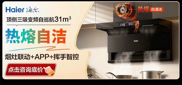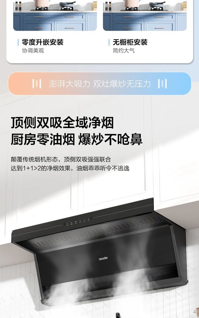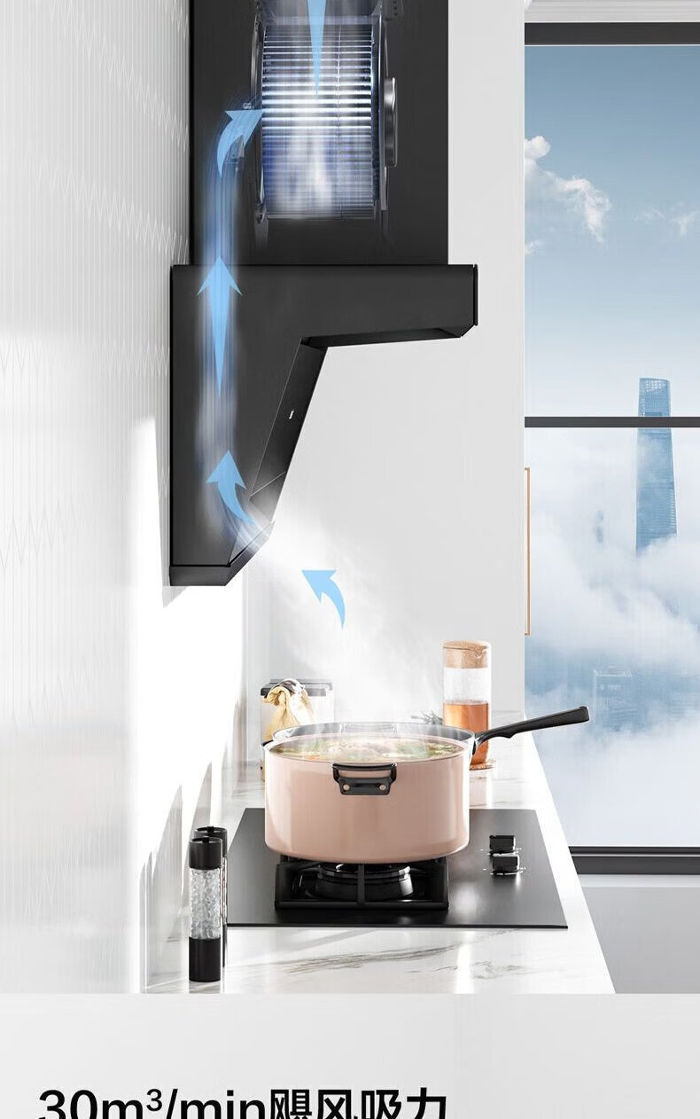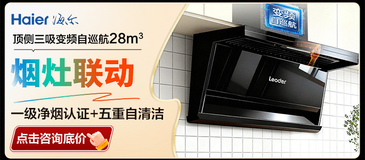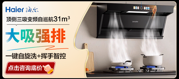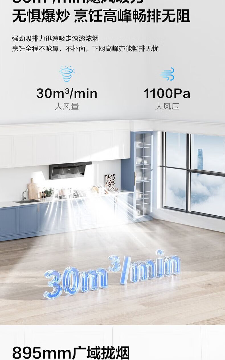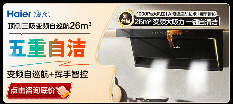 海尔油烟机变频30m³立方大吸力静音一级能效燃气灶具套装顶侧双三吸家用厨房静音自清洁7字型抽油烟机 单烟机