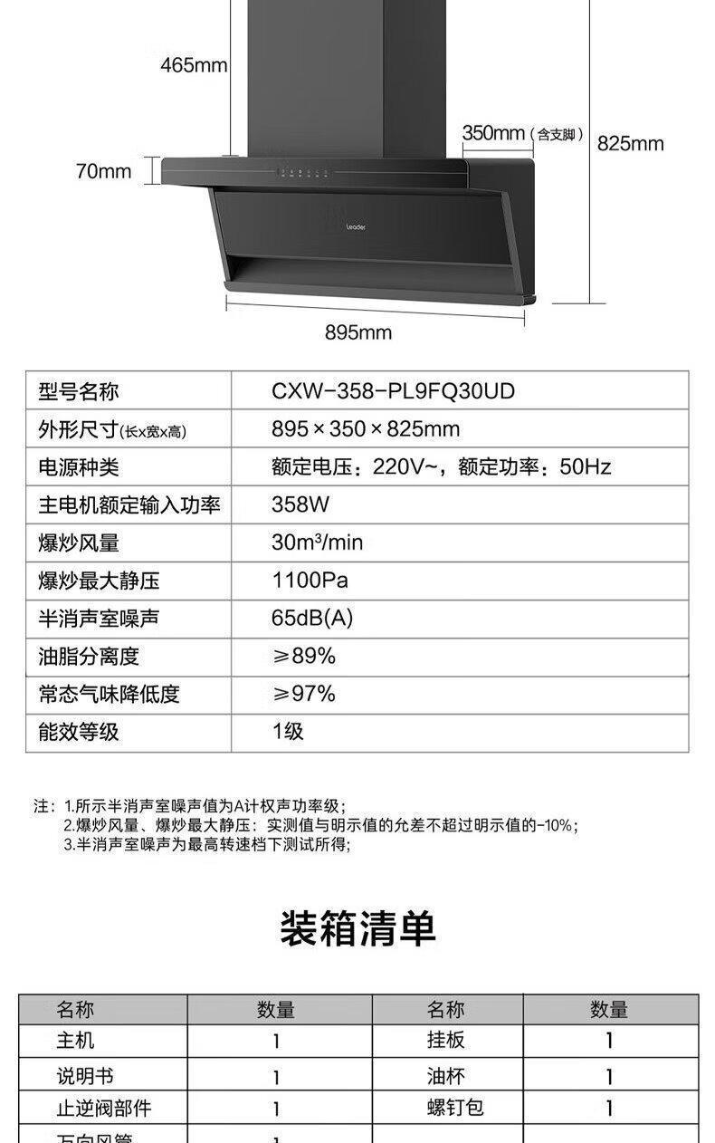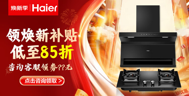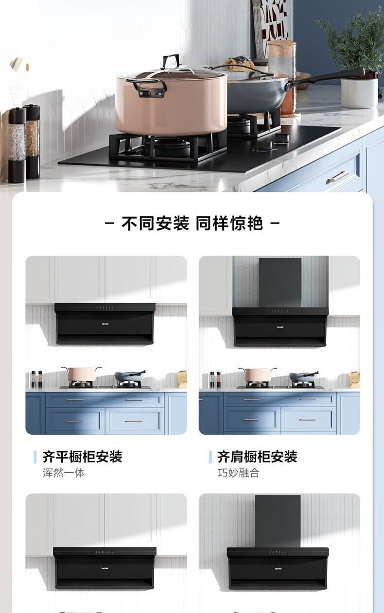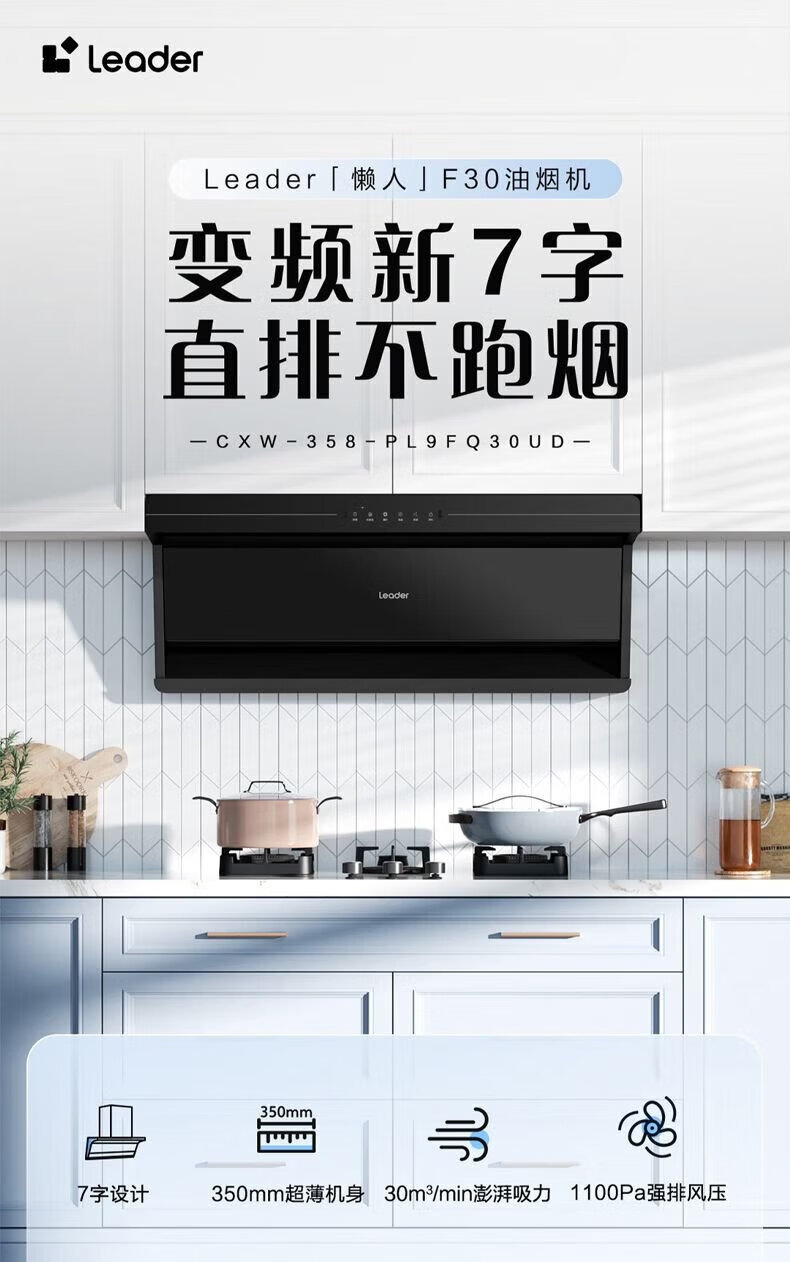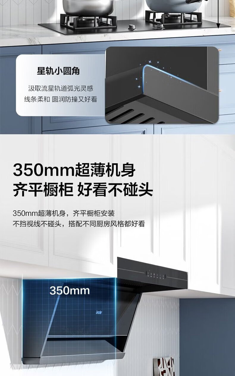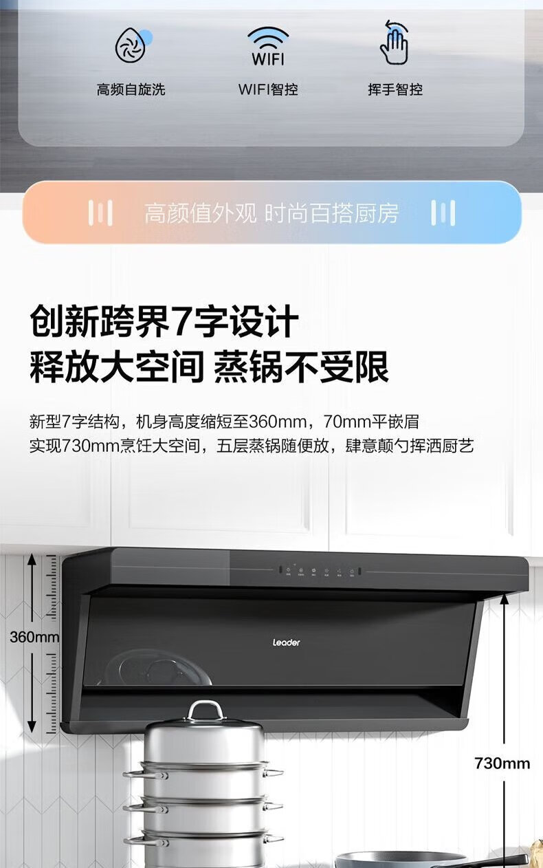 海尔油烟机变频30m³立方大吸力静音一级能效燃气灶具套装顶侧双三吸家用厨房静音自清洁7字型抽油烟机 单烟机