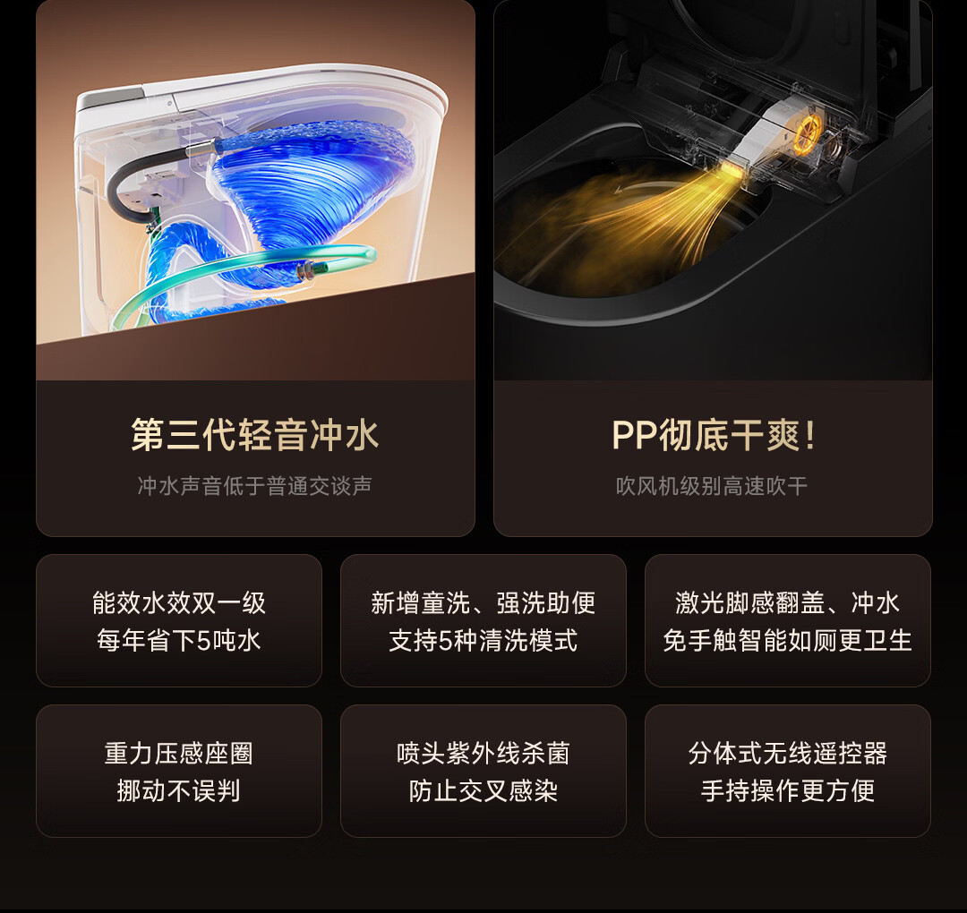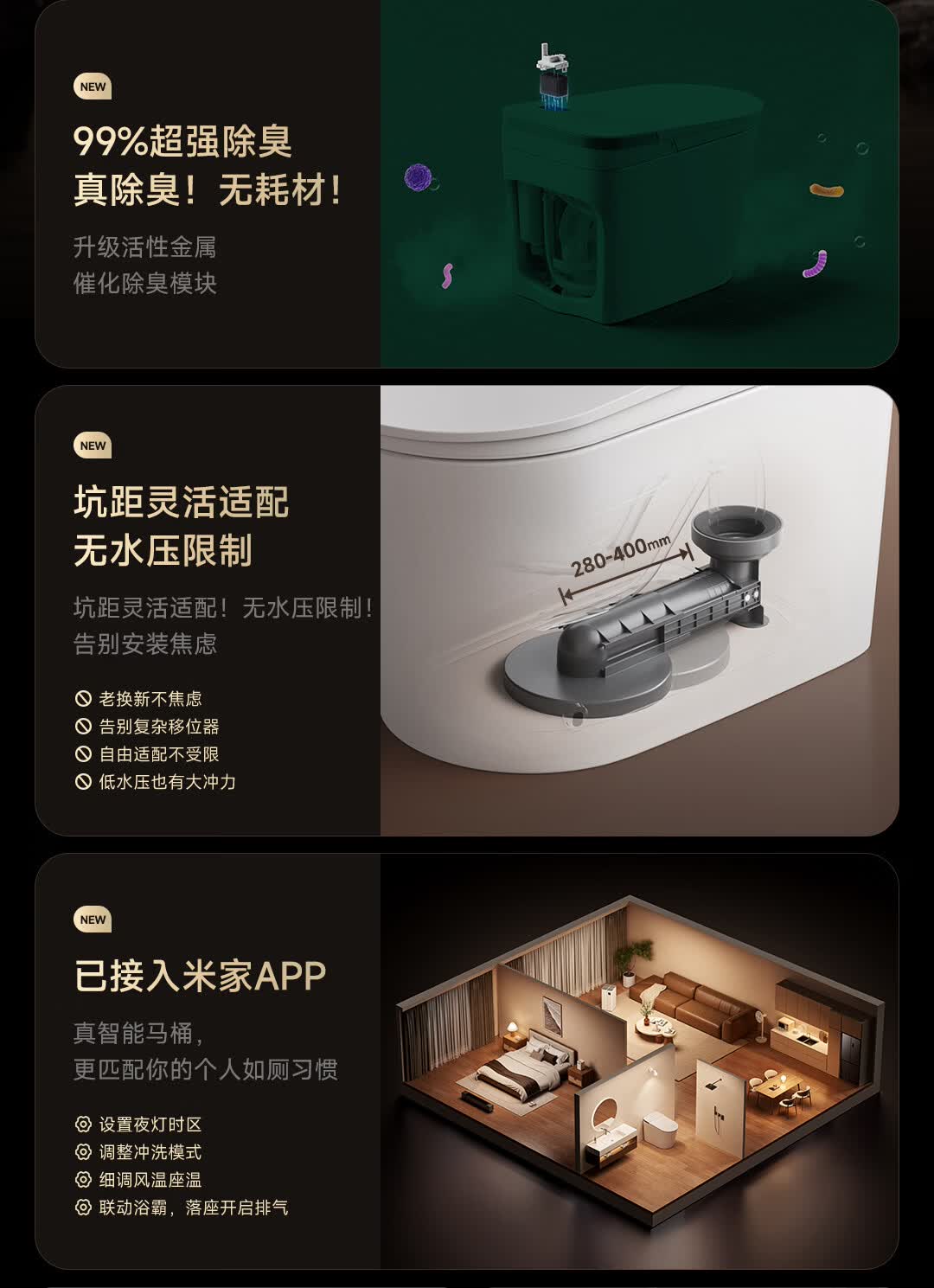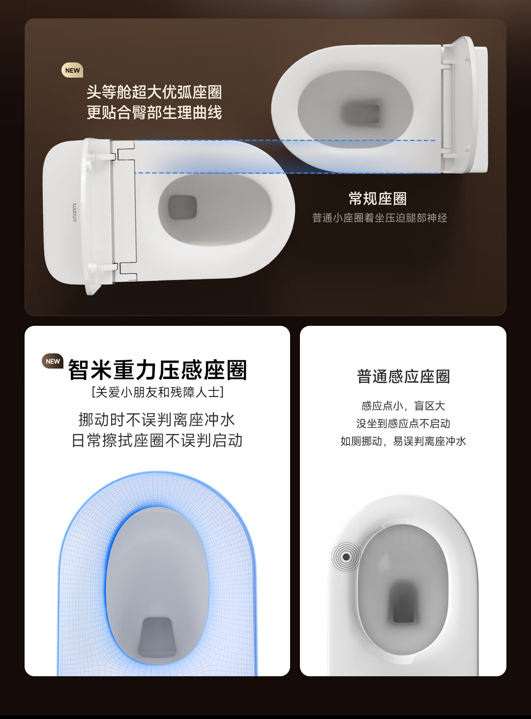 SMARTMI智米智能马桶强力除臭杀菌轻音自动翻盖坐便器无坑距限制3S智能版 白色 无坑距限制 300/400
