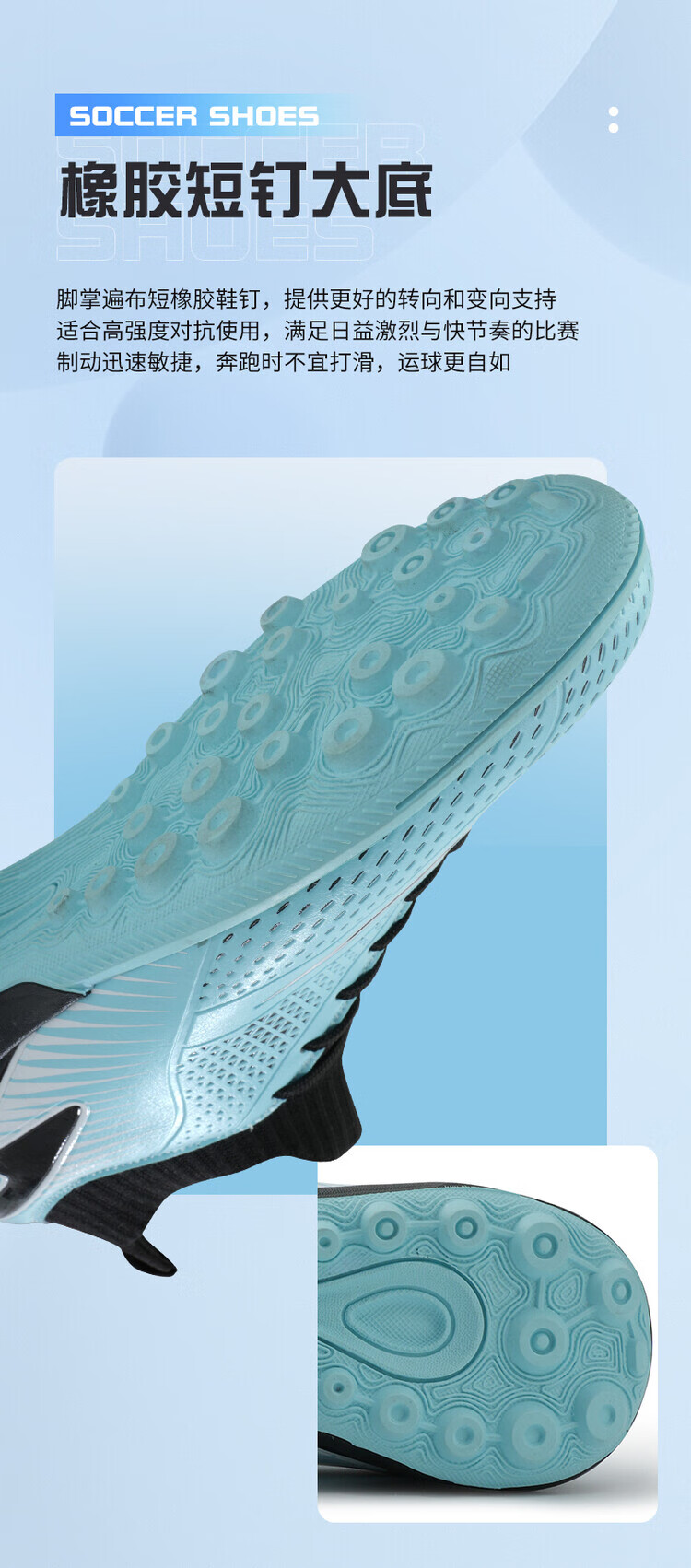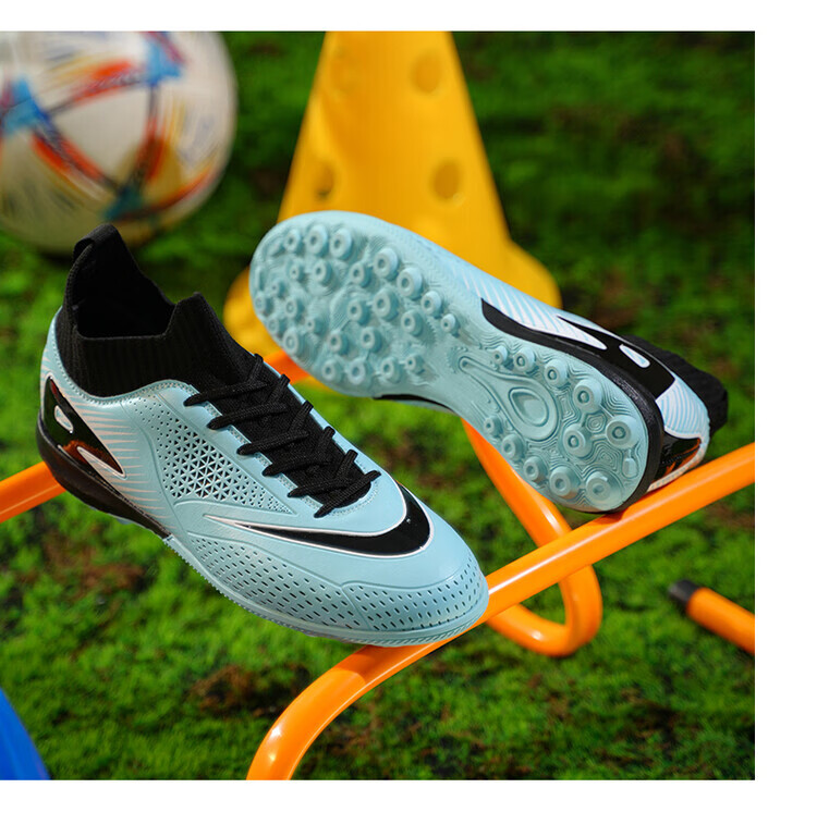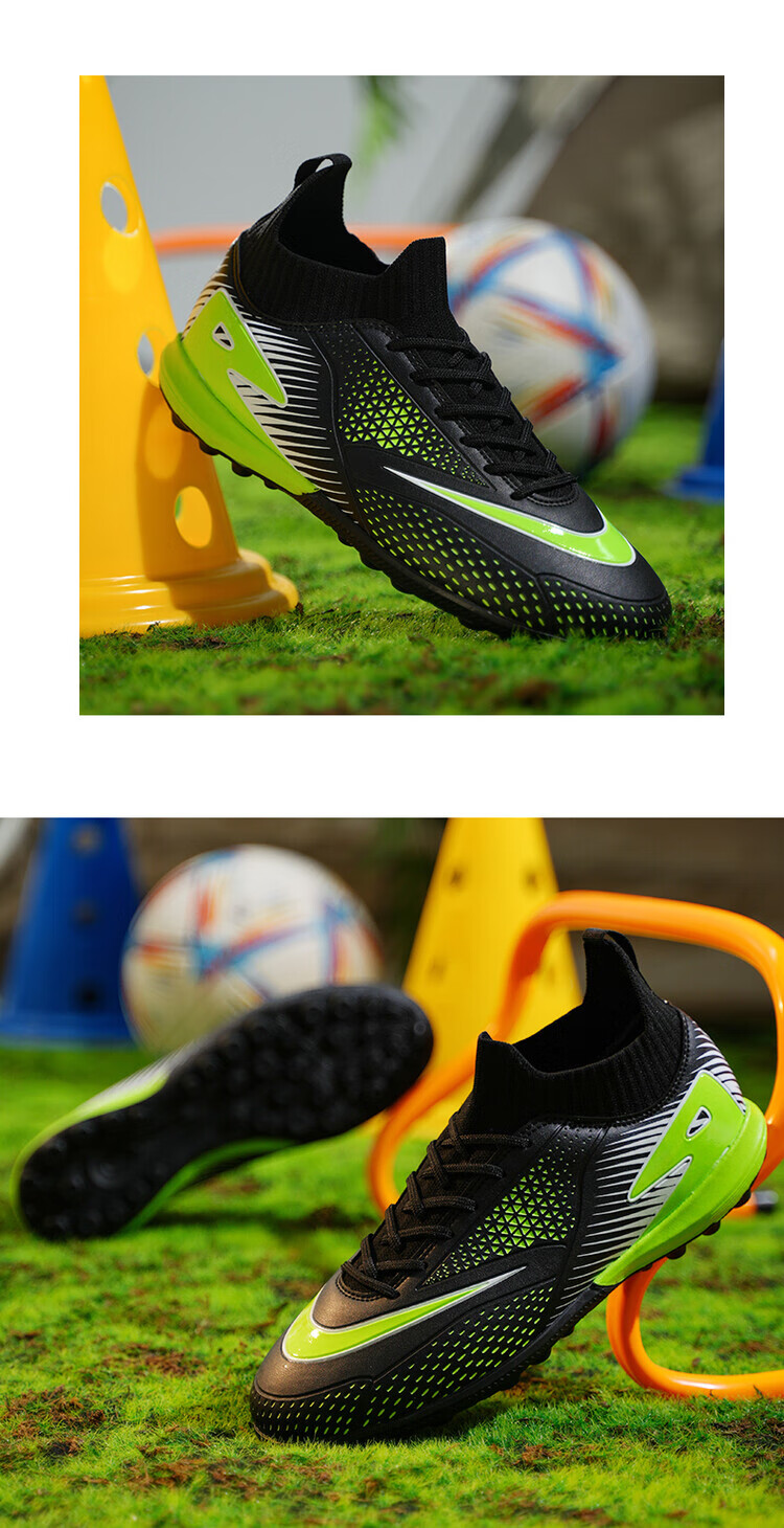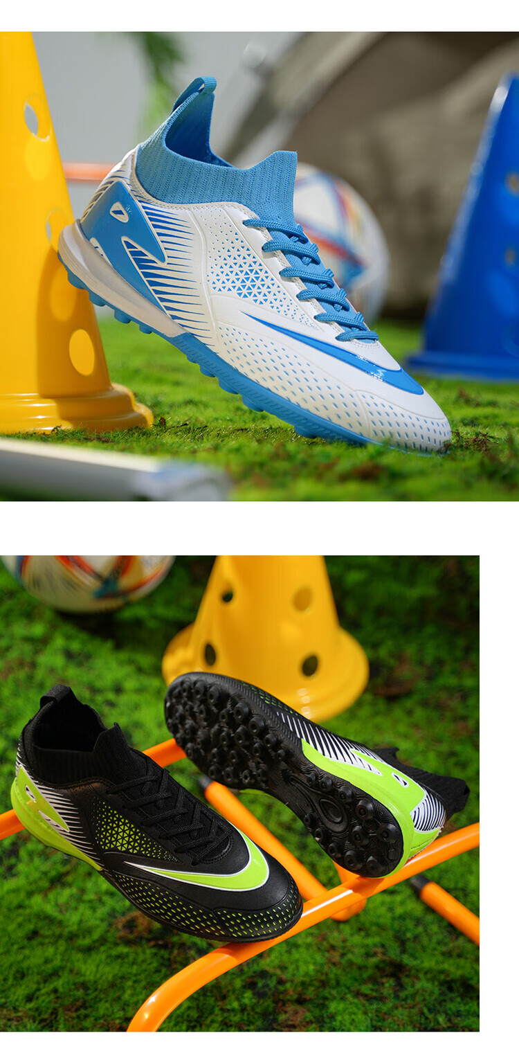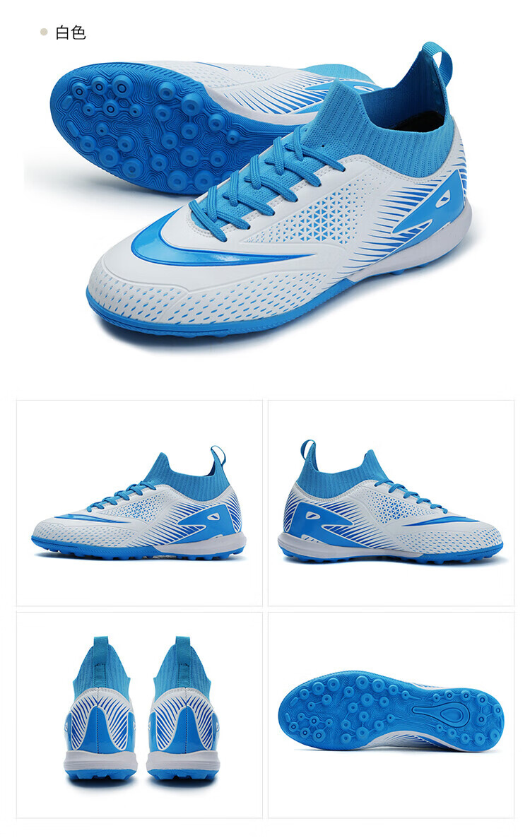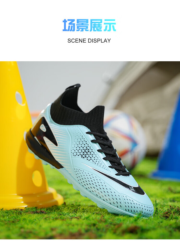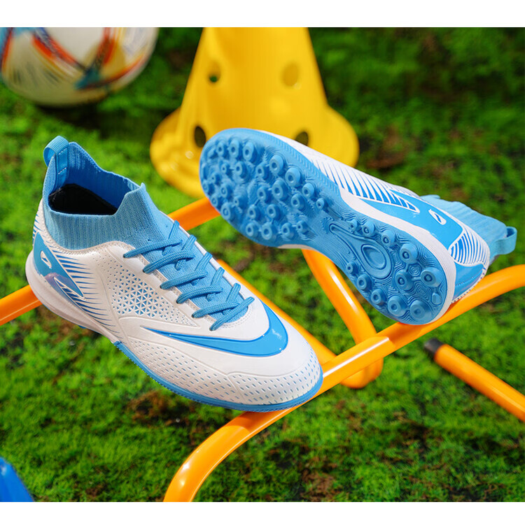 振足足球鞋TF碎钉男童透气青少年防滑高帮短钉训练草地四季运动鞋 月色 32
