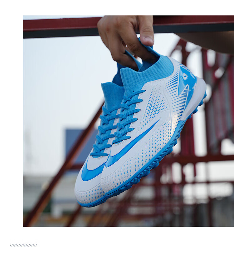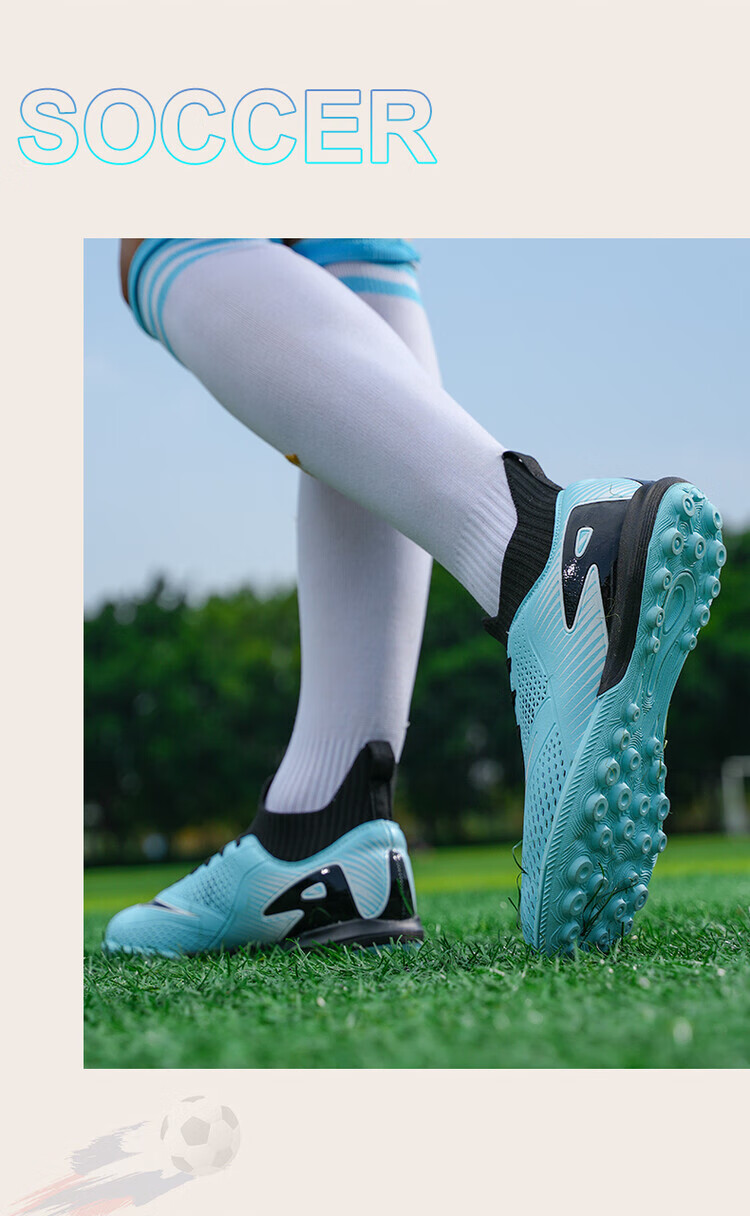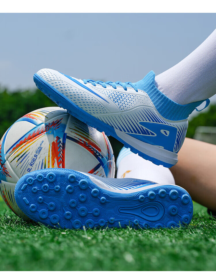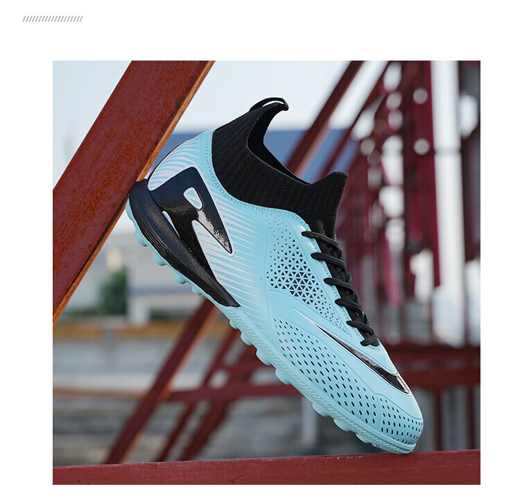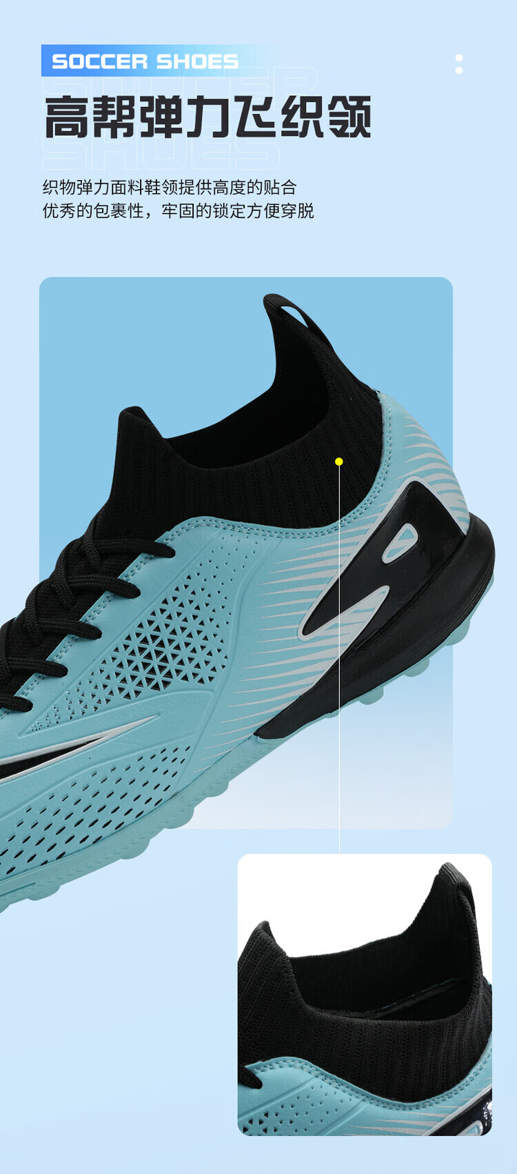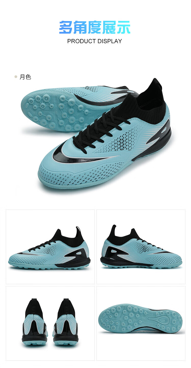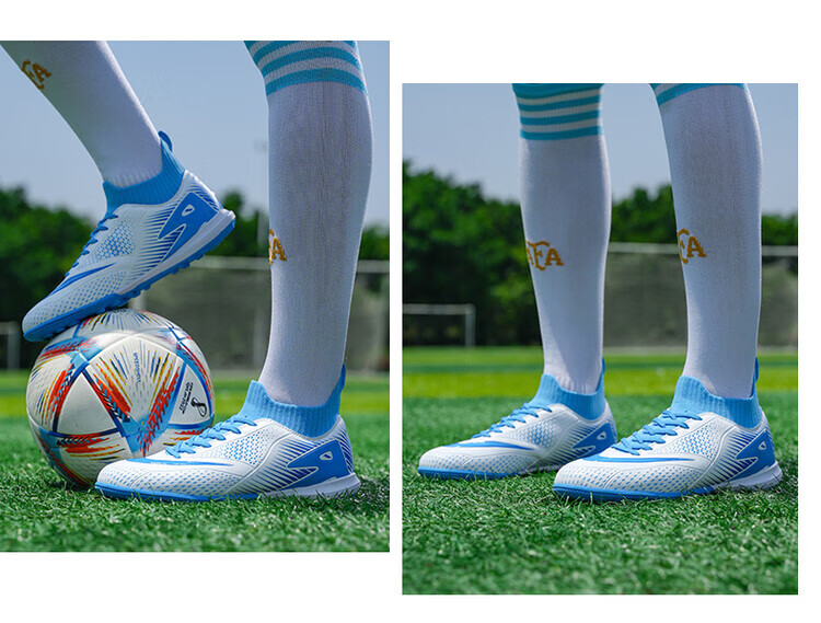 振足足球鞋TF碎钉男童透气青少年防滑高帮短钉训练草地四季运动鞋 月色 32