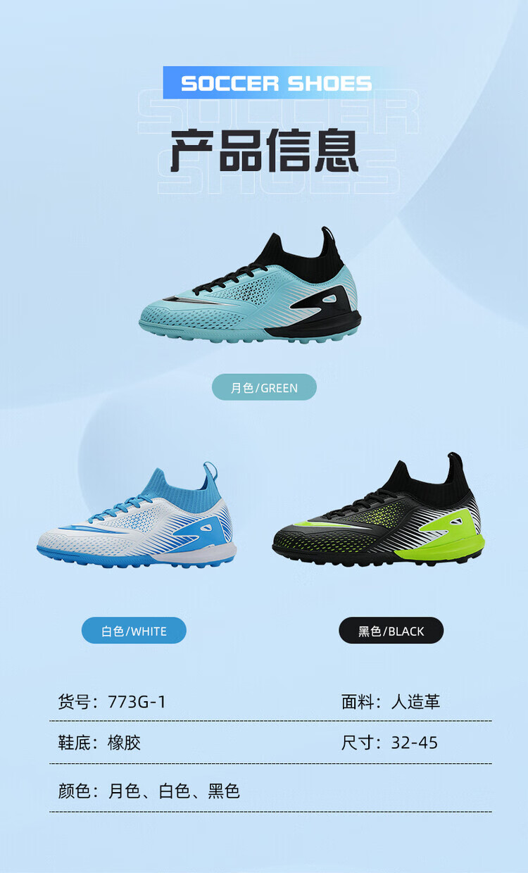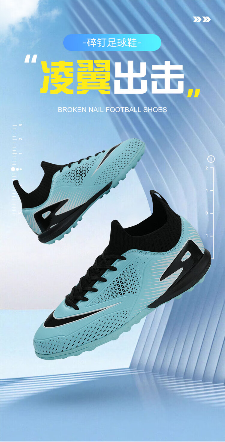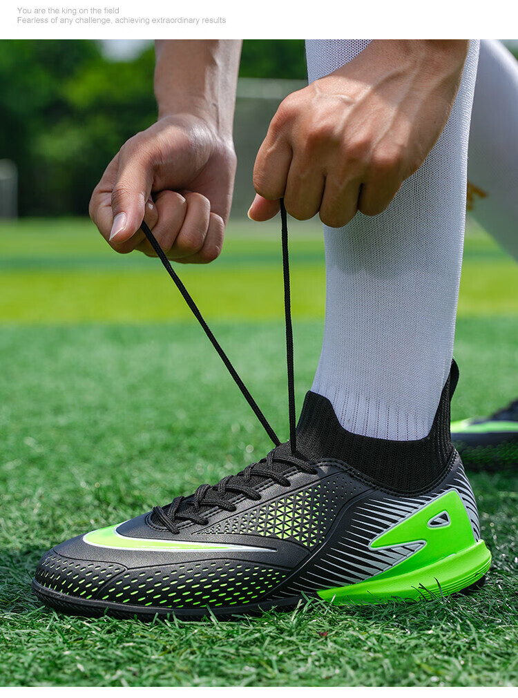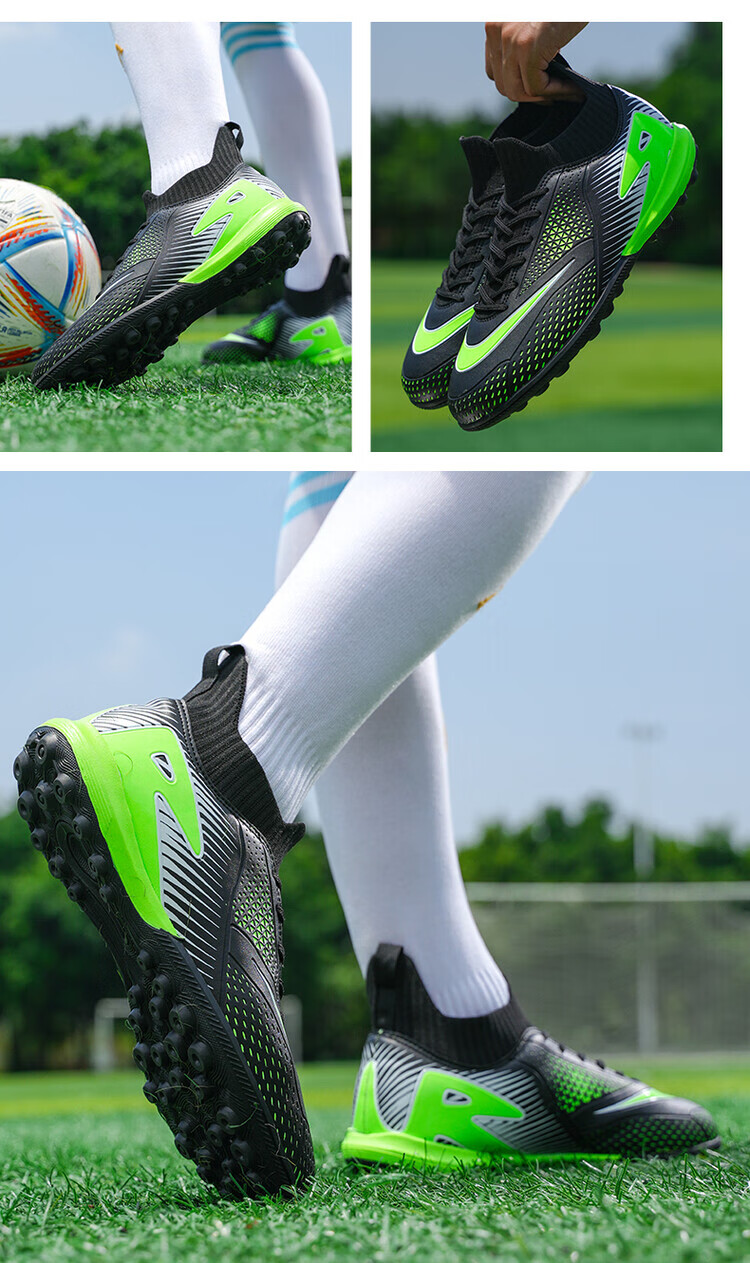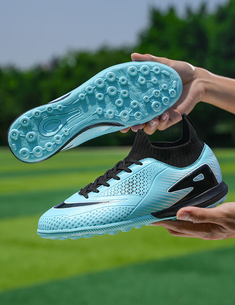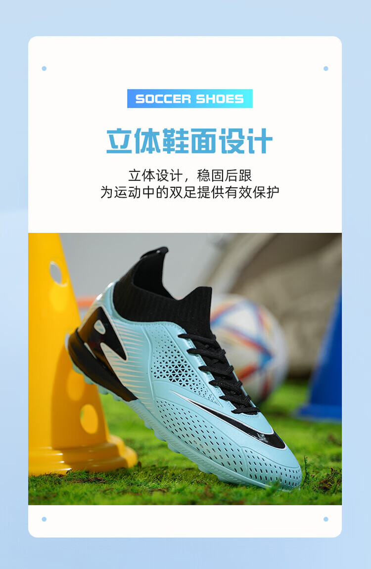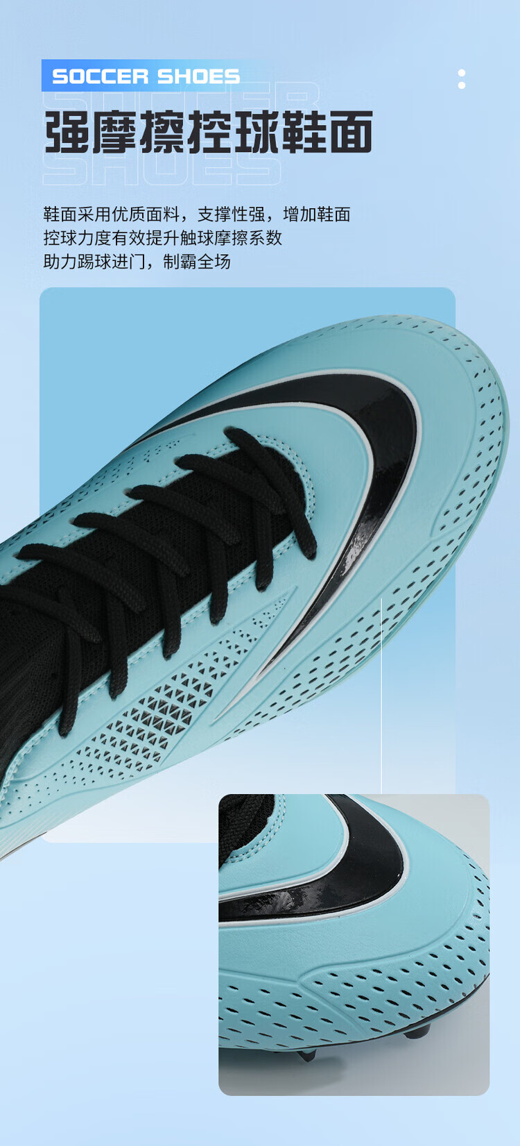 振足足球鞋TF碎钉男童透气青少年防滑高帮短钉训练草地四季运动鞋 月色 32