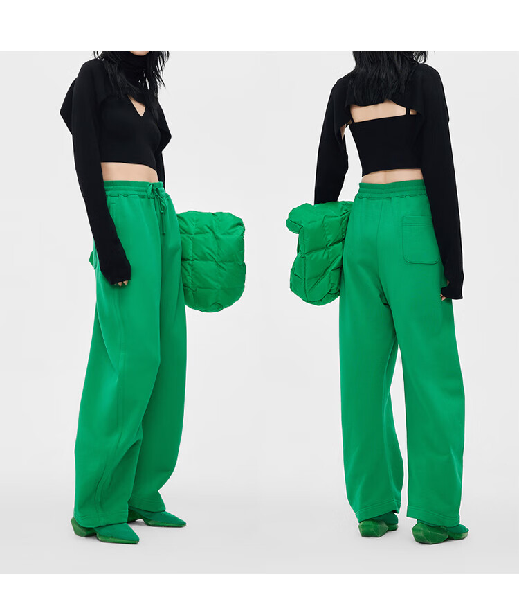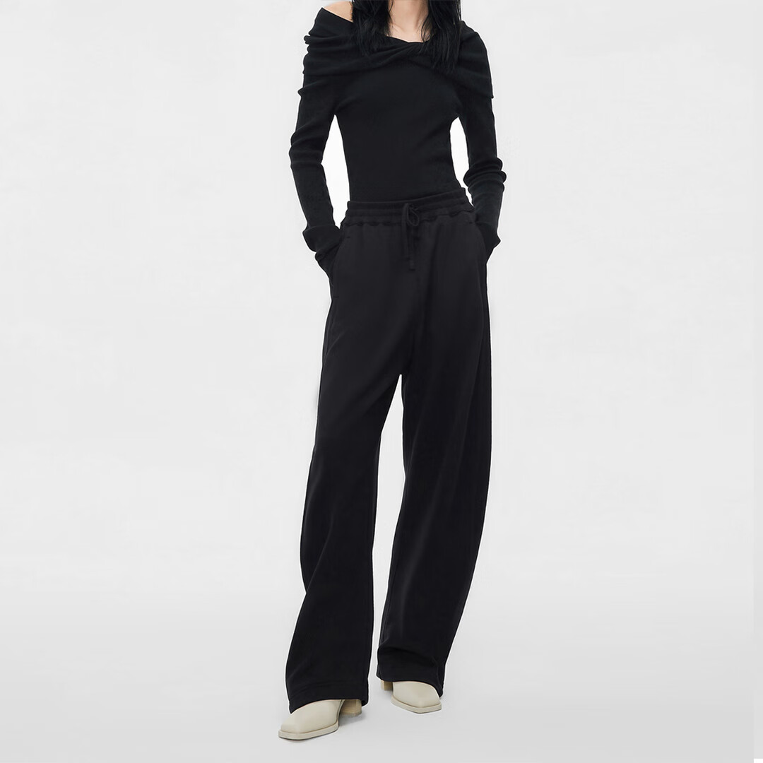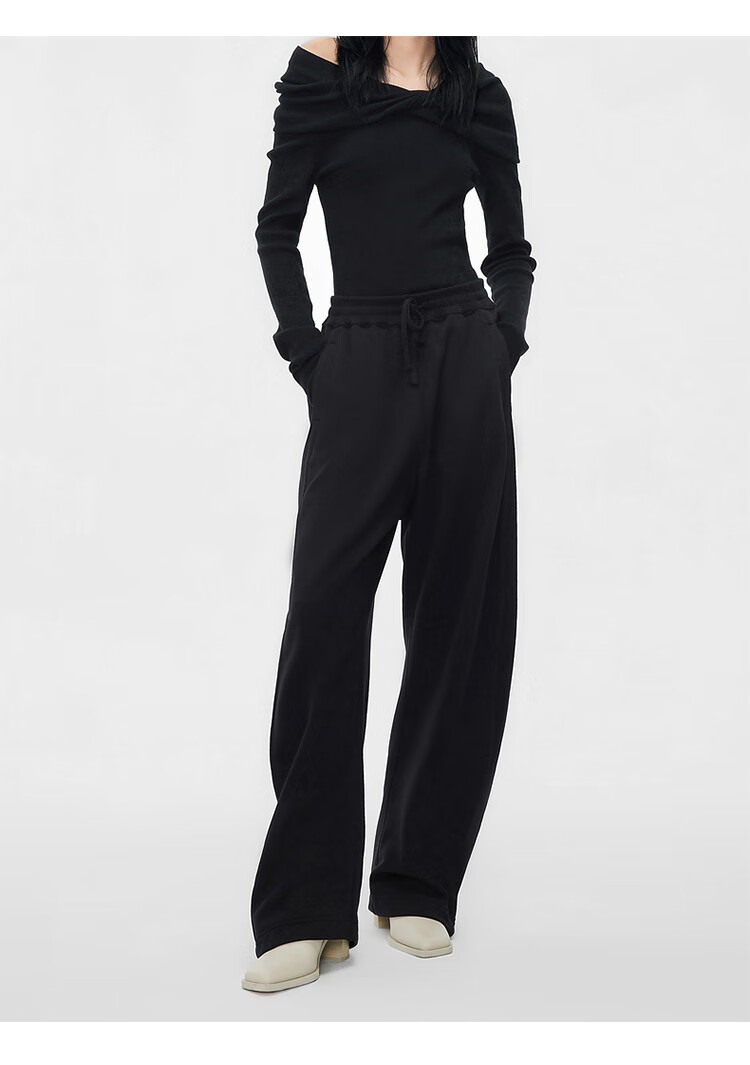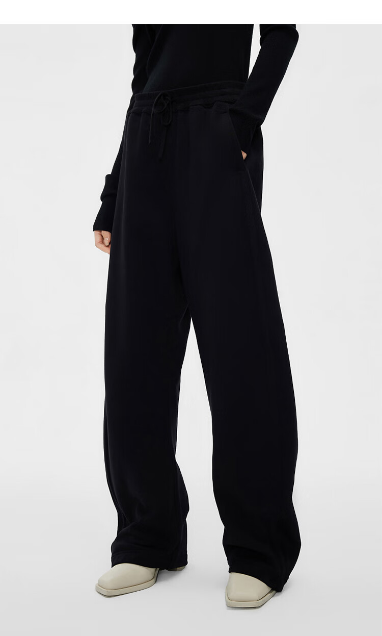 浪莎(LangSha)加绒休闲裤女2025冬季新款保暖高腰垂感欧棉绒百搭显瘦休闲阔腿裤 【加绒】黑色 L 116-130斤