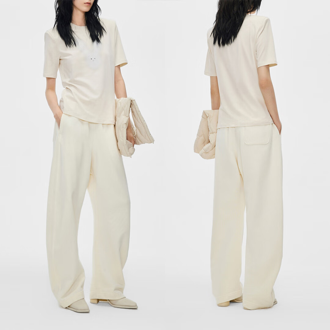 GUMILO【鹦鹉梨严选】江南宽松加绒香蕉裤休闲百搭运动纯色简约RRK1163 白色 S 110-130