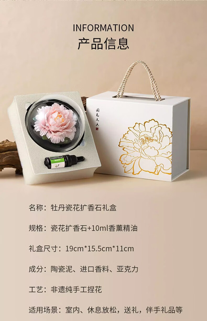 BOSSY非遗手捏国潮牡丹瓷花茶宠限定中国风创意永生花礼盒女神节礼物 【亮丽富有】洛阳黄牡丹瓷花礼盒