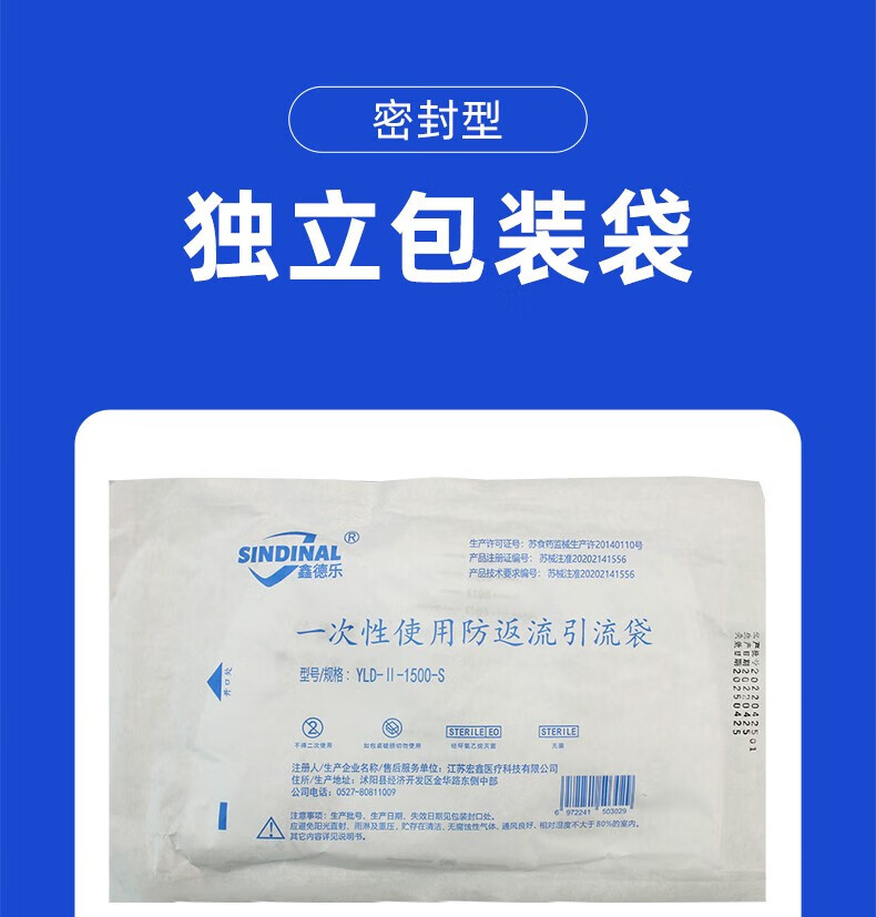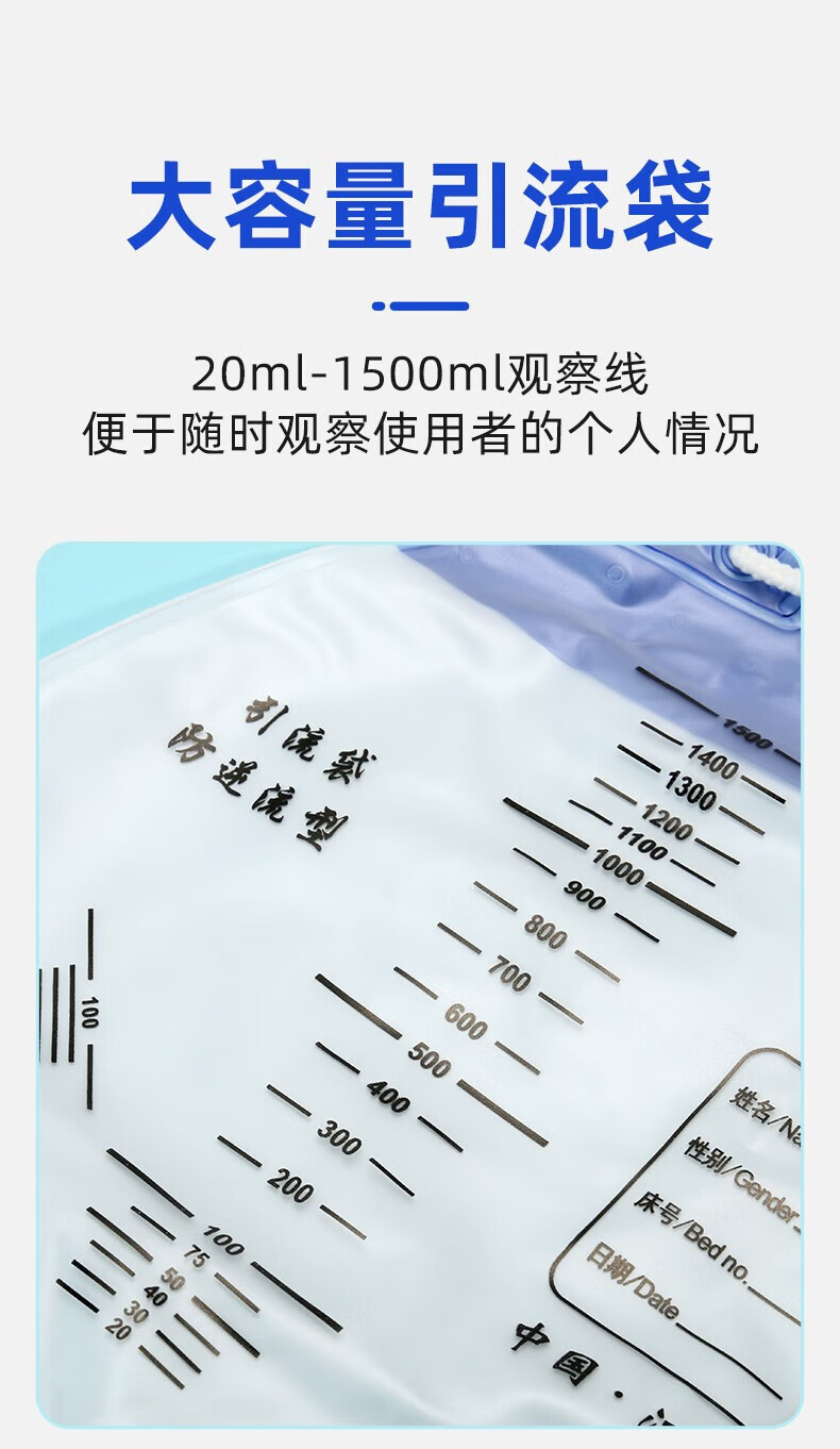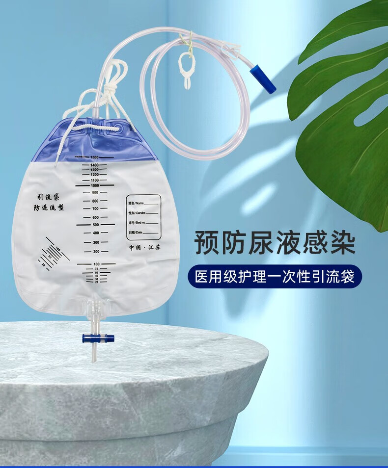 鑫德乐一次性使用防逆流引流袋集尿袋医用导尿袋术后腹水抗返流尿袋胆汁接尿袋导尿管男女老人瘫痪通用 加厚1000ml引流袋5个