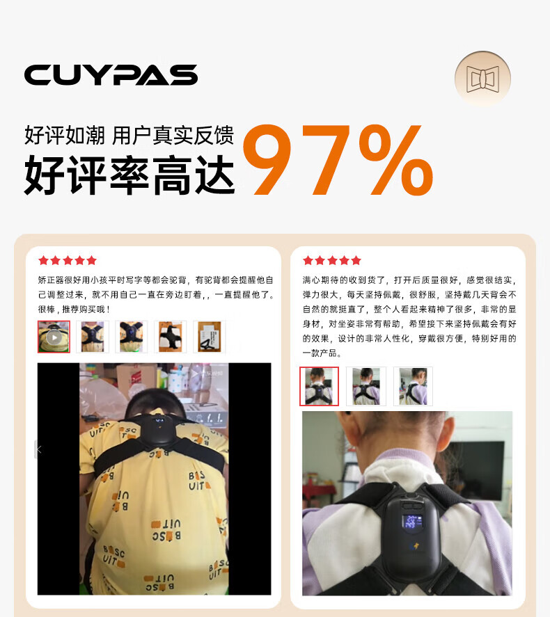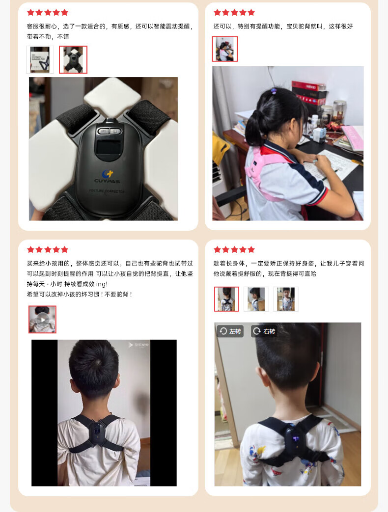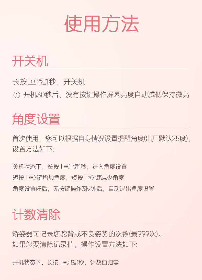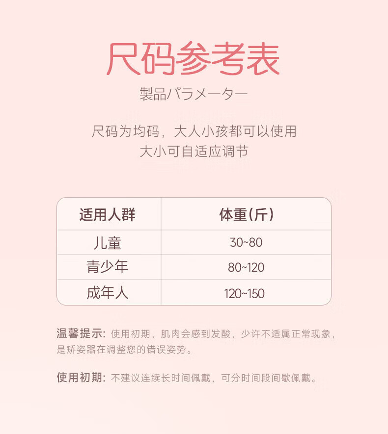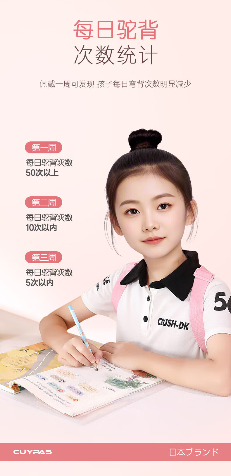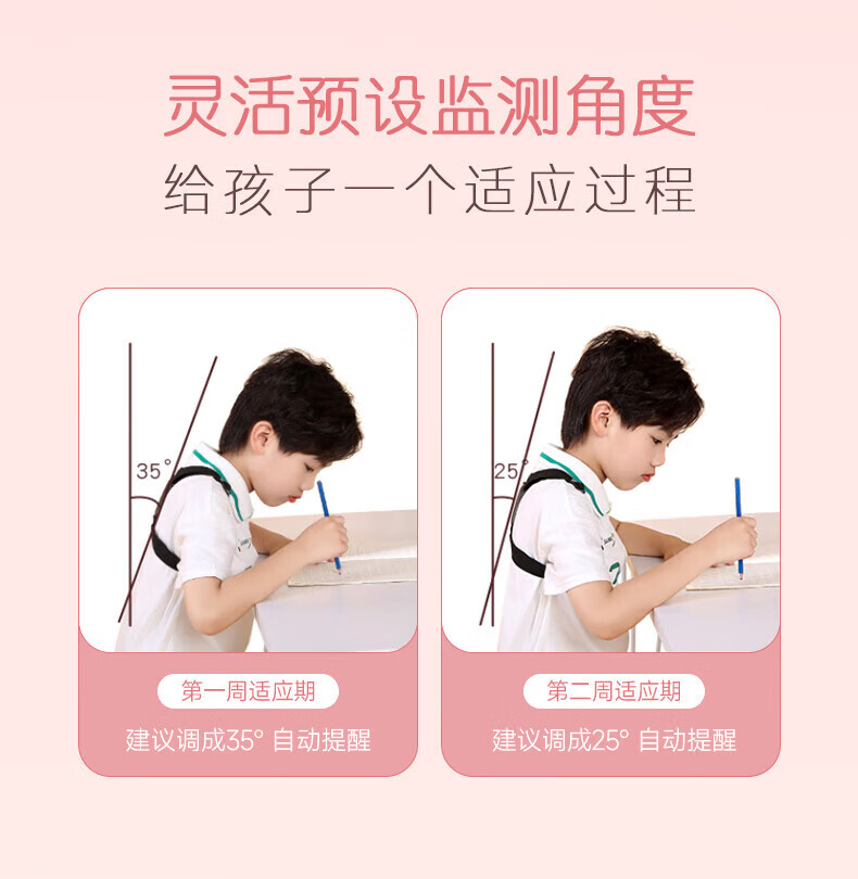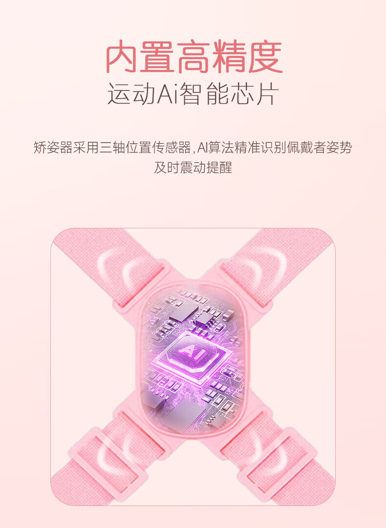 CUYPAS日本品牌智能提醒驼背矫正器隐形儿童学生青少年纠正坐姿矫姿带 粉色