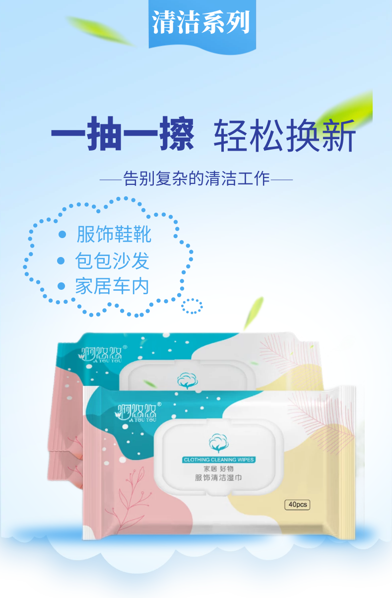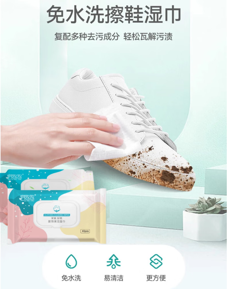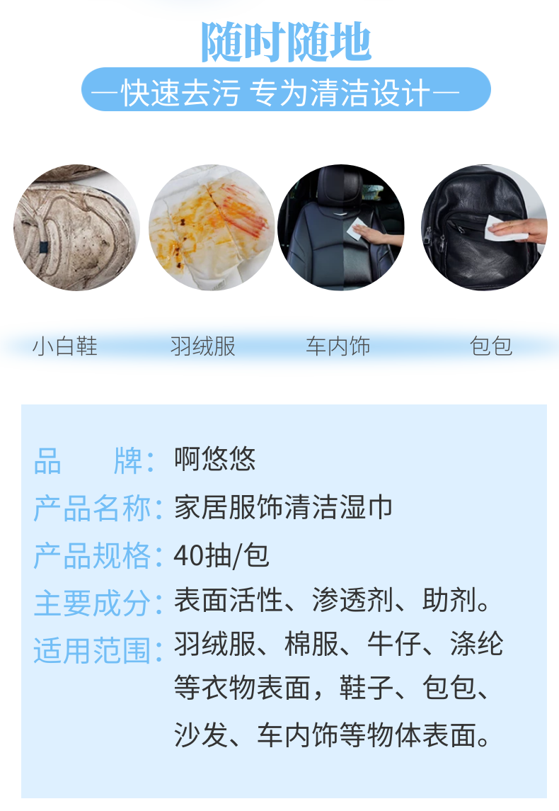 啊悠悠小白鞋湿巾羽绒服清洗剂免水洗擦拭服饰鞋靴包包沙发汽车内饰等 服饰/鞋靴/包包清洁湿巾*6包
