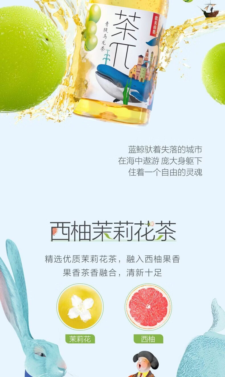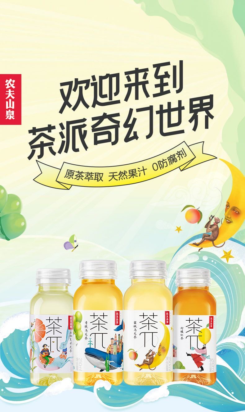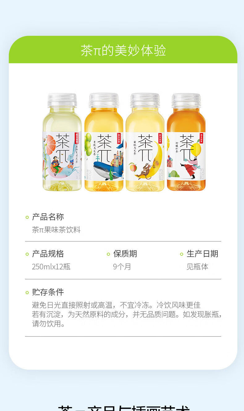 农夫山泉茶π茶兀茶派250ml小瓶装蜜桃乌龙饮料西柚茉莉花茶饮料 250ml*6瓶】混合口味